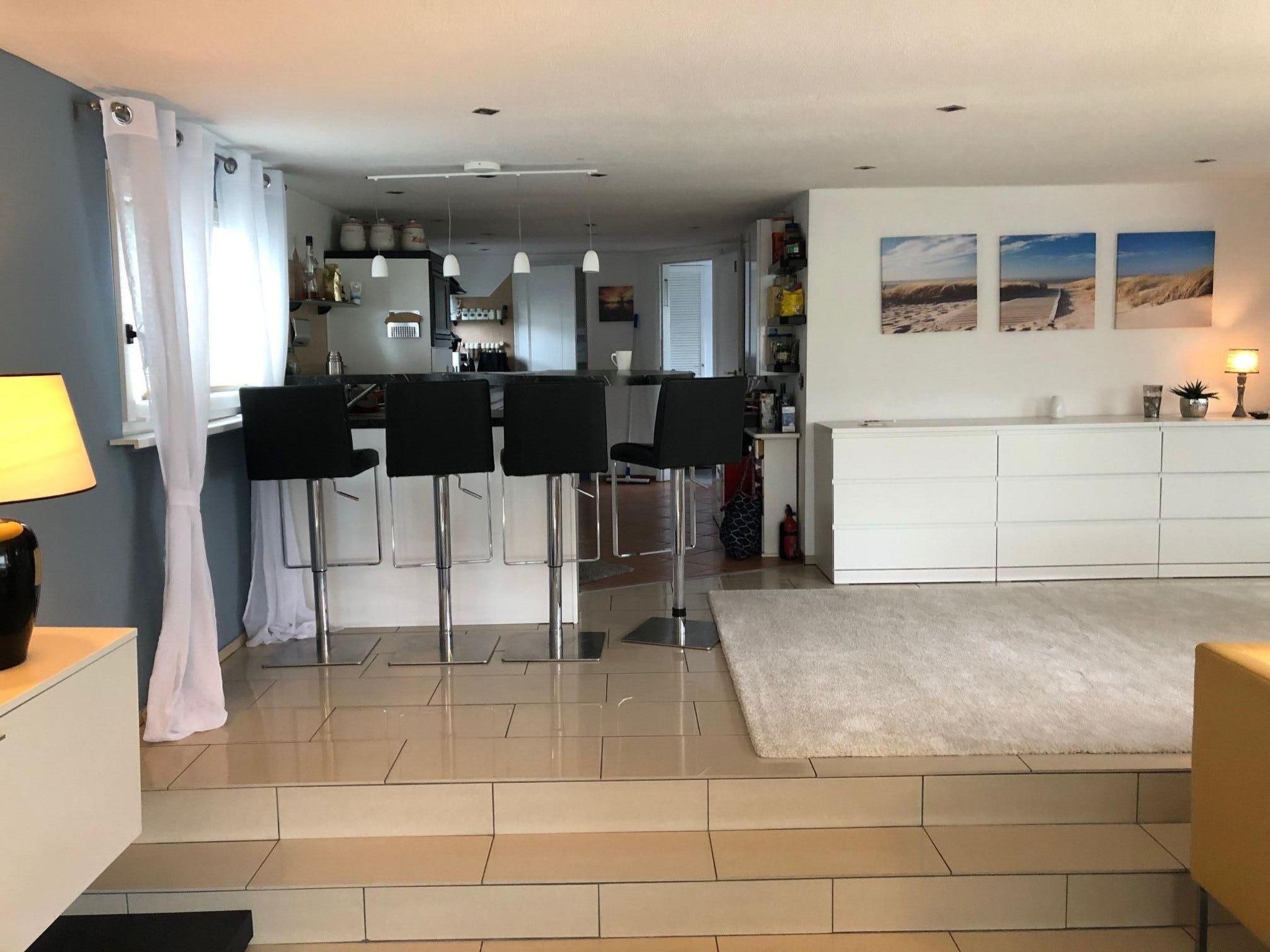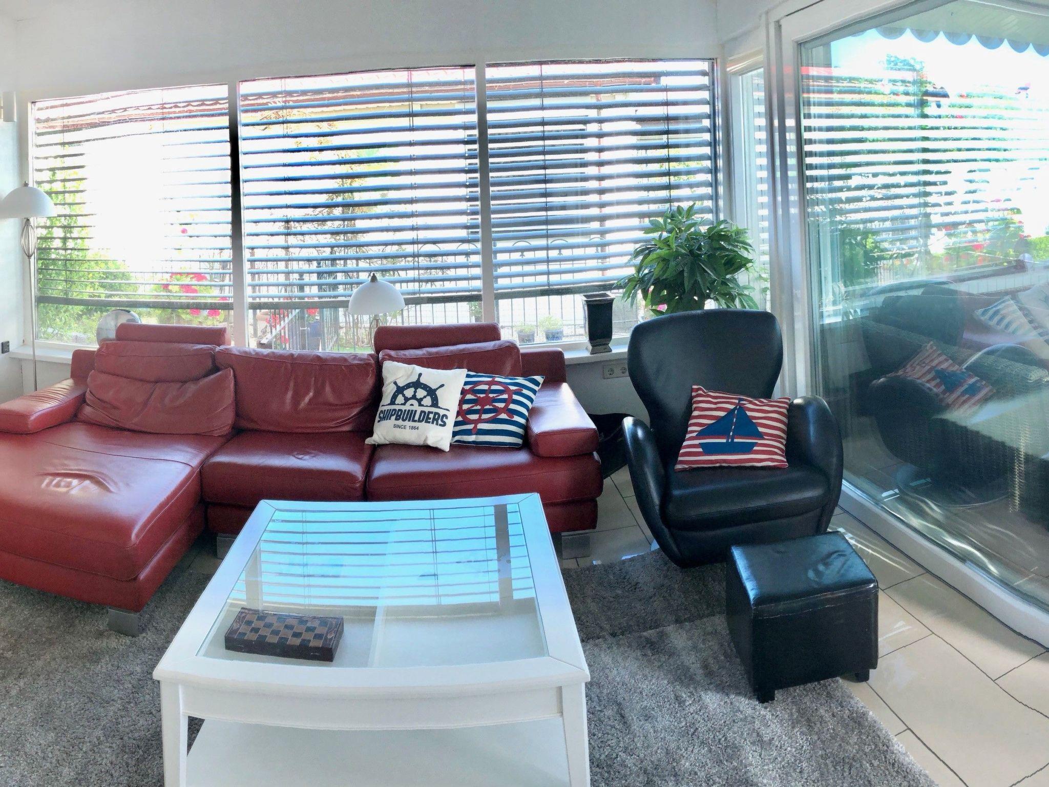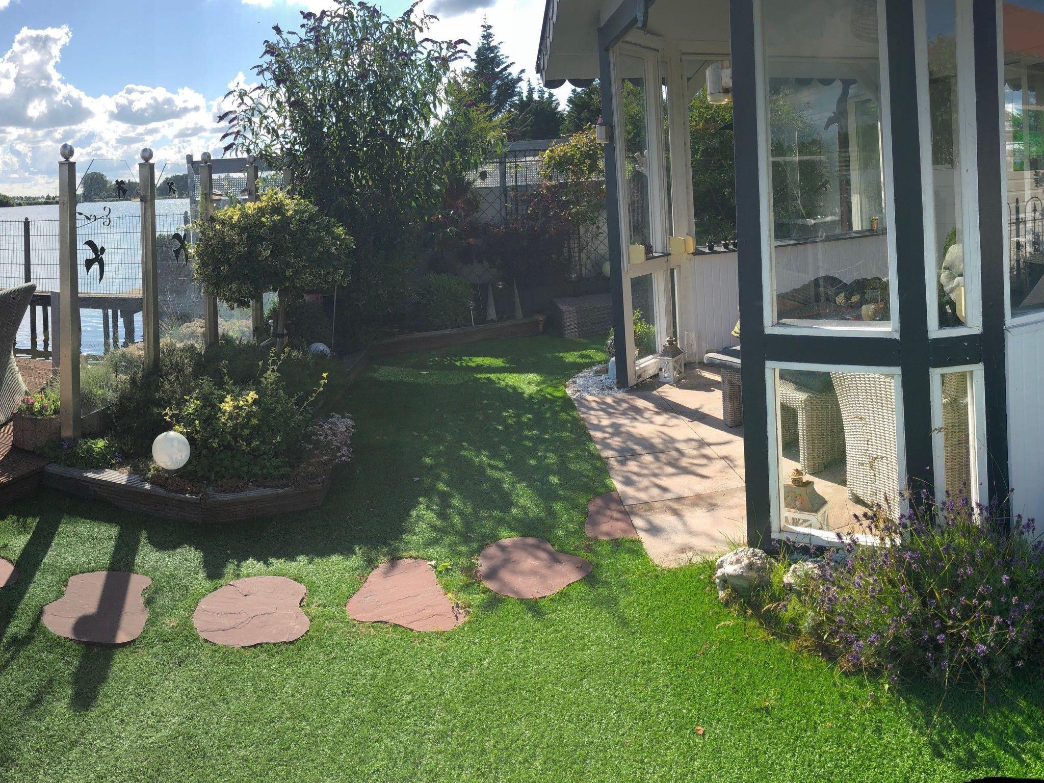 This house offers everything you could possibly need. You have your own boat mooring right next to the house. The holiday island is approx. 2 hectares in size and lies directly in the 'Groote Vliet' lake. You can reach the island via a bridge. The house is equipped with everything you need for a relaxing holiday. Comfortable furniture, well thought-out kitchen, flat screen TV in the living room, bathroom with double washbasin, bath and shower. You also have a second bathroom with shower, washbasin and WC. You have exclusive use of a utility room with washing machine adjacent to the second bathroom. The entire house has underfloor heating and is therefore pleasant to use all year round. The outdoor area offers every opportunity for relaxation. You can sit on the jetty, in the garden or in the entrance area. There are oases of peace and seating everywhere. The bedrooms are small and well thought out. One bedroom has a 90*200cm bunk bed and the other bedroom has a 160cm wide double bed. The open L-shaped kitchen makes the heart of every hobby chef beat faster - all equipment available. Spacious - cosy dining area. The living room with comfortable couches and flat screen TV with German TV programme invites you to relax. Well thought-out floor plan that gives you a huge feeling of space. Sliding doors open out onto the terrace. Please note that parts of the holiday home are lower than new-build houses. In some places the ceiling height is only 2 metres. However, there are no restrictions in the bathroom for tall people.