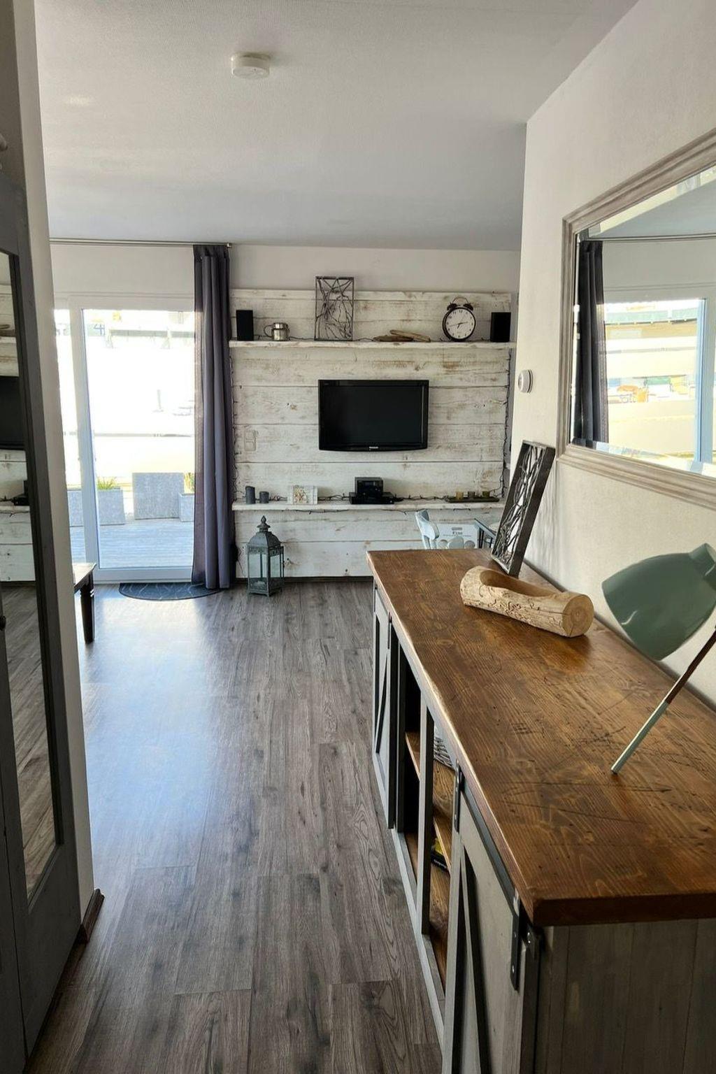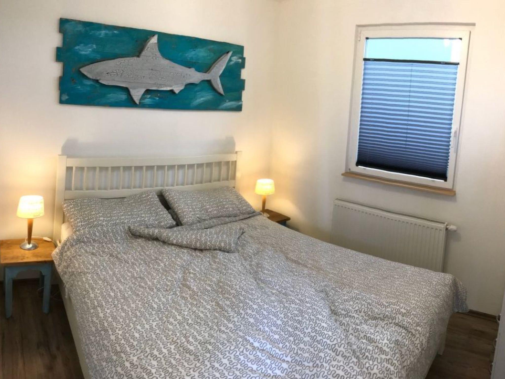 "The holiday home was completely rebuilt in 2019. It is furnished for 5 people and up to two dogs.55 square metres of the new building are divided into a modern daylight bathroom, two bedrooms and a light-flooded living/dining area with open kitchen and access to the large wooden terrace.this is located directly on the canal and is spoiled with sun almost around the clock - but there are always shady spots on the property. Comfortable seating and a barbecue are provided, as are three bicycles, and because dogs are very welcome here, there is also a large basket that only needs to be softly upholstered. a dog beach with free-running facilities is within walking distance via the dam through the beautiful bird sanctuary. children have an adventure playground in the immediate vicinity, and there is also a miniature golf course. as you can see, you can enjoy your holiday to the full here: * 55 sqm holiday home, directly on the canal, with its own jetty * Large lounge area on the terrace * 2 bedrooms, each equipped with a double bed (1.60 x 2.00 m) with full-length mattress and slatted frames, two bedside tables and a wardrobe * Fully equipped, open-plan fitted kitchen with ceramic hob (4 plates), oven, filter coffee machine as well as Senseo machine, toaster and dishwasher * Large, open-plan living/dining area with corner sofa (can be folded out into a sofa bed), satellite TV and a music system with USB port, CD drive and digital radio * Daylight bathroom with towel warmer and travel hairdryer as well as a large shower (90 x 90 cm) with rain shower function and massage jets * Hallway with storage area (hoover, clothes horse and clothes pegs available) * Insect protection blinds or insect protection nets on the windows Insect screens and nets on the windowsENJOY - and have a GOOD TIME!