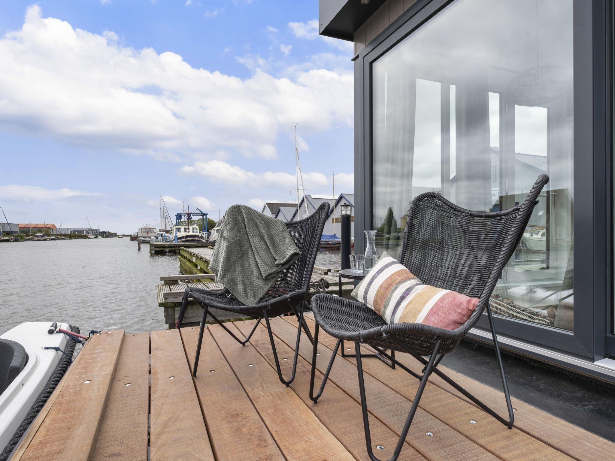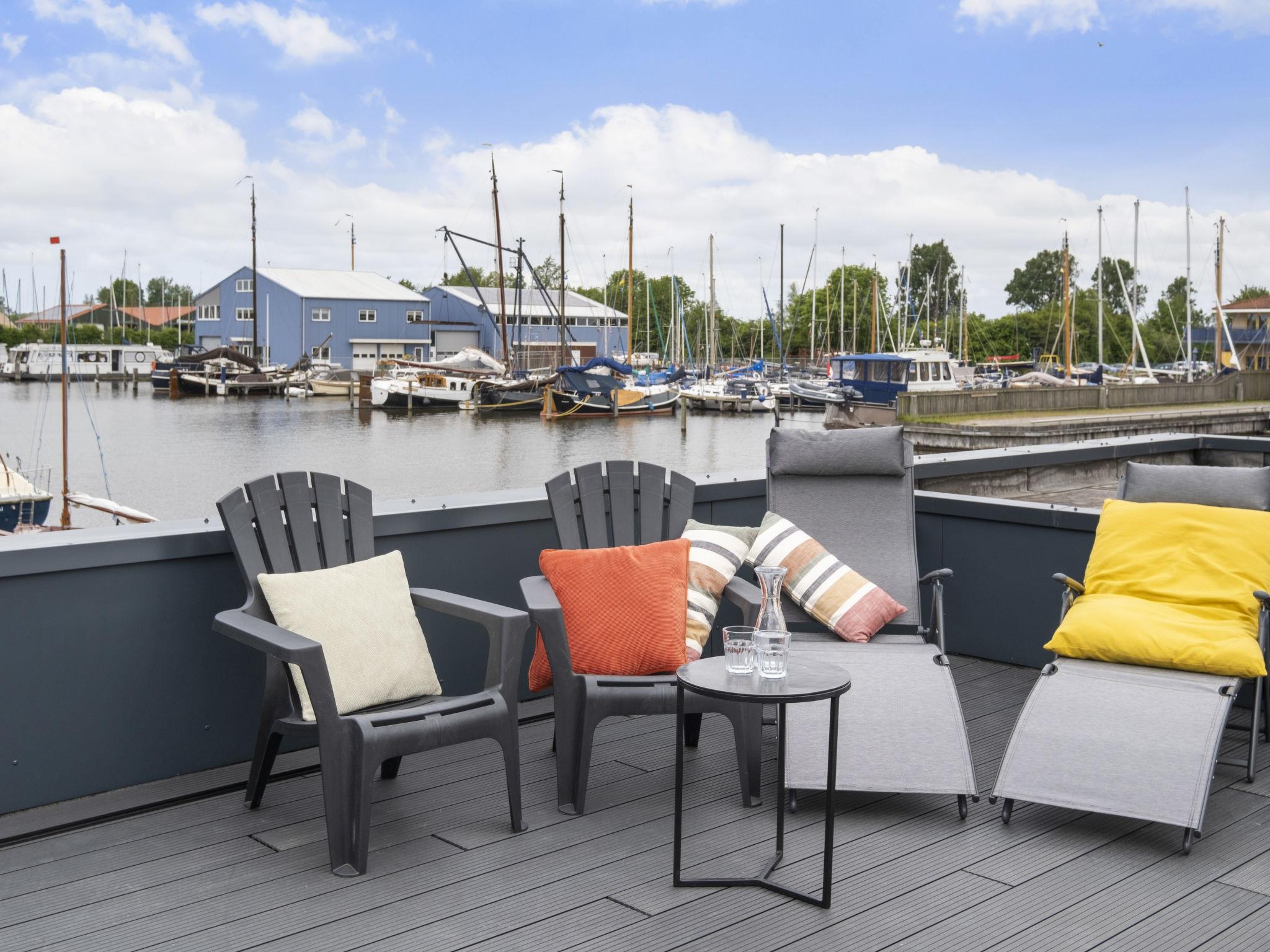"Harboursuite 2 incl. Motorboot", 3-room house 42 m2. Comfortable furnishings: living room. Exit to the balcony. 1 room with 1 x 2 bunk beds. 1 room with 1 double bed. Open kitchen (4 hot plates, oven, dishwasher, microwave, freezer) with dining table. Shower/WC. Heating. Balcony 8 m2, terrace 30 m2. Terrace furniture, deck chairs (2), sitting area. Panoramic view of the river. Facilities: hair dryer. Internet (WiFi, free). Parking. Please note: smoke alarm. The boat is included between March 15th and October 31st (value 150 euro per day). No license needed. Not suitable for guests without a swimming certificate. Own risk for damages 500 EUR.