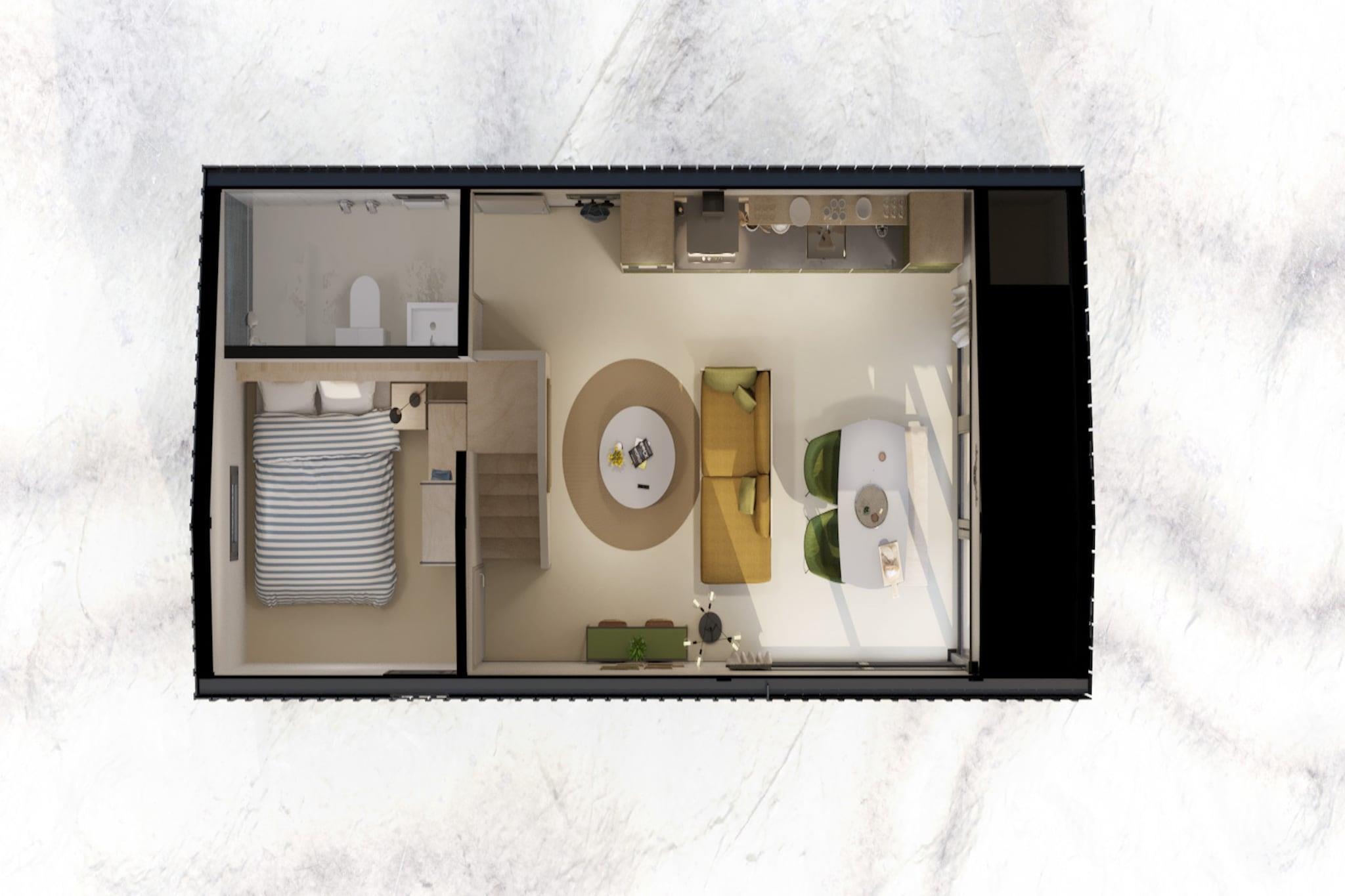 Stueetage: (Stue(Fjernsyn), åbent køkken(cooker, kaffemaskine(kopper), combi-mikroovn, opvaskemaskine , køleskab(+ fryser)), soveværelse(dobbeltseng eller 2 enkeltsenge Senge), badeværelse(bruser, håndvask, toilet)) Mellemetage: (åbent rum(dobbeltseng eller 2 enkeltsenge Senge)) havemøbler