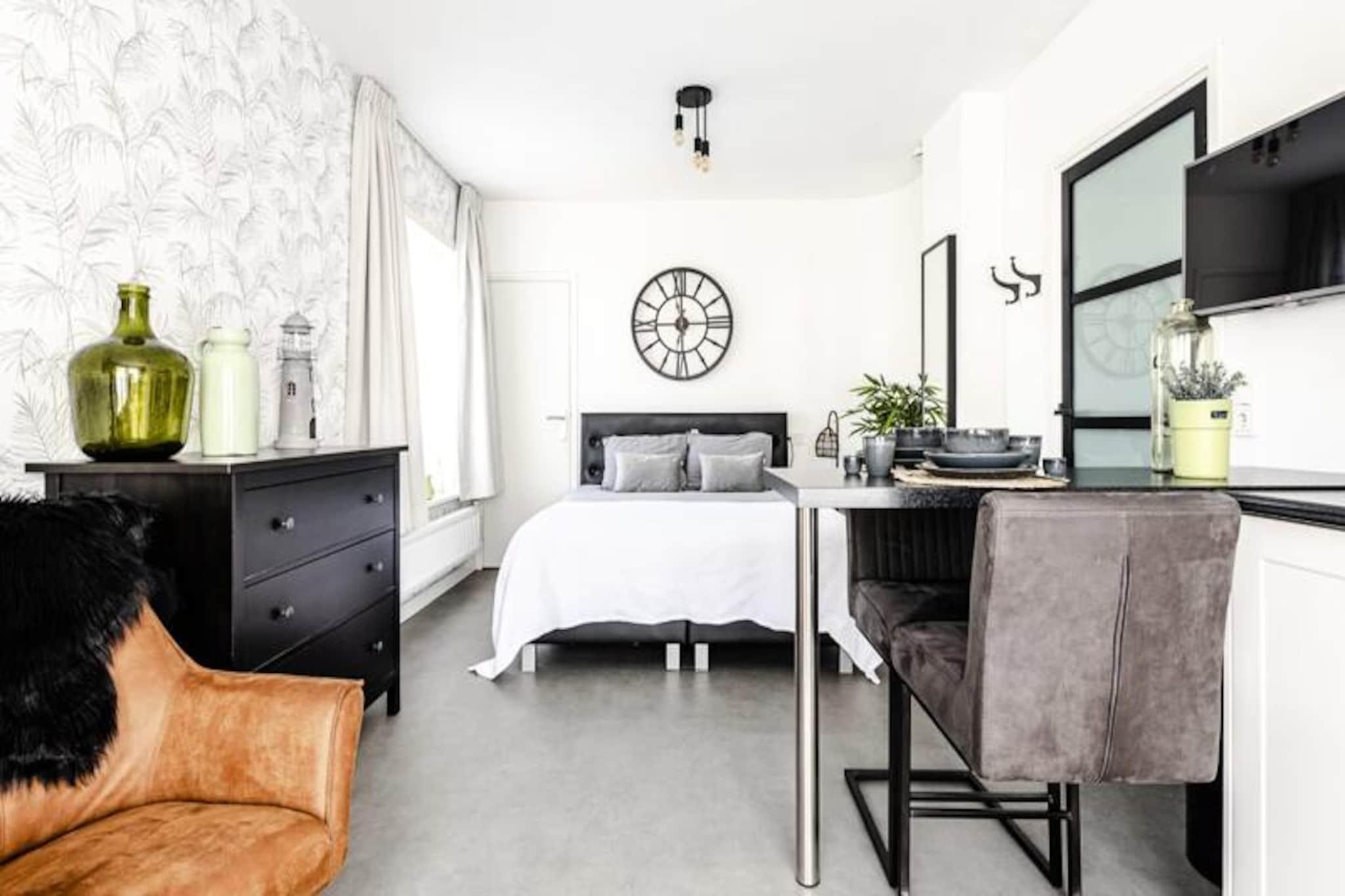 I udkanten af ??Zandvoorts pulserende kystcharme tilbyder dette nyrenoverede studie et intimt tilflugtssted for par, der søger en blanding af afslapning og eventyr. Kun 150 meter fra sandstrandene og den livlige promenade vil du blive fordybet i den essentielle kystoplevelse. Uanset om du slentrer til strandklubberne eller udforsker de hyggelige gader, føles hvert øjeblik her som et frisk pust. Togstationen, med direkte forbindelser til Haarlem og Amsterdam, ligger også inden for gåafstand, hvilket gør dette til den perfekte base for en dynamisk ferie. \n\nIndenfor udstråler studiet moderne elegance med gennemtænkte detaljer overalt. Opholdsstuen har et fuldt udstyret tekøkken og spiseplads, ideel til hyggelige måltider efter en dag med udforskning. Den komfortable dobbeltseng indbyder til afslappende nætter, mens det elegante badeværelse med bruseniche tilføjer et strejf af luksus. Selvom gangen og trappen deles med nabogæsterne, er selve studiet helt privat, hvilket sikrer et roligt og uforstyrret ophold. Vigtige faciliteter såsom Wi-Fi, tv, sengelinned og håndklæder er inkluderet for din bekvemmelighed. \n\nUden for døren afslører Zandvoort en verden af ??muligheder. Fra den fredfyldte skønhed i nationalparkerne De Waterleidingduinen og Kennemerduinen til spændende aktiviteter som surfing, kitesurfing eller mountainbiking omkring den berømte Circuit Park Zandvoort, er der noget for enhver smag. Den nærliggende naturiststrand tilbyder en unik flugt, mens racerbanen er vært for spændende begivenheder som det historiske Grand Prix. For urbane opdagelsesrejsende er Amsterdam kun en kort togtur væk, så du kan kombinere kystens ro med bylivets puls. \n\nUanset om du er her for at slappe af ved havet, begive dig ud på udendørs eventyr eller forkæle dig selv med kulturelle udflugter, er dette charmerende studie din port til uforglemmelige minder i Zandvoort.