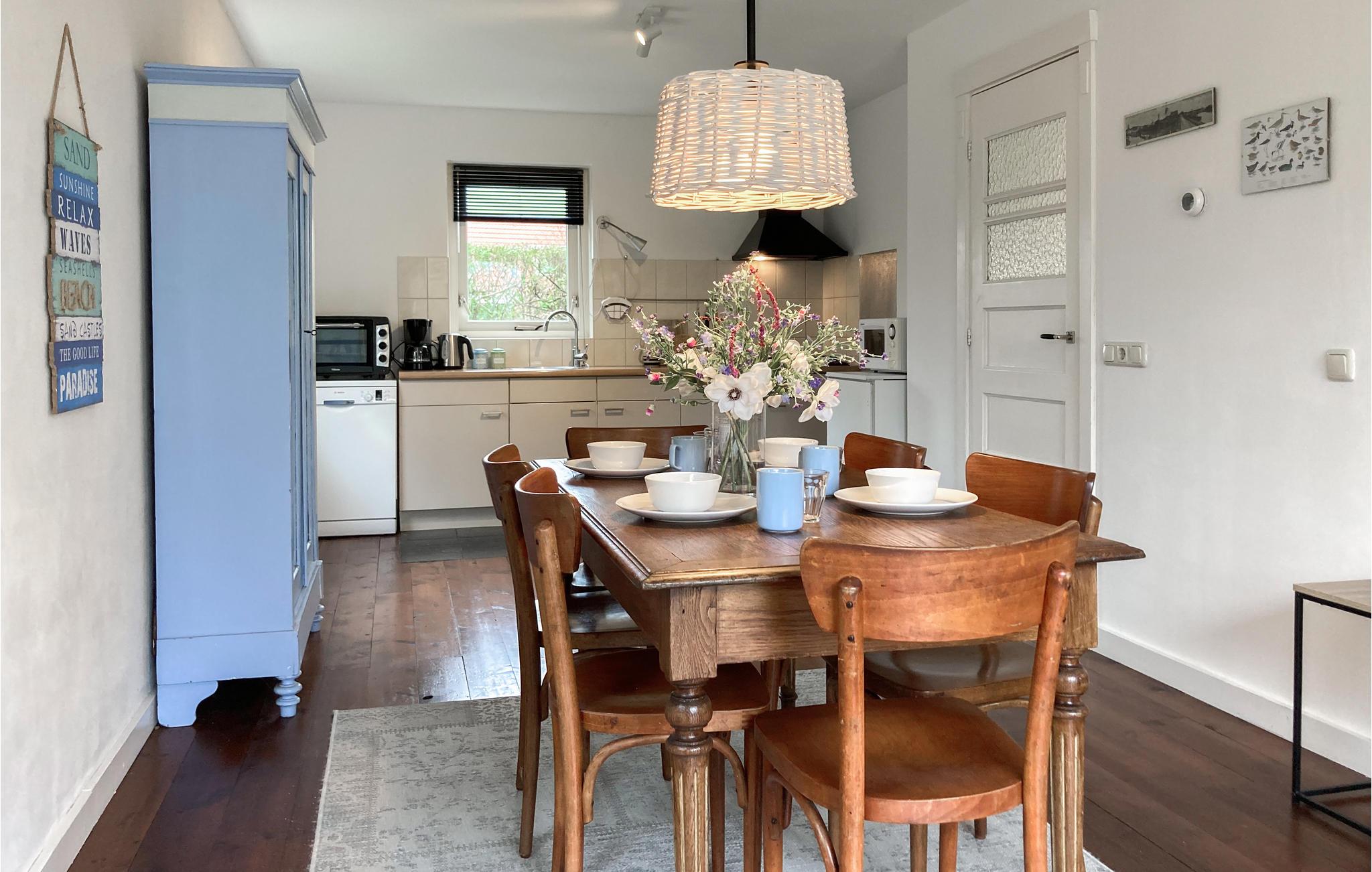 Huset er lyst og hyggeligt indrettet, så her er der gode rammer til at slappe af og nyde ferien. Dæk op til dagens måltider ved det lange spisebord og læn jer tilbage med en film eller god bog, når I vender hjem efter dagens oplevelser.