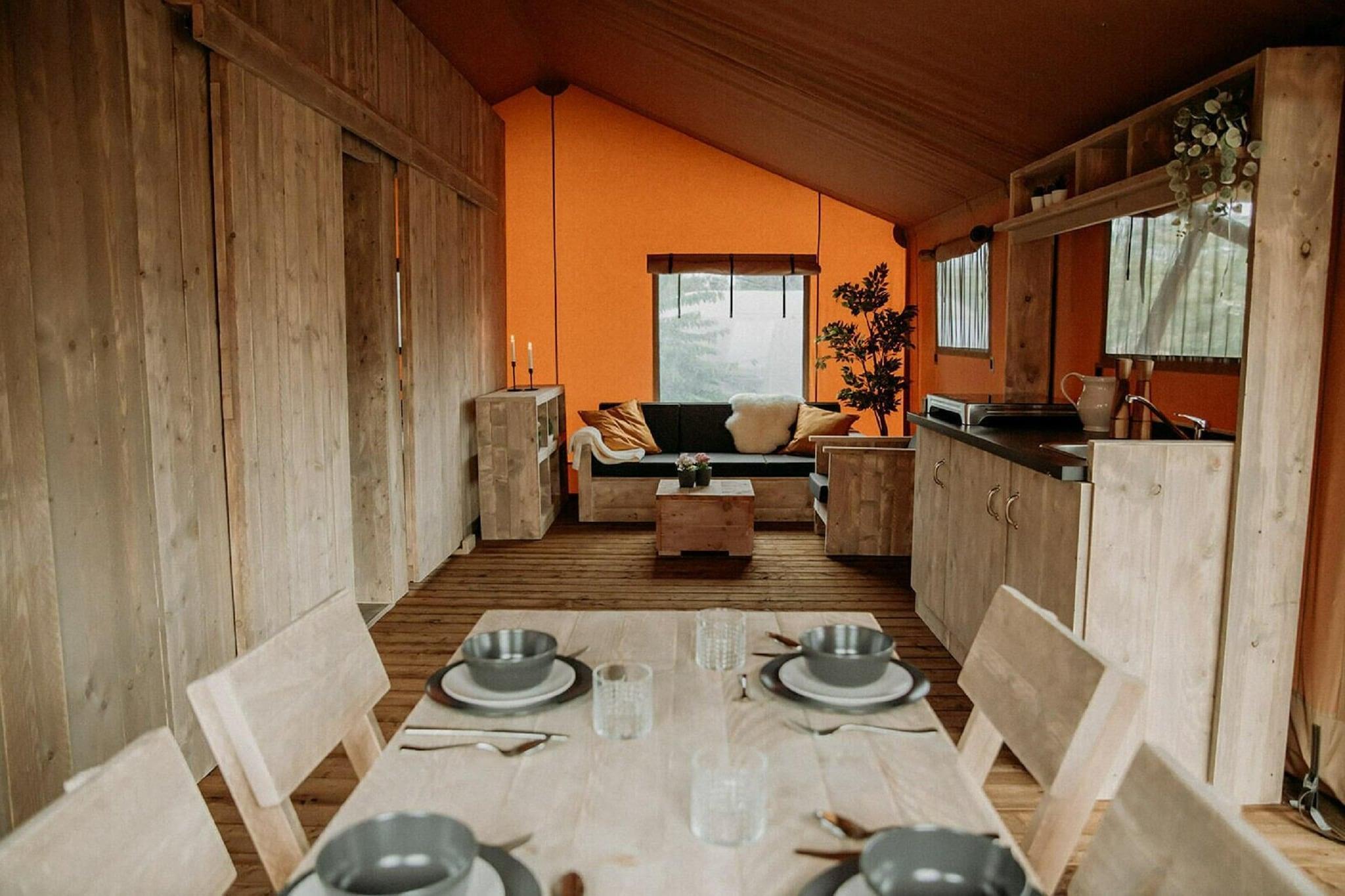 Safari teltophold Nyd komforten ved at glampe i et safaritelt, der kombinerer det udendørs med hjemmelignende lethed. Indenfor finder du et privat badeværelse, et smart-tv og et tekøkken med komfur, kaffemaskine, opvaskemaskine og køleskab. To soveværelser - det ene med en dobbeltseng, det andet med en enkeltseng og køje - gør det ideelt for familier eller små grupper. Elvarme holder teltet hyggeligt, mens verandaen med havemøbler og et loungesæt er perfekt til afslapning. Gæsterne har også adgang til en opvarmet, overdækket swimmingpool og parkering på stedet. Udforsk Zuna's Outdoors Campingpladsen ligger i udkanten af ??Zuna og tilbyder masser af måder at nyde naturen på. Gå eller cykle langs naturskønne stier, slap af ved bålområderne, eller tag dagsture til nærliggende historiske byer i Overijssel. Golfbaner, lokale søer og vingårde giver endnu flere aktiviteter for dem, der ønsker at forblive aktive eller bruge tid på at udforske. Med en sådan variation lige ved hånden, er der noget for enhver smag at opdage. Spisning og bekvemmelighed Pop-up-restauranten på stedet tilbyder sæsonbestemte retter i afslappede omgivelser, mens nærliggende landsbyer byder på caféer, bagerier og internationale spisemuligheder. Lokale markeder og butikker er kun en kort køretur væk til hverdagens behov eller unikke fund. Med gode vejforbindelser er det altid nemt at nå spisesteder, shoppingområder og attraktioner, hvilket holder dit ophold så stressfrit som muligt.