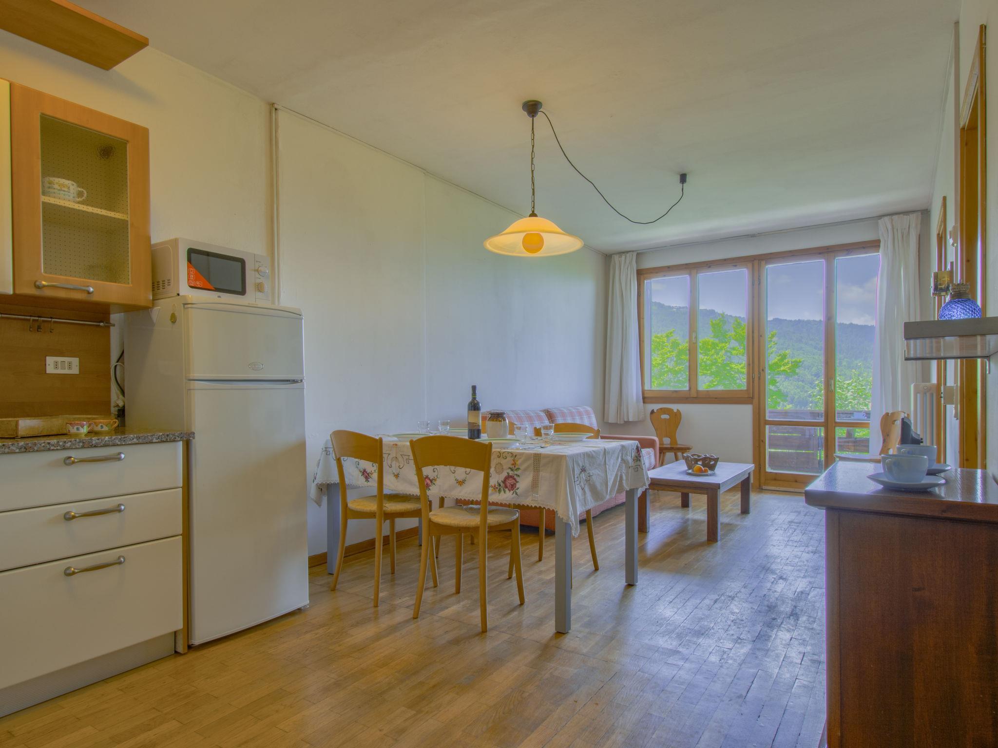 "Bravone", 3-room apartment 55 m2. Cosy and wooden furniture furnishings: living/dining room with dining table and digital TV. Exit to the terrace. 1 double bedroom with panoramic window with shower/bidet/WC with 1 x 2 bunk beds. Kitchen (4 gas rings, toaster, kettle, microwave). Shower/bidet/WC. Wooden floors. Large terrace. Terrace furniture. Panoramic view of the ski run. Facilities: Internet (WiFi, free). Please note: non-smokers only. Maximum 1 pet/ dog allowed. Smoke alarm, fire extinguisher. IT047023C26VIF7Z56