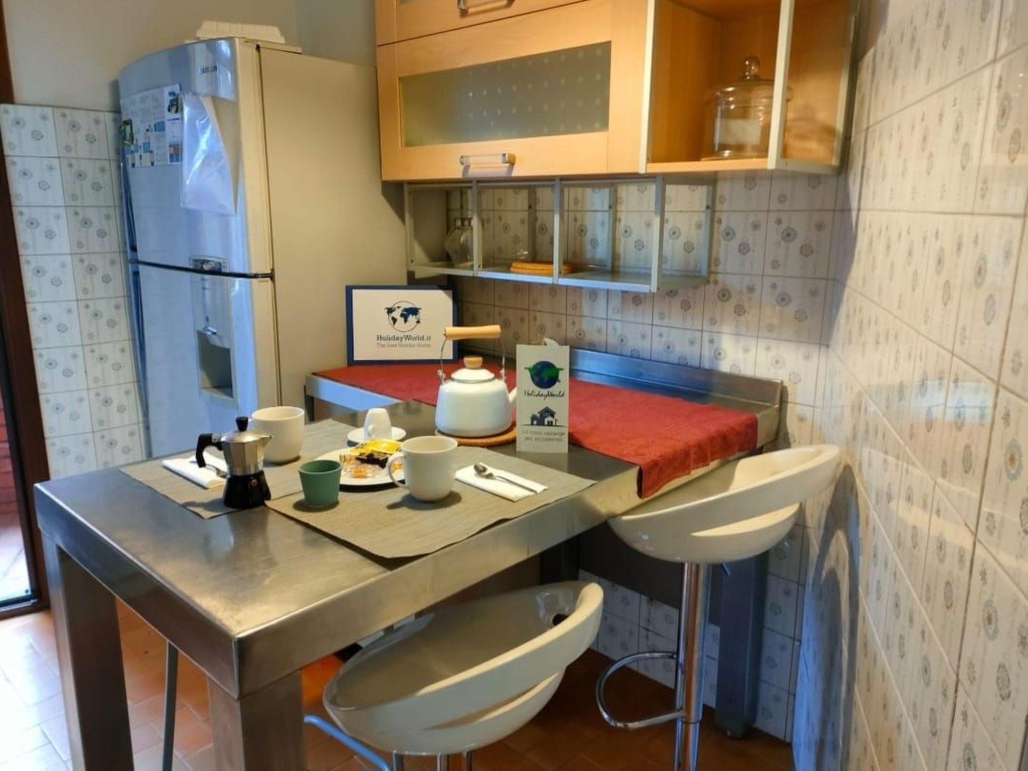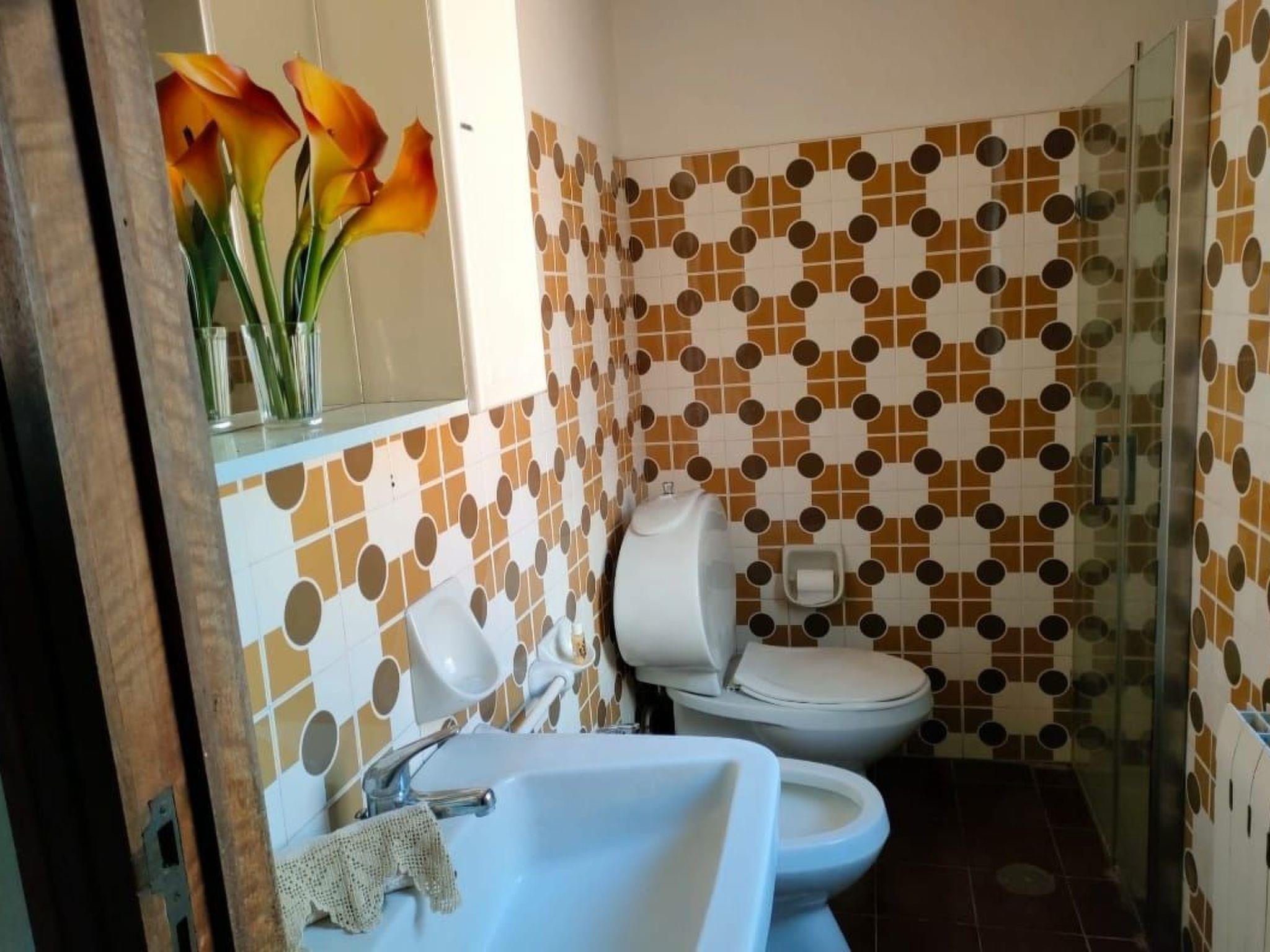 The vintage house is spread over 3 levels. On the ground floor is the entrance to the accommodation and a spacious furnished garden. Going up to the first floor is the living area with a single sofa bed, the kitchen and a bathroom. From the living room, a staircase leads to a private terrace with garden furniture and sunshade. The sleeping area is located on the third floor and consists of a double bedroom with a private bathroom with shower, a single bedroom, a bedroom with a French bed and a bathroom with bathtub.