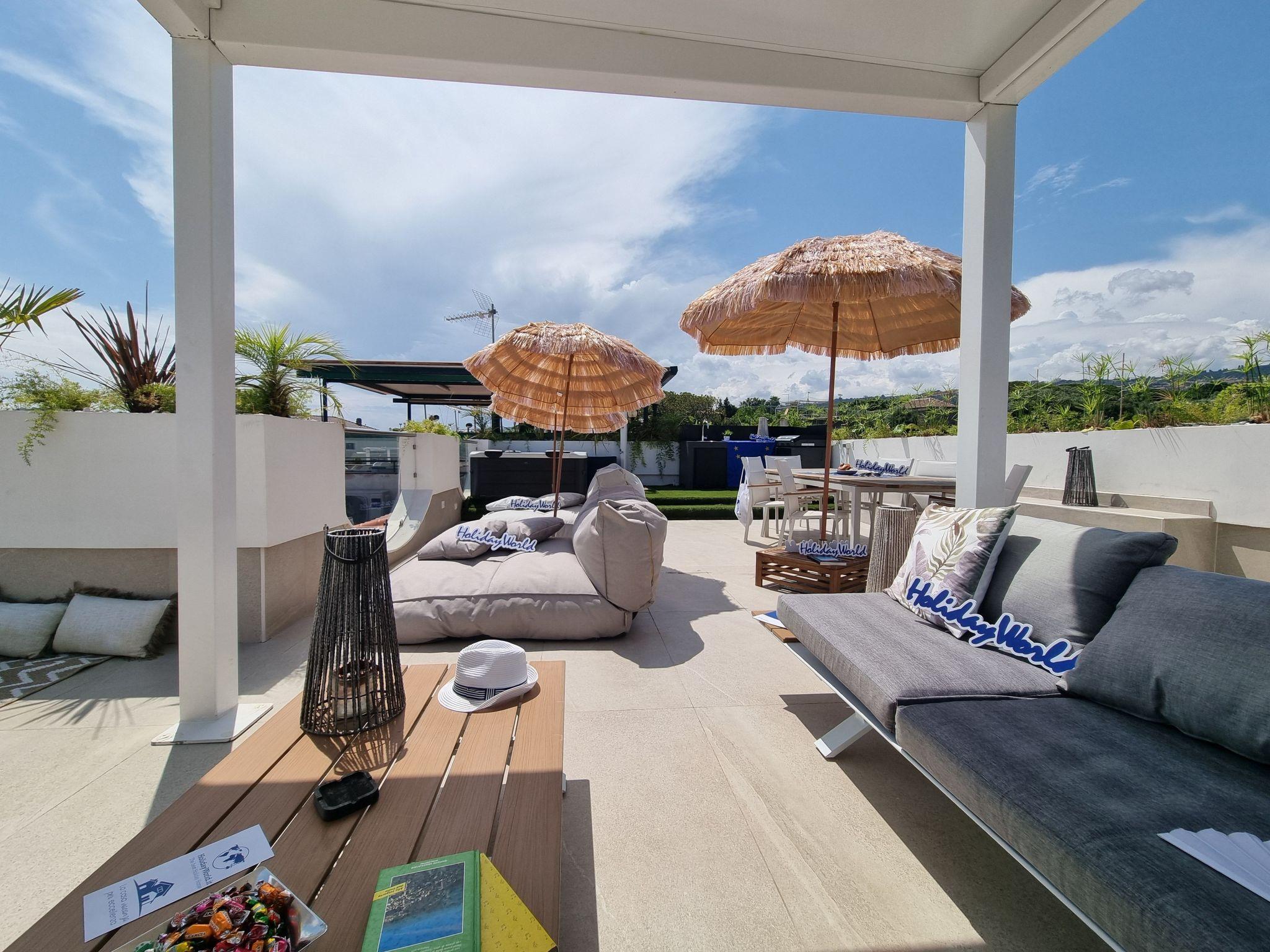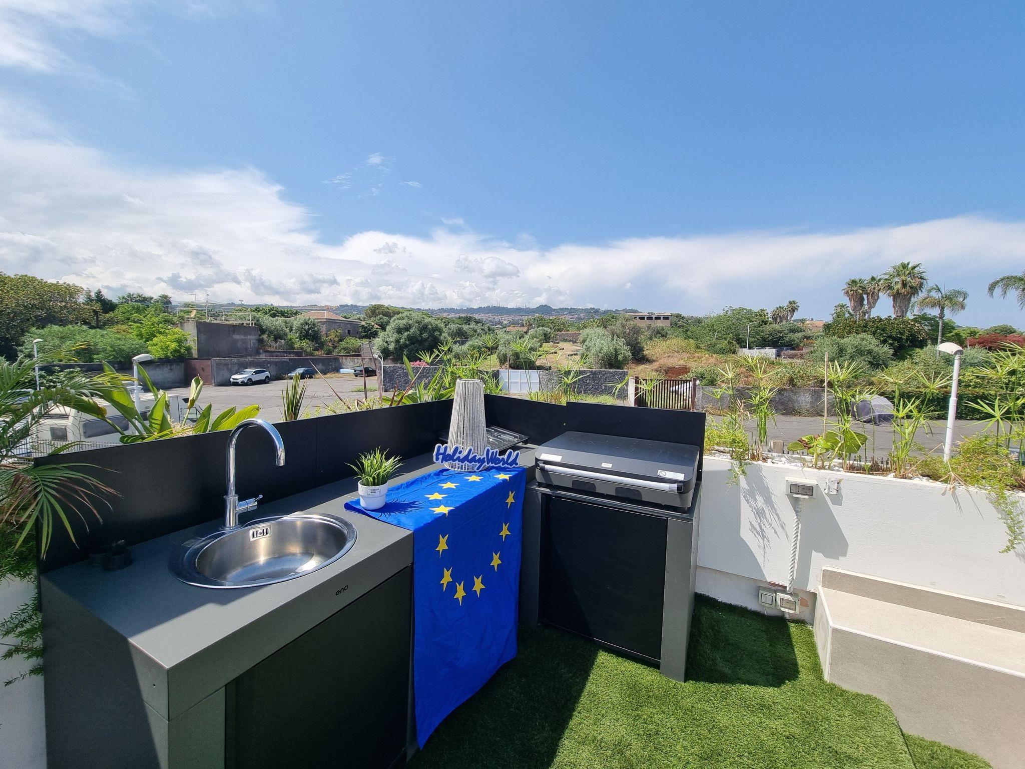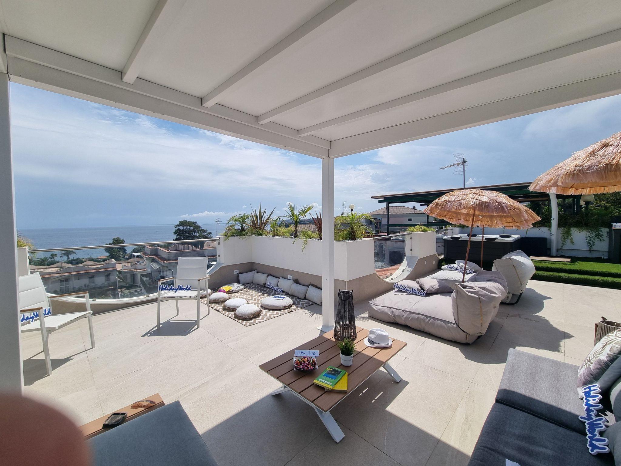 Antigua is a modern and functional flat located in Aci Castello (CT). The accommodation is distinguished by its spacious and bright ambience, characterised by elegant arches and a large window offering a panoramic view of the sea. The well-distributed living room includes a fully equipped kitchenette and a dining area with a stone table, creating a warm and inviting atmosphere. In addition, the single sofa bed is perfect for an adult and a child, adding further comfort to the home. A further highlight of the property is the terrace for shared use. This outdoor space is a true oasis of relaxation, equipped with a Jacuzzi for four, an outdoor shower, an outdoor kitchen with barbecue and a large table and chairs. There is also a gazebo with a corner sofa, outdoor armchairs, stools and parasols, all designed for maximum comfort and practicality. From this terrace, the view is spectacular: the sea in front and Mount Etna looming majestically in the background. Here, every sunset becomes an unforgettable moment, with ever-changing panoramas, offering a unique natural spectacle. Its location, a short walk from the centre of Aci Castello, makes it easy to explore the village, a fascinating corner of the eastern coast of Sicily, offering breathtaking views of the sea and Mount Etna. For nature and adventure lovers, Aci Castello is also the ideal starting point for exploring Mount Etna, one of the most active volcanoes in the world. Here you can go hiking, trekking and other outdoor activities, immersing yourself in incredible panoramas ranging from wilderness to spectacular views of the coast and crater. Whether you are looking for tranquillity or adventure, Suite Antigua offers the perfect setting for a relaxing holiday full of memorable experiences.