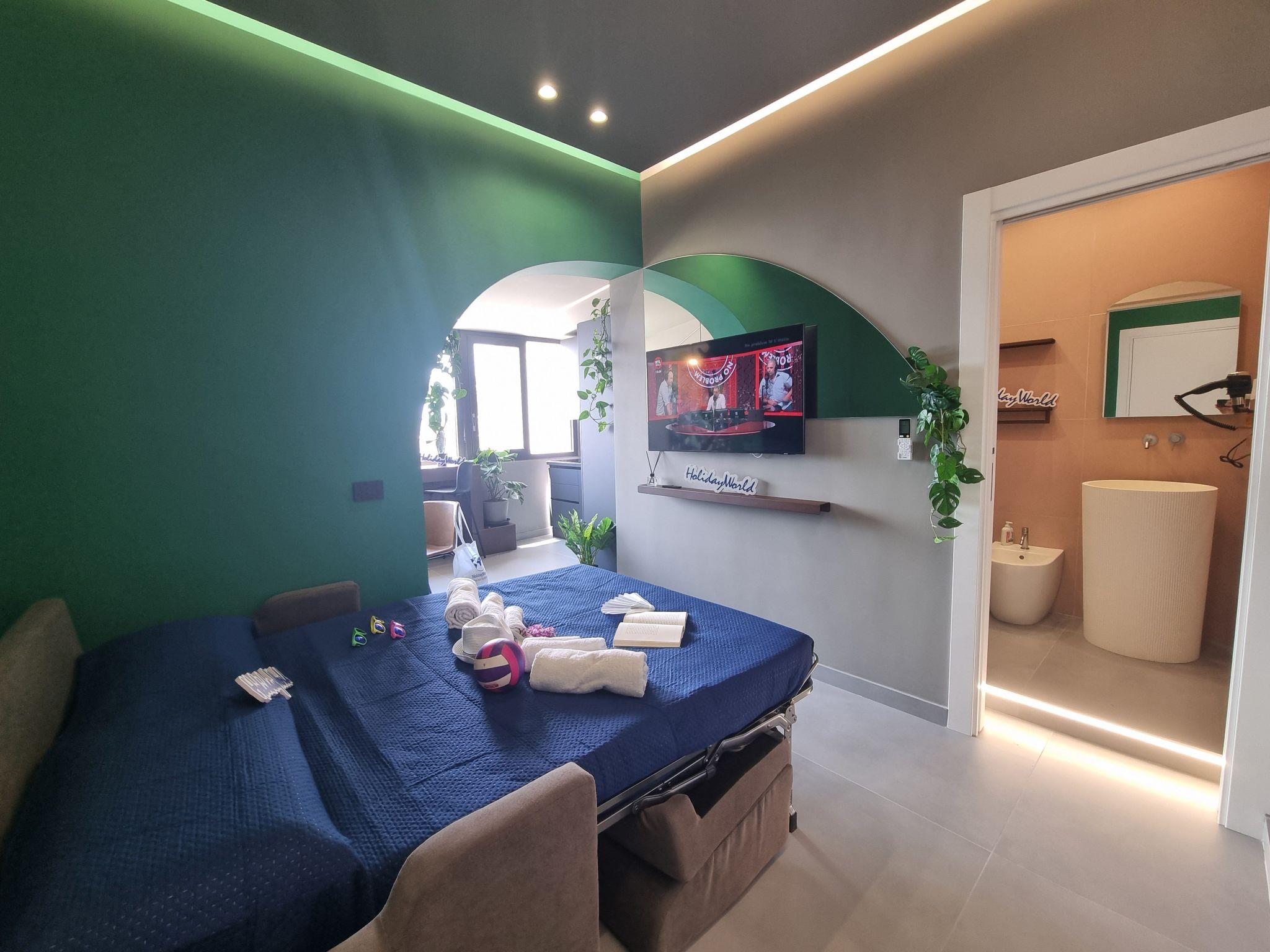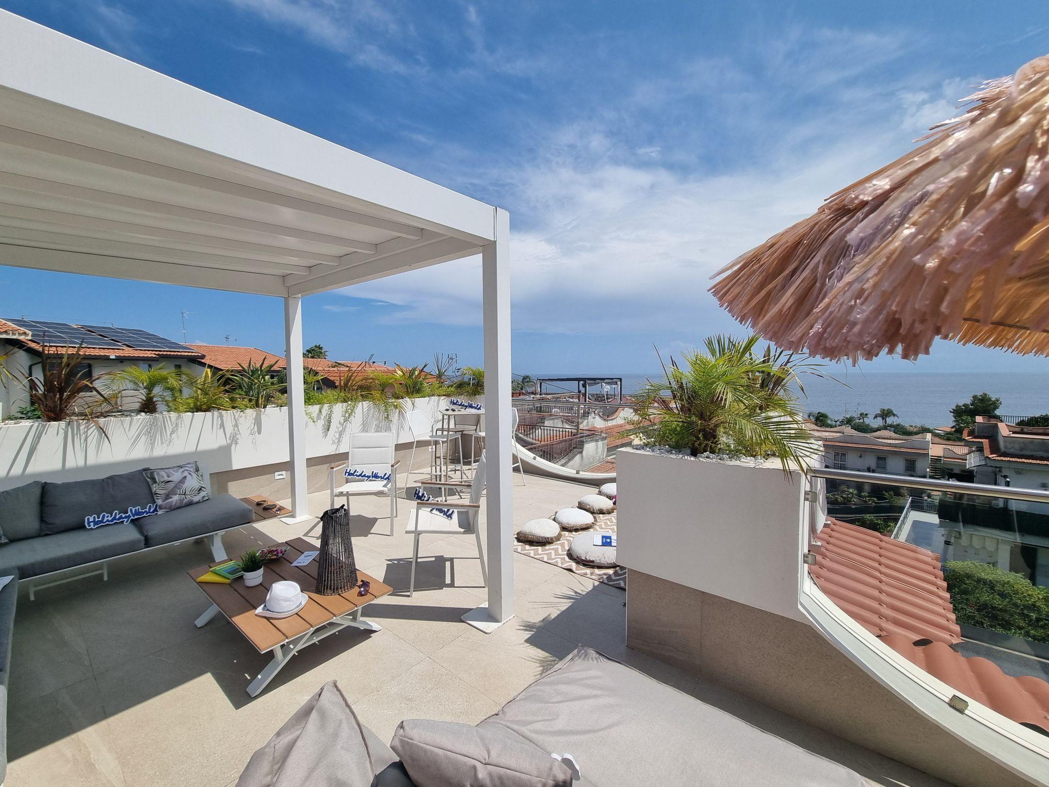 Saint Barth is a modern and functional flat located in Aci Castello (CT). The apartment is distinguished by its spacious and bright ambience, characterised by elegant arches and a large window offering a panoramic view of the sea. The well-distributed living room includes a fully equipped kitchenette and a dining area with table, creating a warm and inviting atmosphere. In addition, the single sofa bed is perfect for an adult and a child, adding further comfort to the home. A further highlight of the property is the terrace for shared use. This open-air space is a true oasis of relaxation, equipped with a Jacuzzi for four, an outdoor shower, an open-air kitchen with barbecue and a large table and chairs. There is also a gazebo with a corner sofa, outdoor armchairs, stools and parasols, all designed for maximum comfort and practicality. From this terrace, the view is spectacular: the sea in front and Mount Etna looming majestically in the background. Here, every sunset becomes an unforgettable moment, with ever-changing panoramas, offering a unique natural spectacle. Its location, a short walk from the centre of Aci Castello, makes it easy to explore the village, a fascinating corner of the eastern coast of Sicily, offering breathtaking views of the sea and Mount Etna. For nature and adventure lovers, Aci Castello is also the ideal starting point for exploring Mount Etna, one of the most active volcanoes in the world. Here you can go hiking, trekking and other outdoor activities, immersing yourself in incredible panoramas ranging from wilderness to spectacular views of the coast and crater. Whether you are looking for tranquillity or adventure, Suite Antigua offers the perfect setting for a relaxing holiday full of memorable experiences.