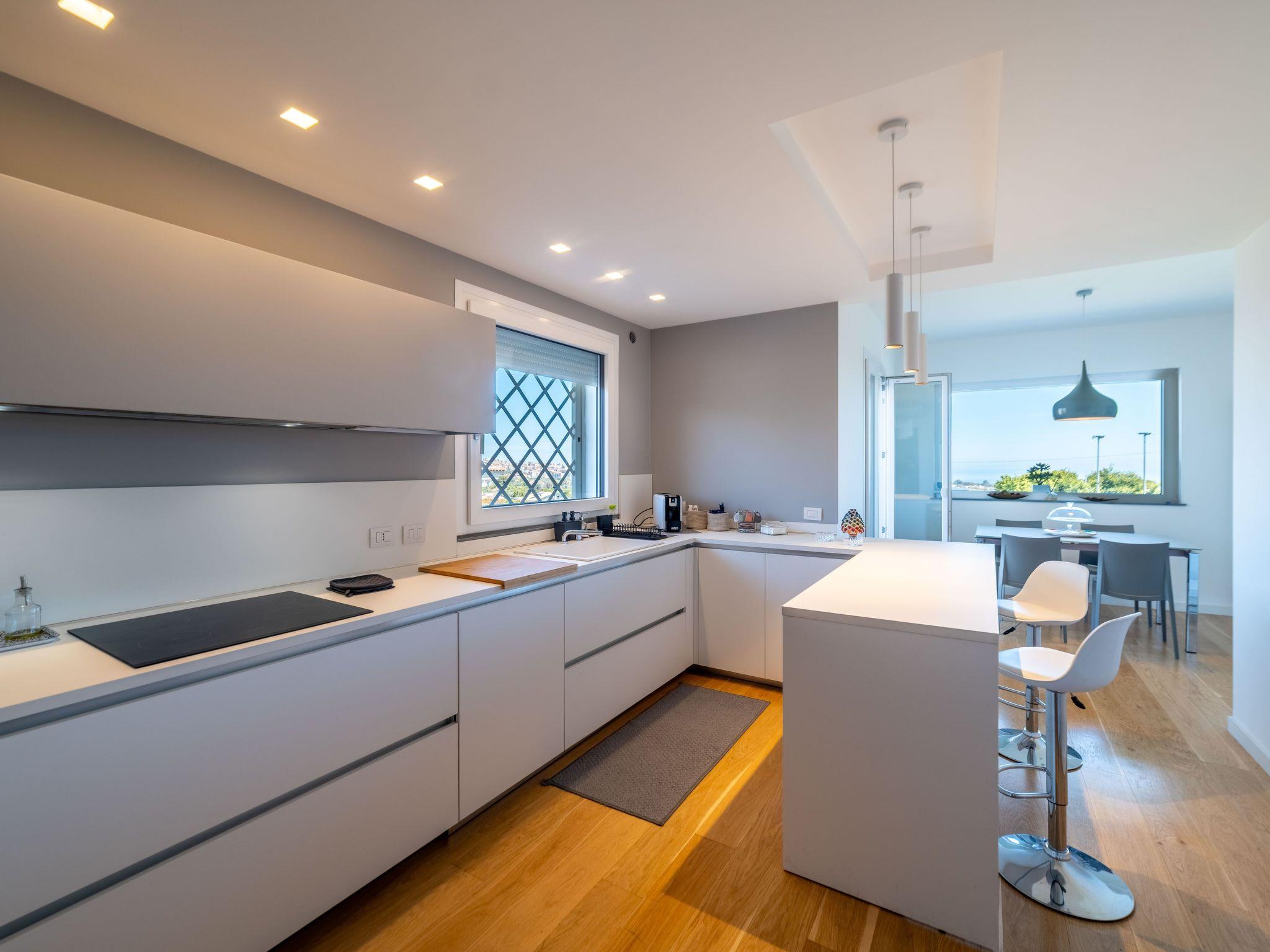 Luxury villa with prestigious finishes and a beautiful view of Etna and the sea. The villa is composed of two floors, both at garden level. Mamma Jessica has two double bedrooms (one ensuite) and a double ensuite with an added single bed. There are two other bathrooms, one next to the other double bedroom (with shower-tub) and a service bathroom in the living area. An elegant living room with a wonderful view of the Ionian Sea is adjacent to the very refined and modern kitchen which opens onto a terrace with a magnificent view of the swimming pool and the Ionian coast. The exterior has a higher garden, next to the entrance and another, of about 1000 meters with olive trees, flowers, lava stone walls, a beautiful green lawn and the swimming pool with solarium and BBQ area. Mamma Jessica is inside an exclusive residence with only other villas, all belonging to the same family unit. All the rooms of the villa overlook the garden. The villa is located 3 kilometers from the beautiful seaside village of Acitrezza full of restaurants, beaches, and with a splendid walk close to the famous Faraglioni