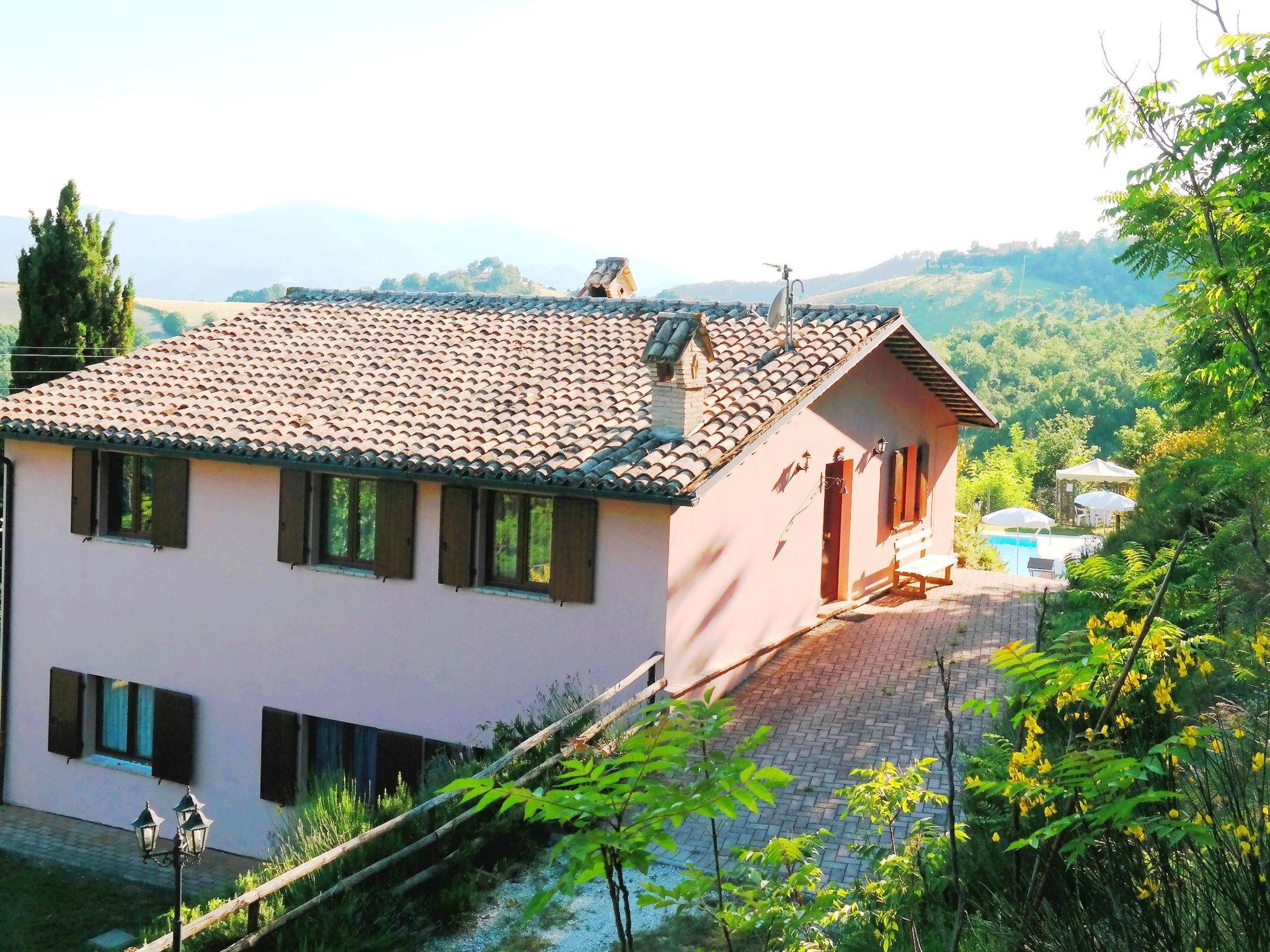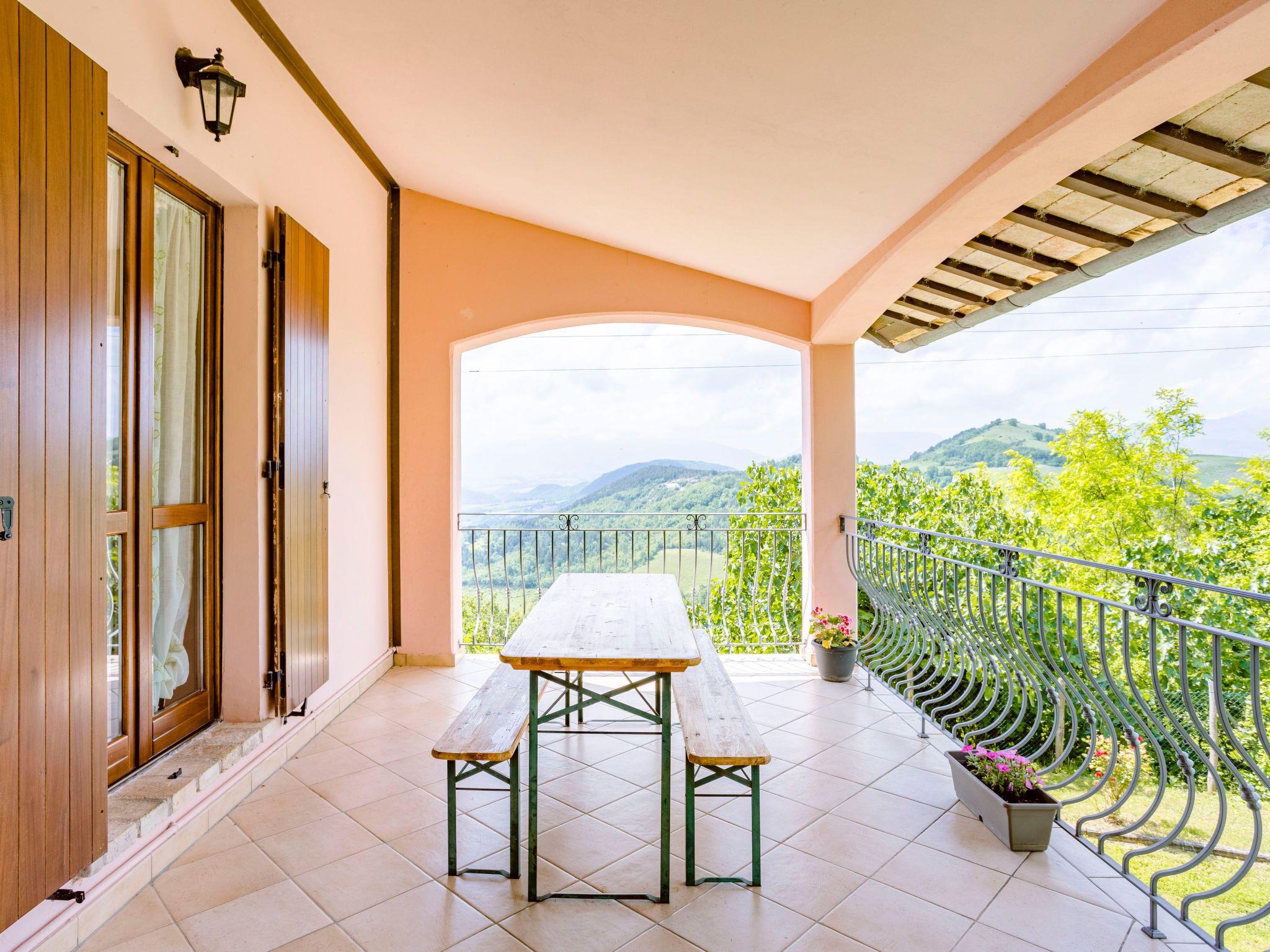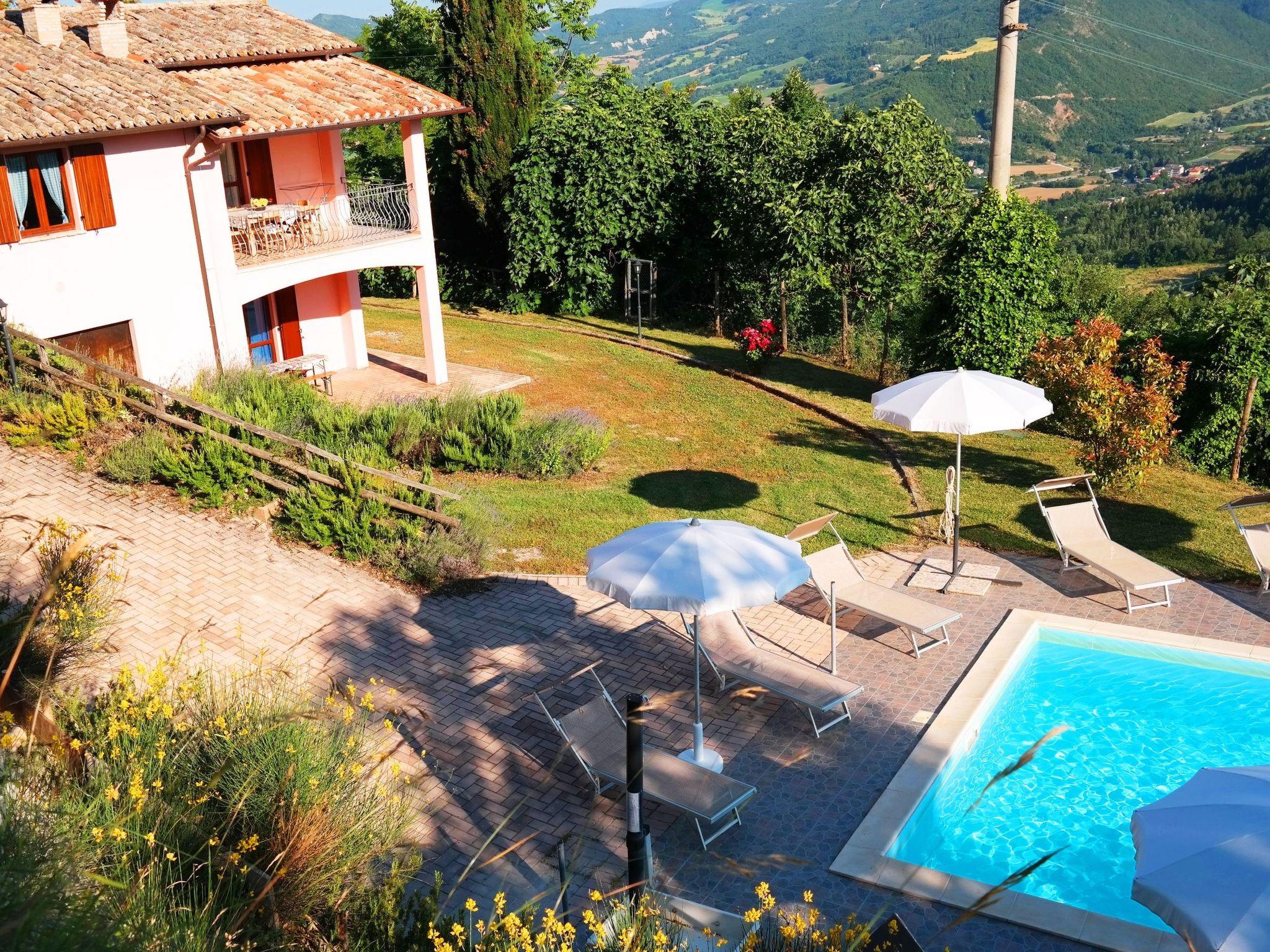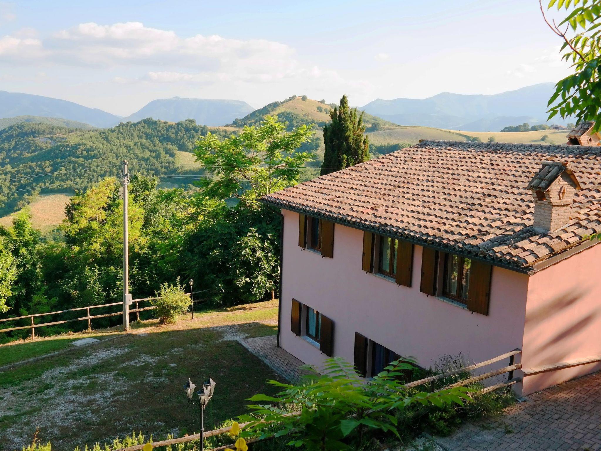 The independent holiday home is situated in a very sunny position with a panoramic view over the Candigliano river valley. At the same time you can admire the panorama of the Furlo Gorge and the three Apennine mountains, Monte Catria, Petrano and Nero.