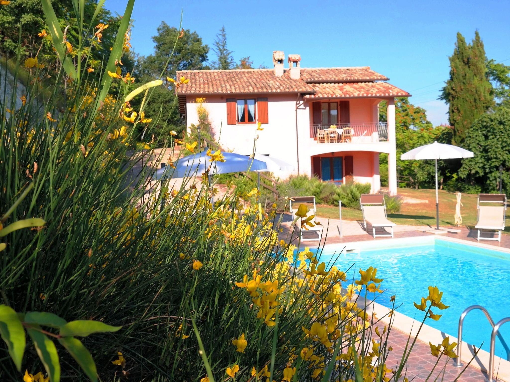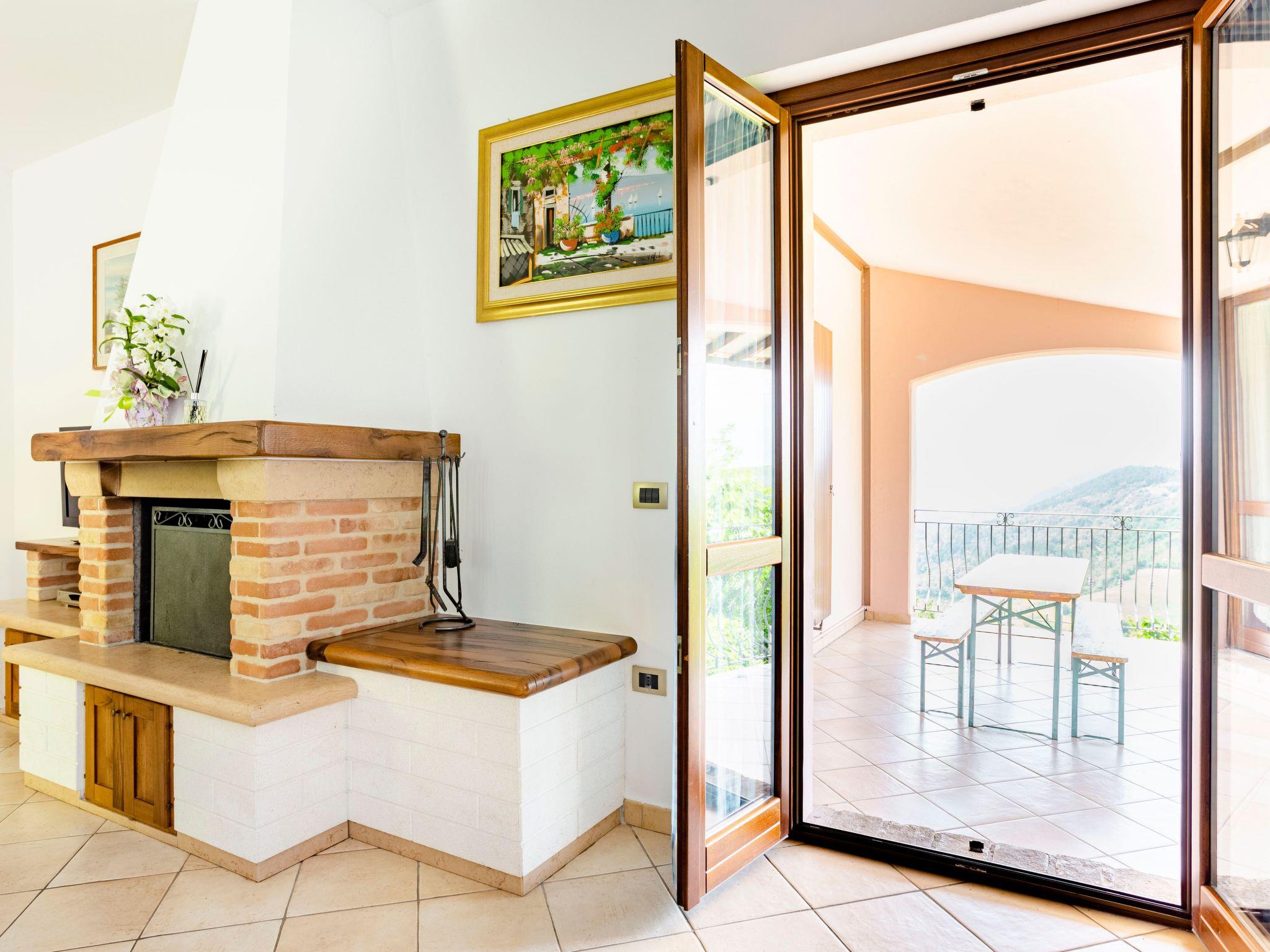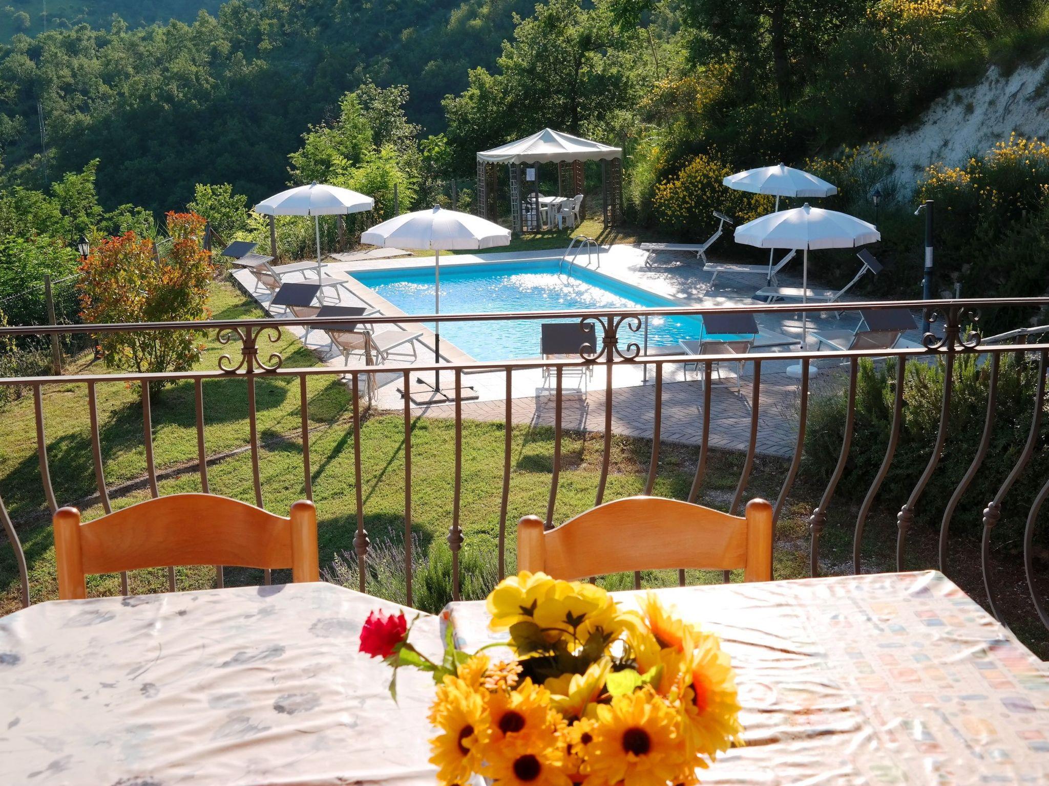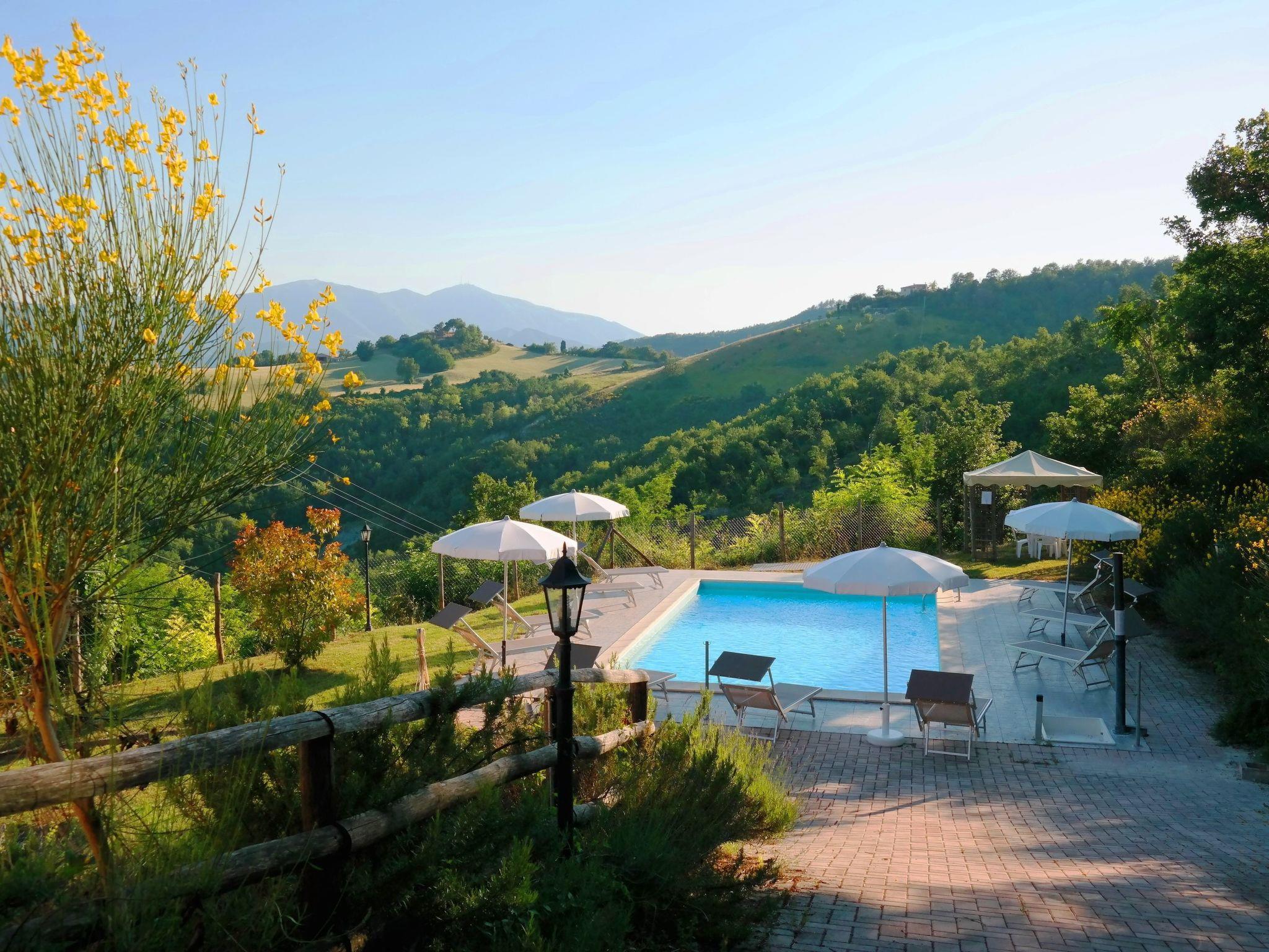 The independent holiday home is situated in a very sunny position with a panoramic view over the Candigliano river valley. At the same time you can admire the panorama of the Furlo Gorge and the three Apennine mountains, Monte Catria, Petrano and Nero.