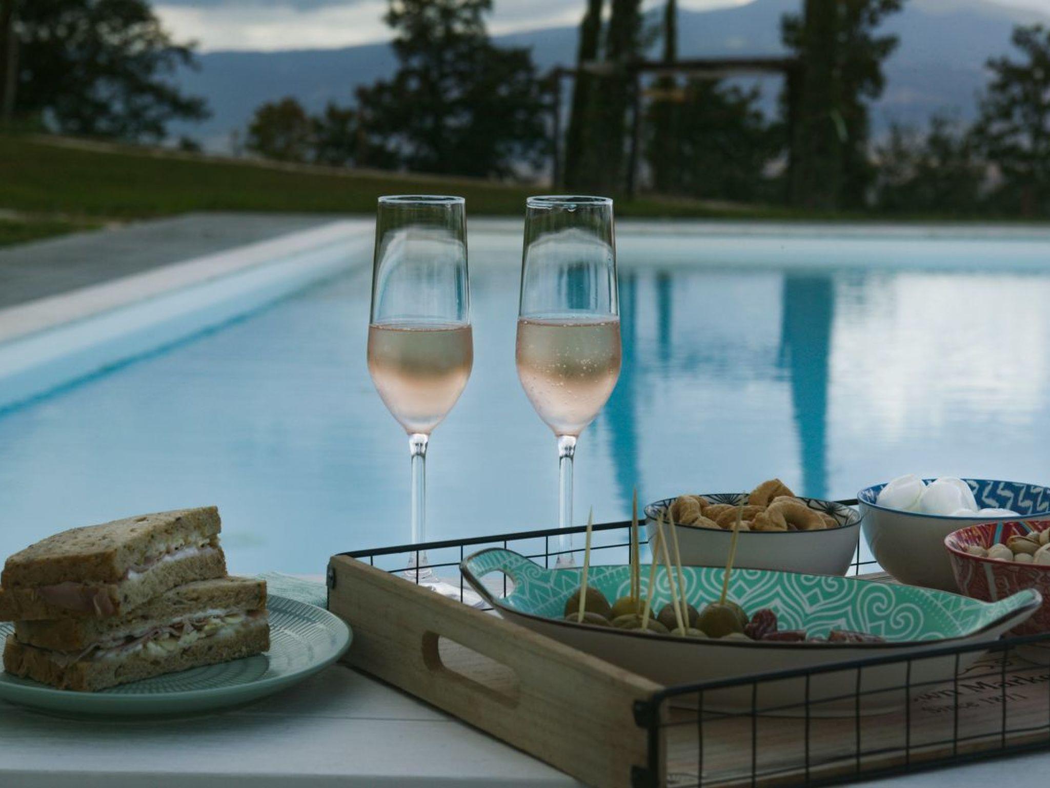 Exclusive luxury villa for 10 people near Tuscany with 5 bedrooms and 5 bathrooms, large panoramic pool, garden, piano, barbecue, padel court and SPA.