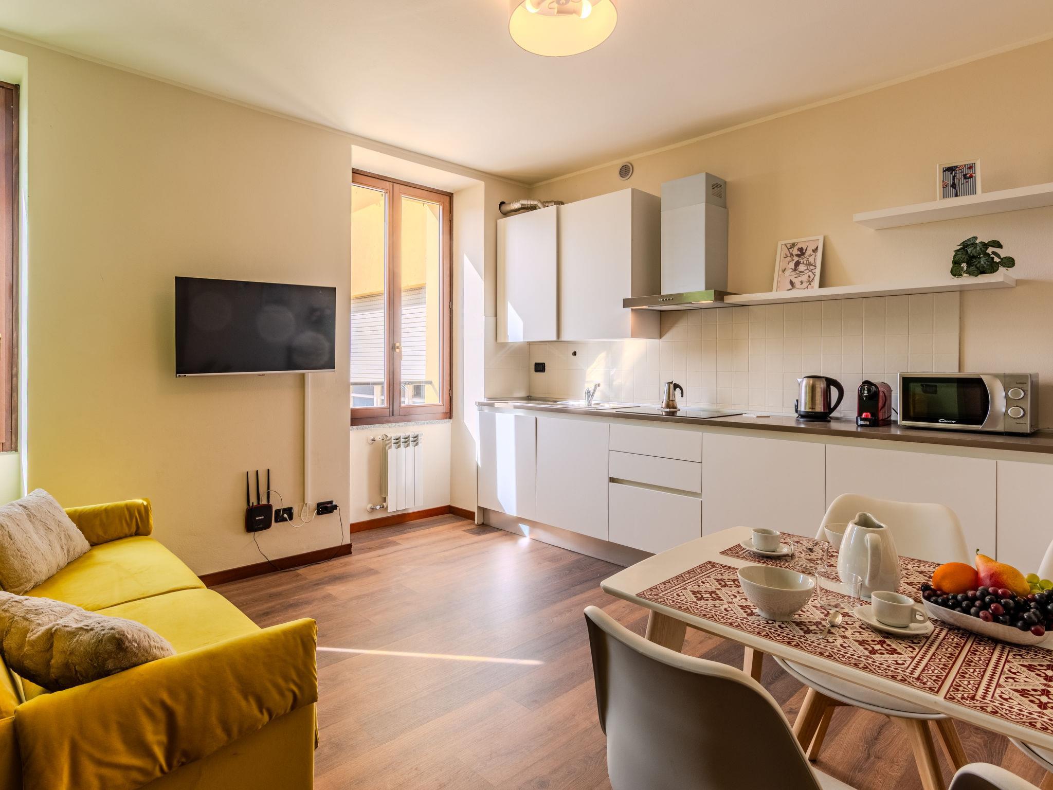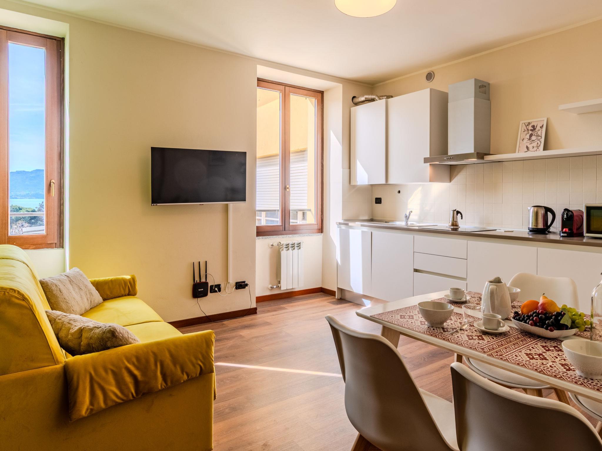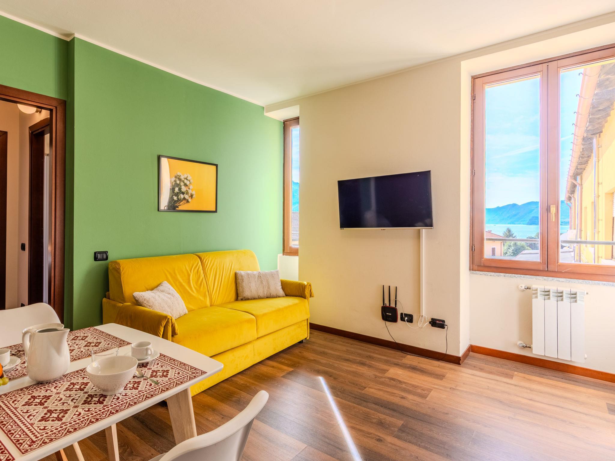 2-room apartment on 2nd floor. Comfortable and modern furnishings: open living/dining room with 1 double sofabed, dining table and TV (flat screen). 1 double bedroom. Open kitchen (dishwasher, 4 induction hot plates, kettle, microwave, electric coffee machine, Capsules for coffee machine (Bialetti)). Shower/bidet/WC. Gas heating. Heating available only from 15.10. to 30.04. Natural stone floors. View of the lake and the mountains. Facilities: hair dryer. Internet (WiFi, free). Parking (1 car). Please note: non-smokers only. Smoke alarm, fire extinguisher. IT013248B4HXVWLLNF