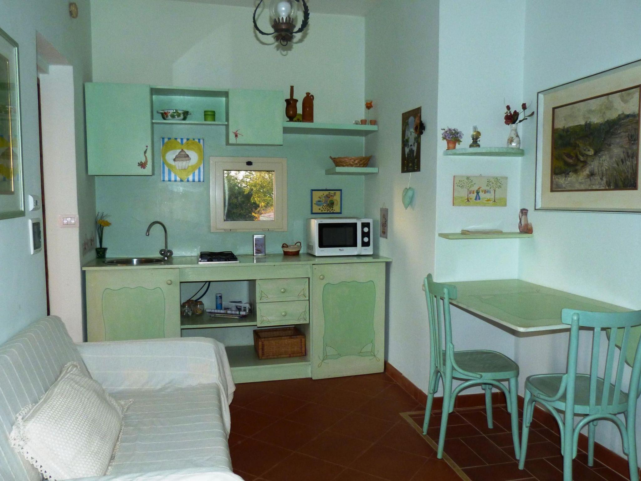 The Alba holiday flat is on one level and consists of two bedrooms, each with a double bed (160x190cm), a bathroom with shower and a kitchen-living room with fireplace. On request, it is possible to add a single bed in one of the bedrooms. The Tramonto mini-apartment for two persons consists of a bedroom with a double bed, a bathroom with shower and a small kitchen-living room. In the kitchen-living room there is a sofa bed for a child.