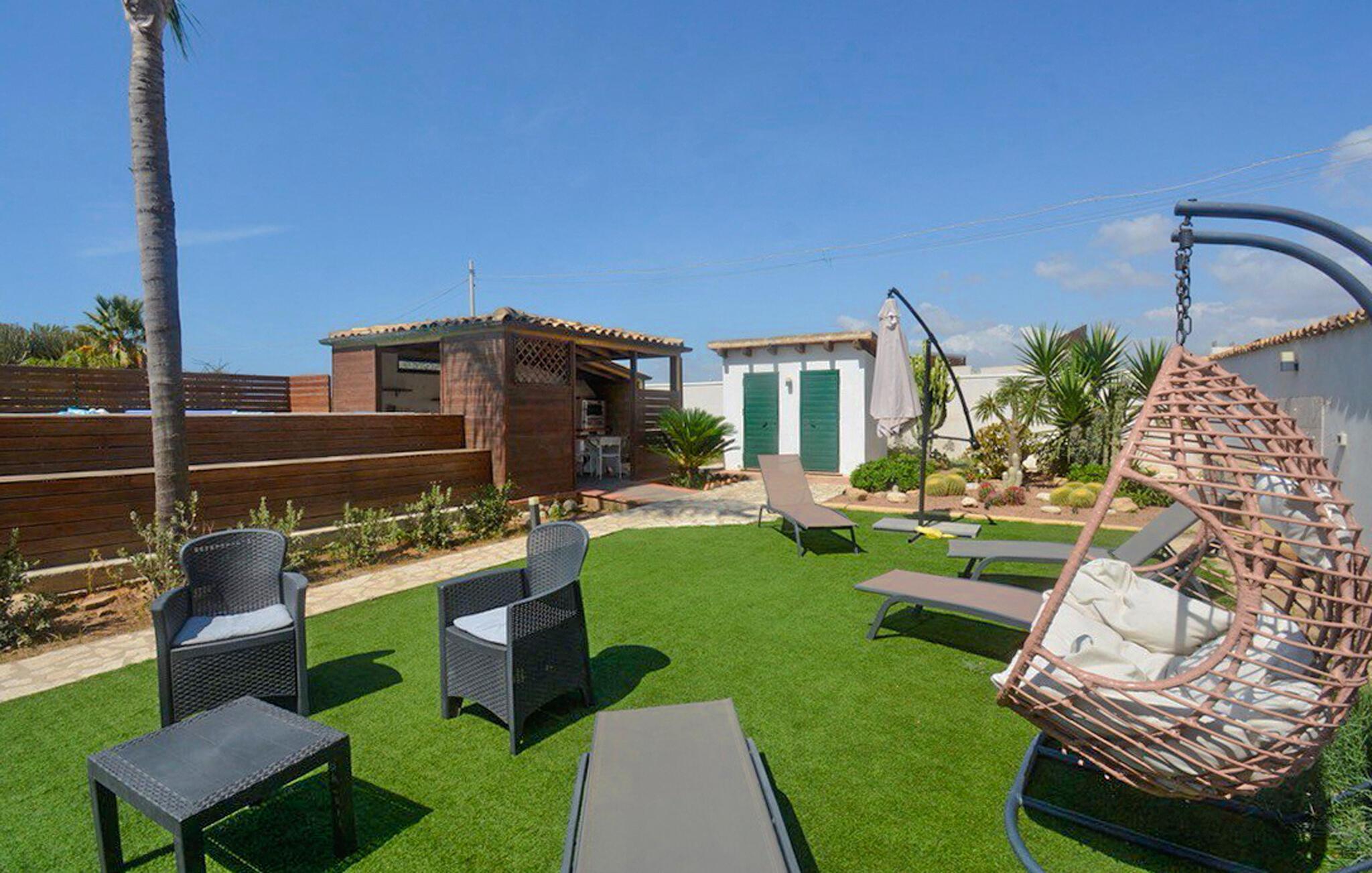 Oplev en afslappende ferie i dette hyggelige feriehus nær stranden med pool. Udefra byder huset jer velkommen med middelhavsstemning, lyse facader og en iøjnefaldende stor kaktus i haven. Indenfor finder I praktisk møblering med lyse træmøbler, et spisebord til hyggelige sammenkomster og et veludstyret køkken. Her kan I lave mad sammen, tilbringe lange aftener med mad og vin og nyde husets afslappede atmosfære. Den smukke, velholdte have med sin forfriskende pool og komfortable siddepladser inviterer jer til at slappe af i solen. Liggestole, en stor parasol og middelhavsplanter skaber en charmerende atmosfære. Her kan I starte dagen med en svømmetur, fordybe jer i en god bog i skyggen eller nyde lune aftener udenfor. Stranden er ikke langt væk, hvor blødt sand og det dybblå hav glitrer i solen venter jer. I Agrigento kan I beundre de verdensberømte templer i Valle dei Templi og opleve Siciliens imponerende historie på første hånd. De hvide kalkstensklipper ved Scala dei Turchi tilbyder et uforligneligt naturskue ved havet. Beliggende mellem olivenlunde og mandeltræer vil I opdage et landskab, der kombinerer ro og skønhed.