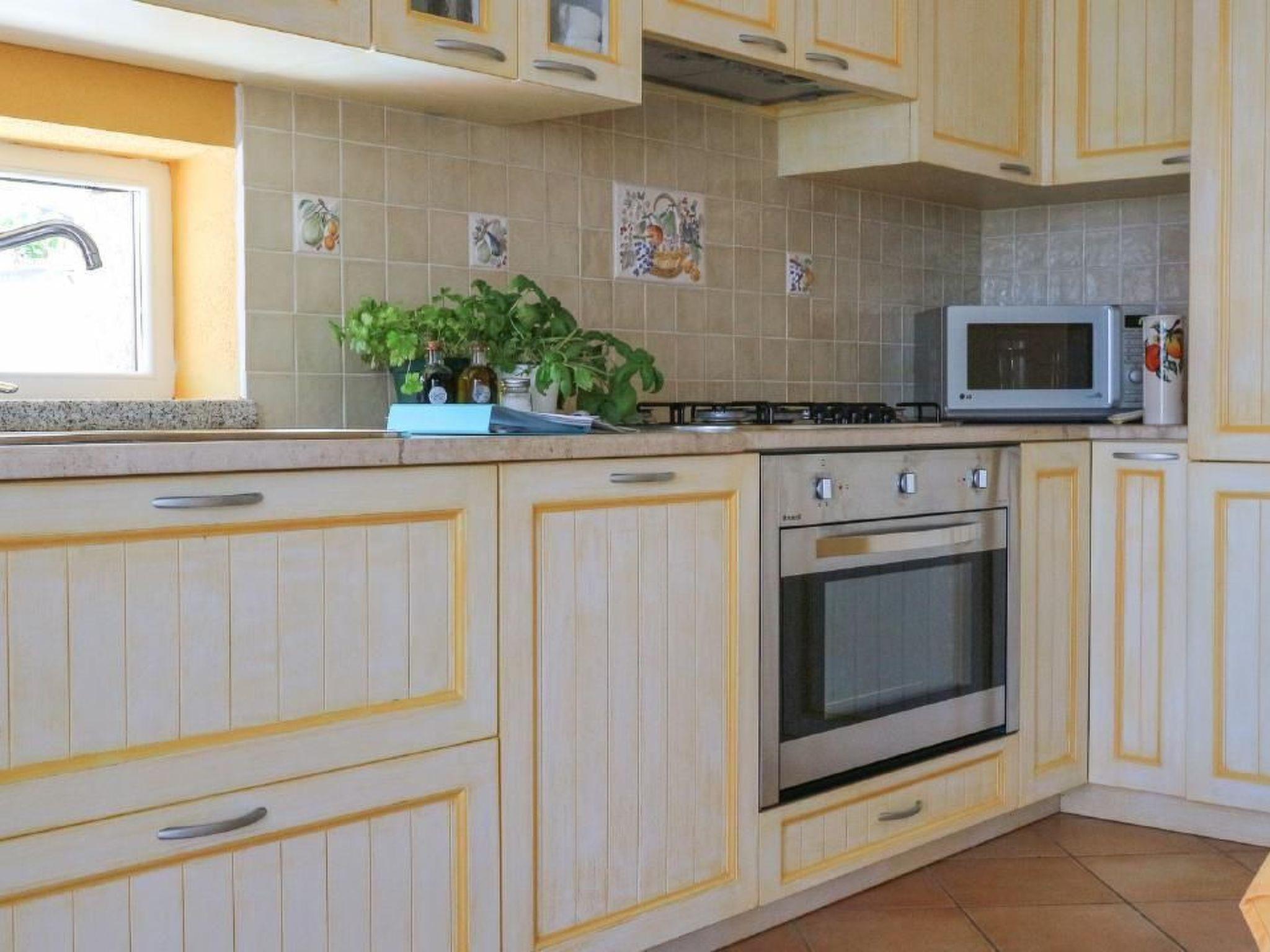Outside, the villa stands out for its exclusive-use garden that embraces the building on two sides, enriched by a panoramic terrace with solarium, outdoor shower, barbecue and a private pool. The tastefully furnished patio invites for moments of relaxation and conviviality in the open air, also offering a comfortable lounge and dining area with table and chairs. An additional touch of convenience is provided by the outdoor kitchen and a laundry area with washing machine at the back of the house.