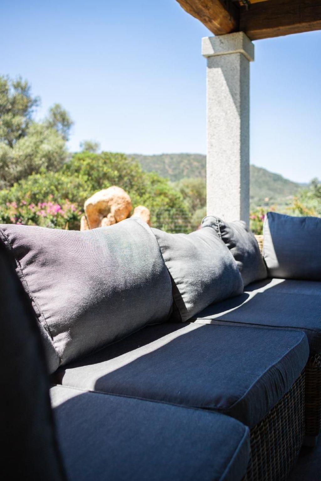 Outside, the house is distinguished by its exclusive lawn garden, which surrounds the property on three sides. It offers not only a double outdoor shower with cold water, but also an inviting porch with a relaxation area, a barbecue for pleasant grilling, an outdoor lounge and a dining area with table and chairs. This outdoor space is the ideal place to intensely experience the pleasant Sardinian climate, in perfect harmony with the surrounding nature.
