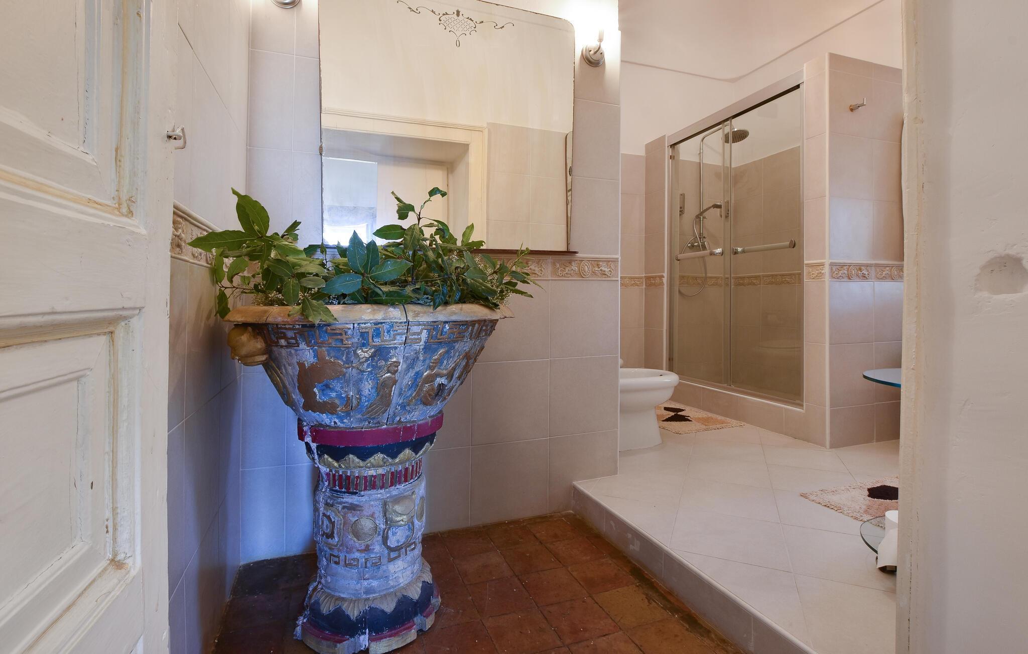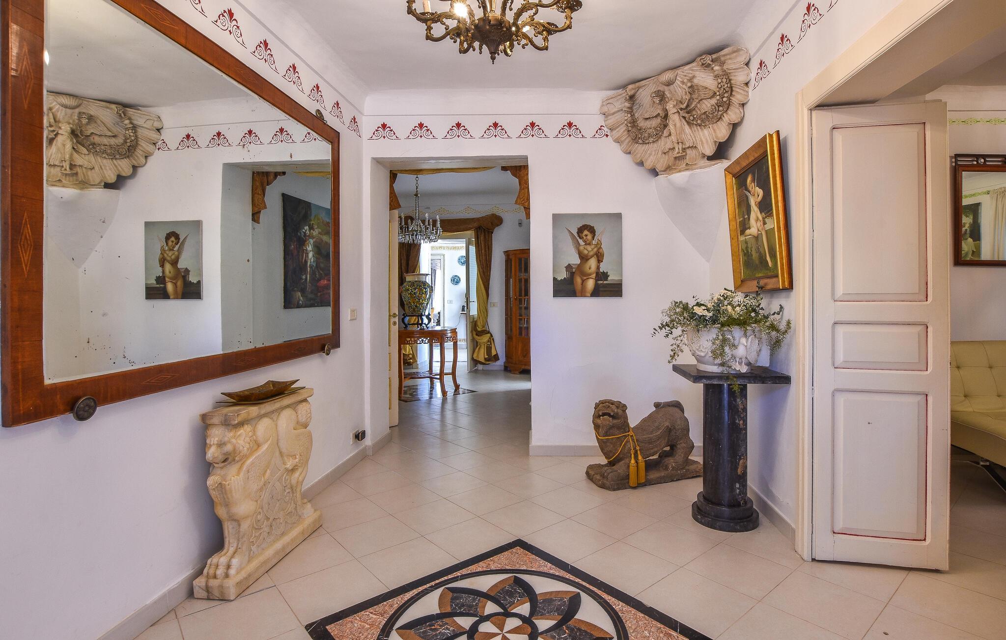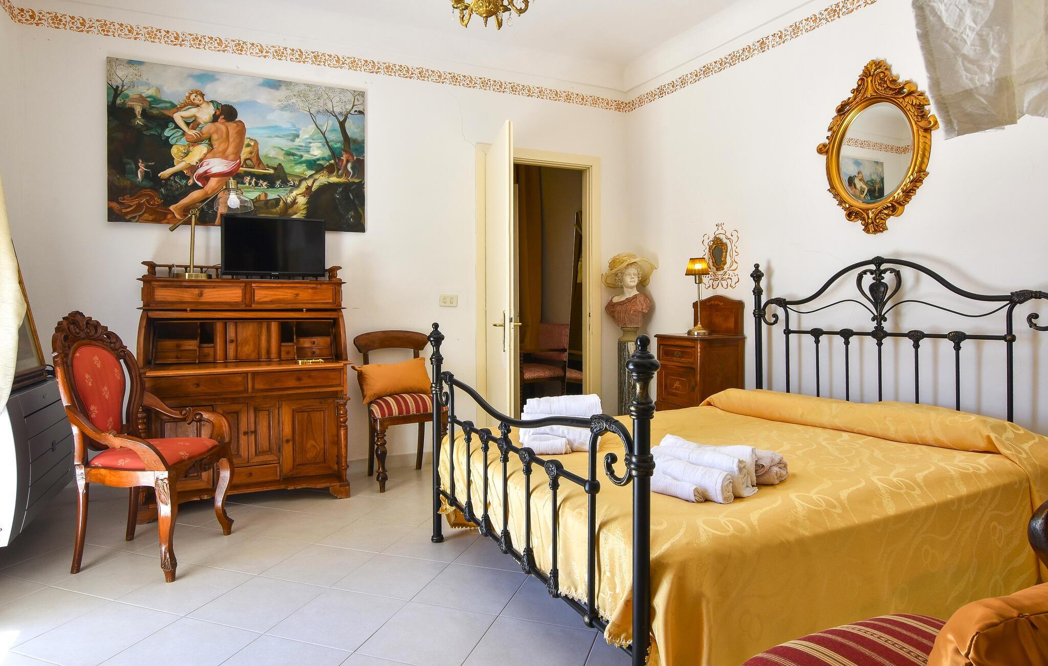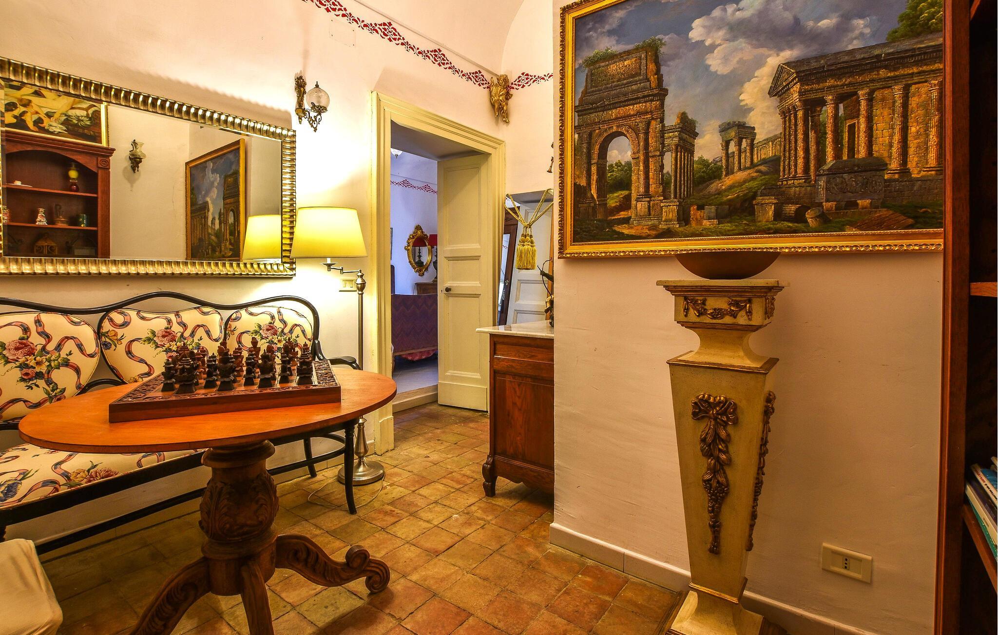 Inde i det herskabelige hus er der en elegant atmosfære med antikke møbler og charmerende detaljer, der afspejler regionens stil. Det lange spisebord lægger op til kulinariske kreationer, mens den hyggelige opholdsstue med komfortable sofaer lægger op til afslappende aftener.