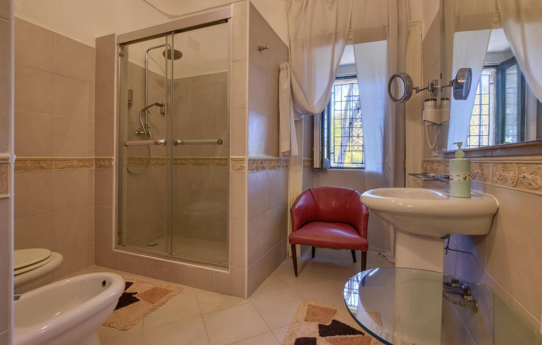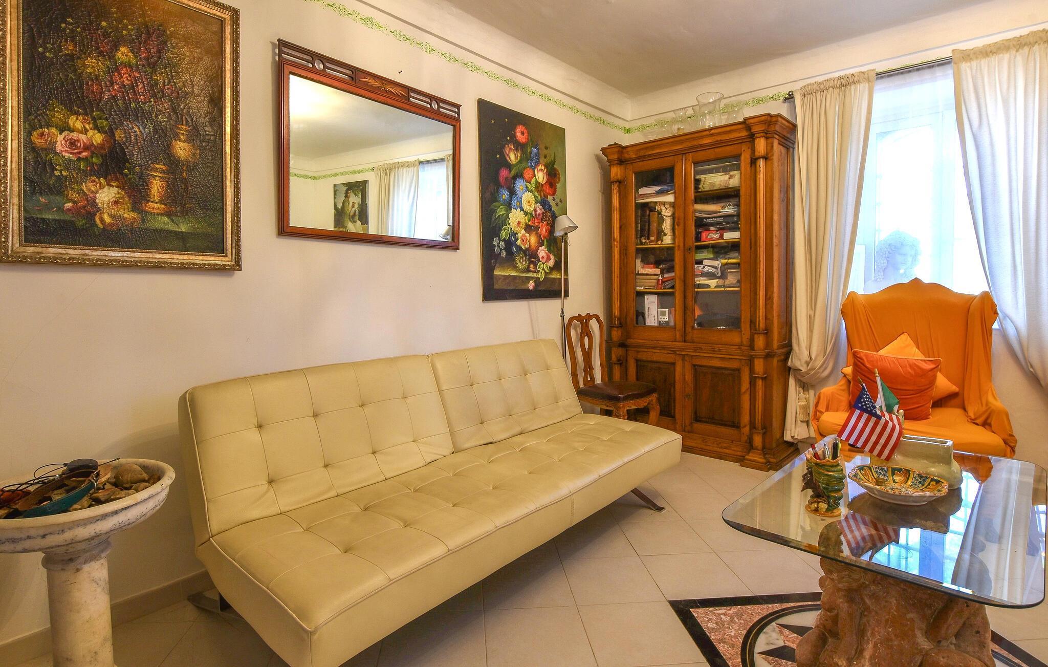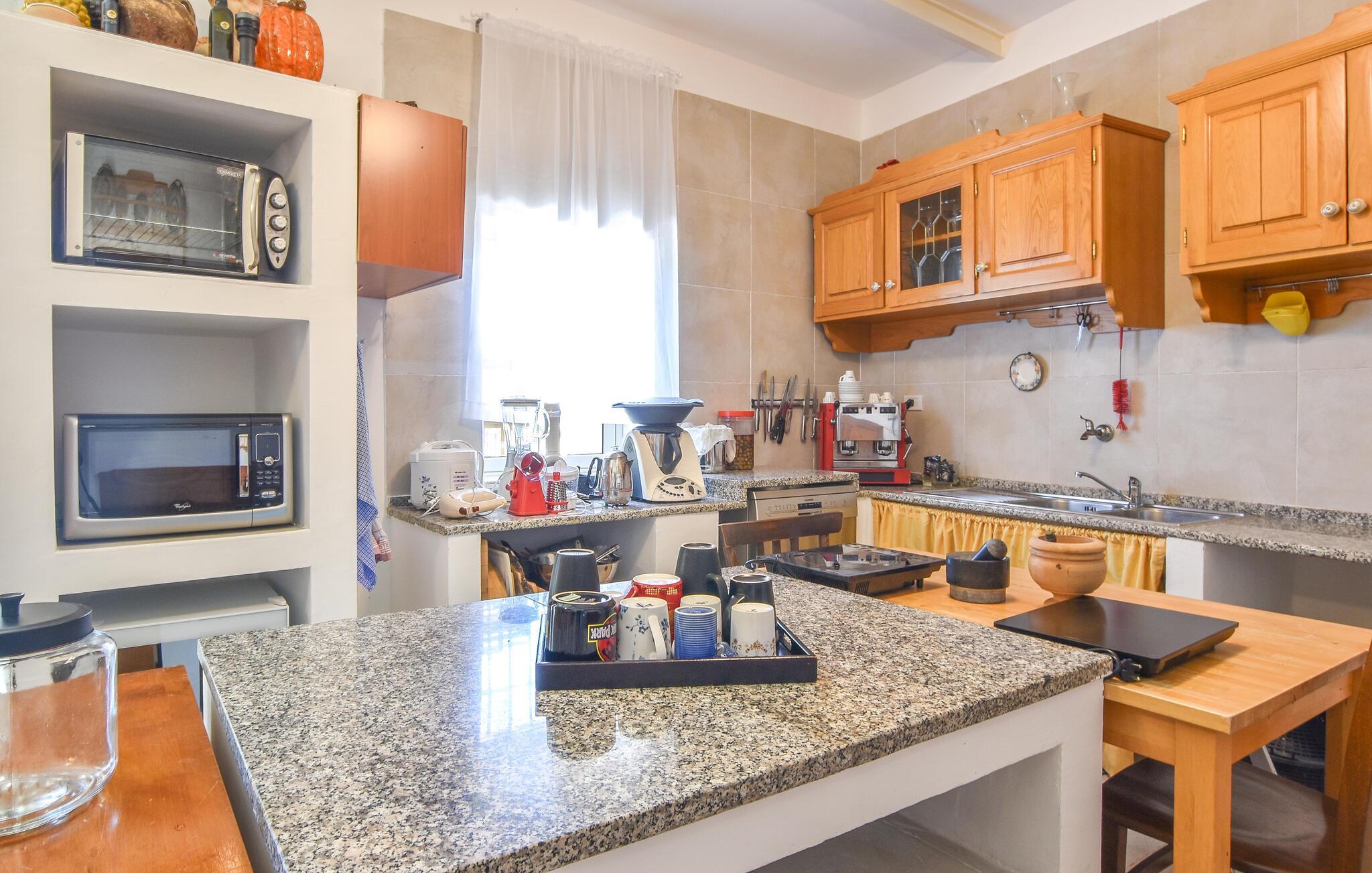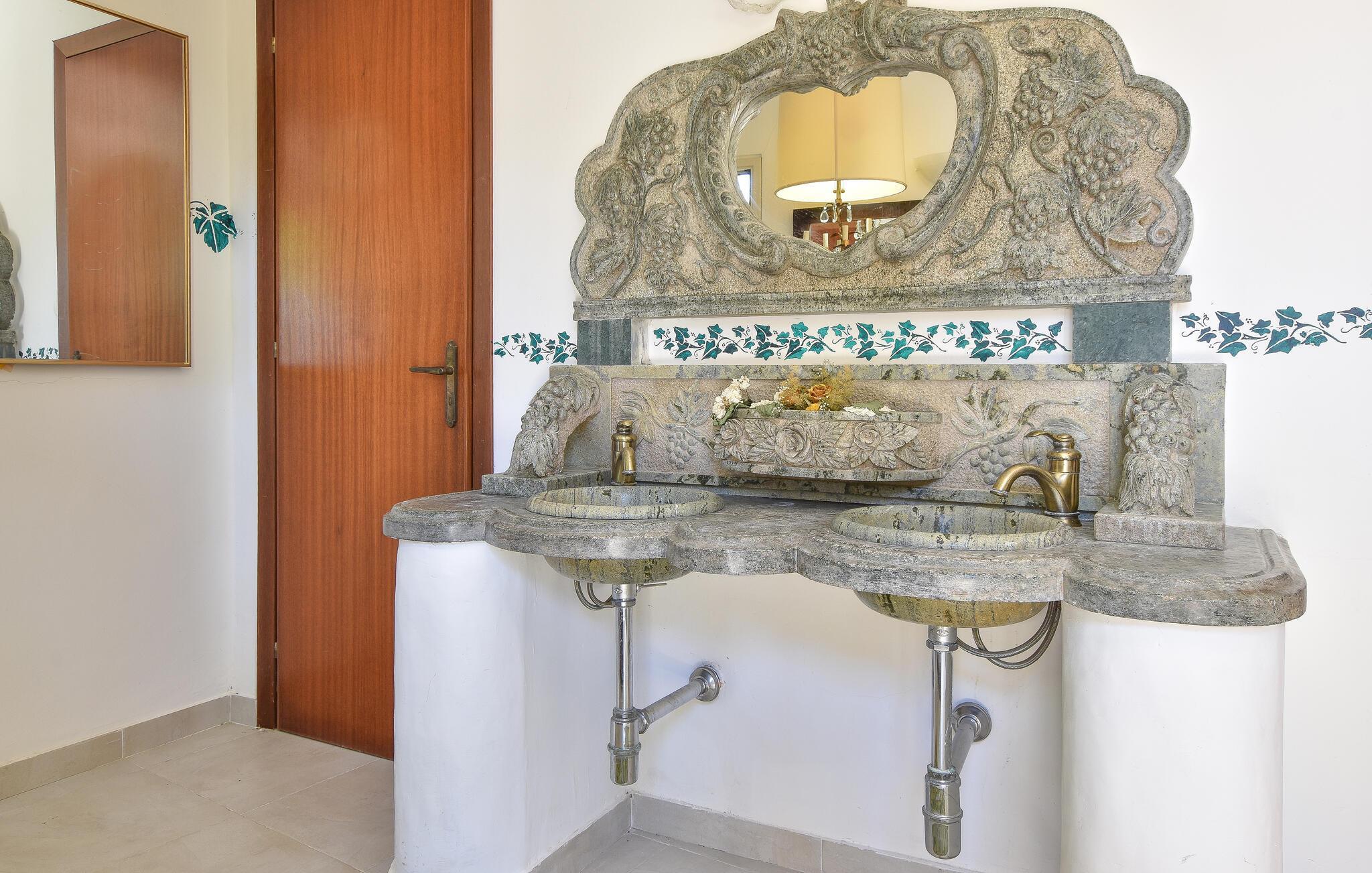 Inde i det herskabelige hus er der en elegant atmosfære med antikke møbler og charmerende detaljer, der afspejler regionens stil. Det lange spisebord lægger op til kulinariske kreationer, mens den hyggelige opholdsstue med komfortable sofaer lægger op til afslappende aftener.