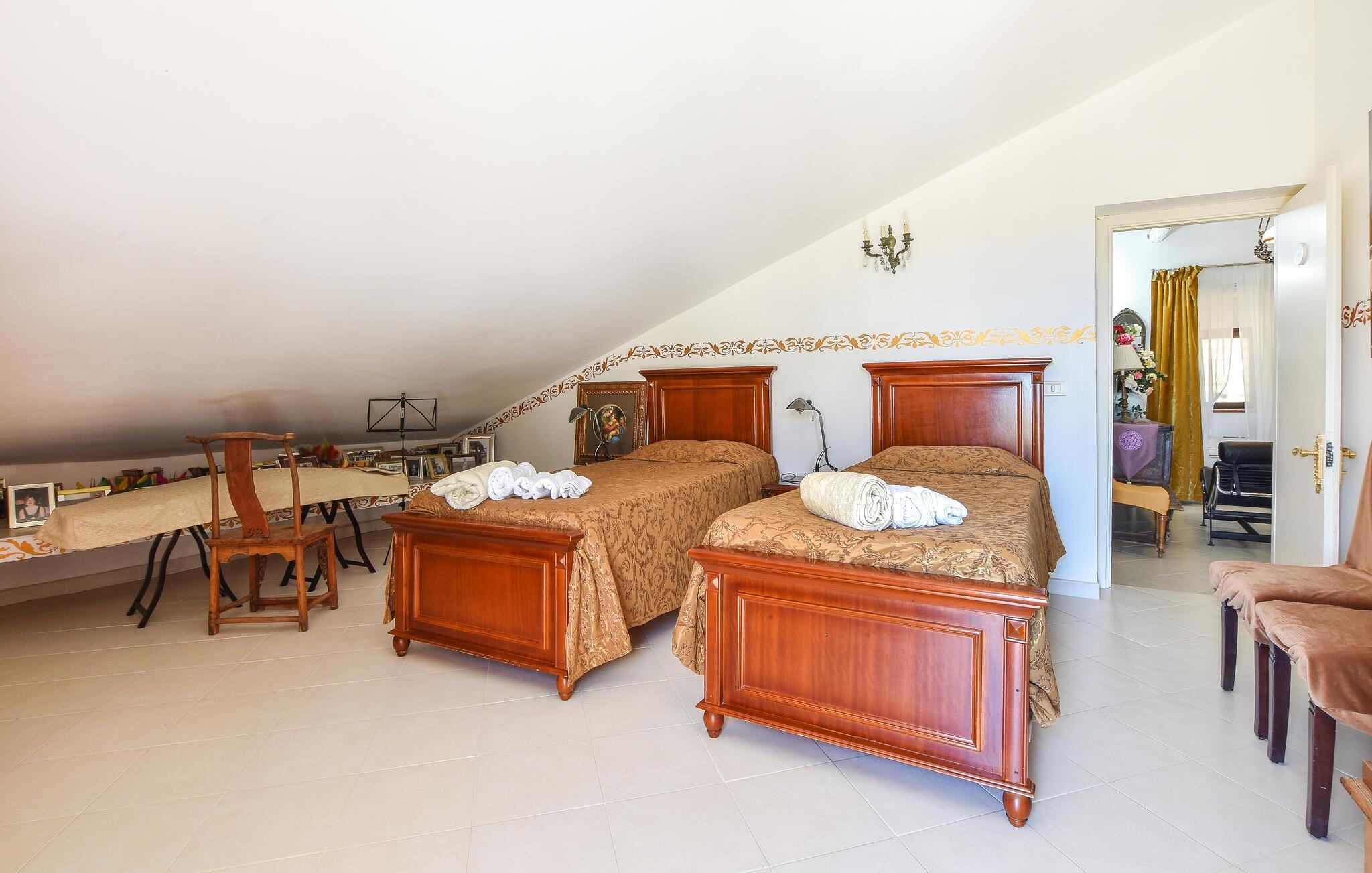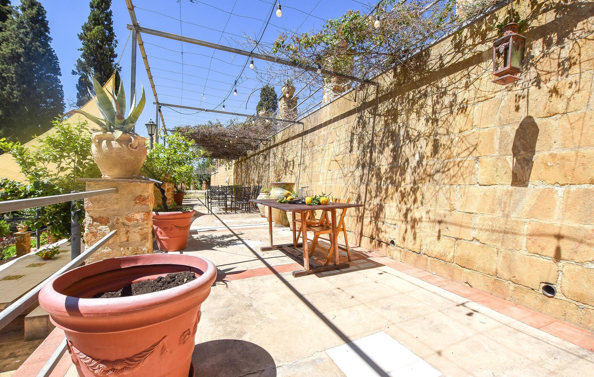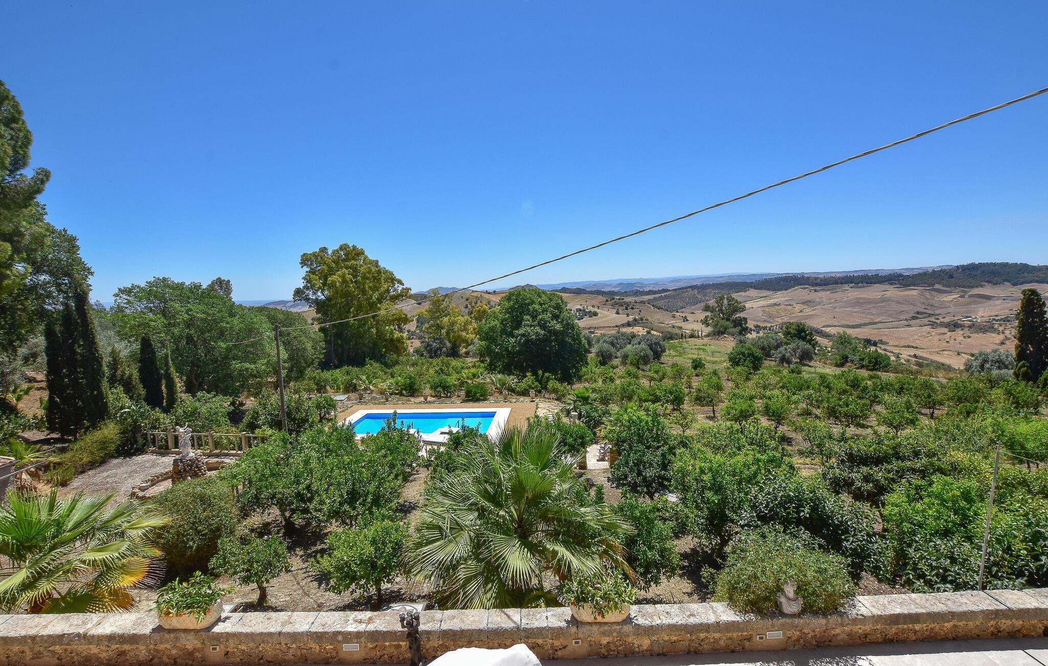 Fordyb jer i denne skønne del af Italien og glæd jer til uforglemmelige øjeblikke i Aidone. Her kan I opleve det autentiske Sicilien. Dette rummelige feriehus er noget særligt med sit store udendørsområde, hvor der er en indbydende pool ud til en frodig have og maleriske terrasser. Nyd de solrige dage ved poolen og læn jer tilbage i de komfortable loungeområder, der lægger op til rolige stunder udendørs. Dæk op til dagens måltider i skyggen på ??terrasserne.