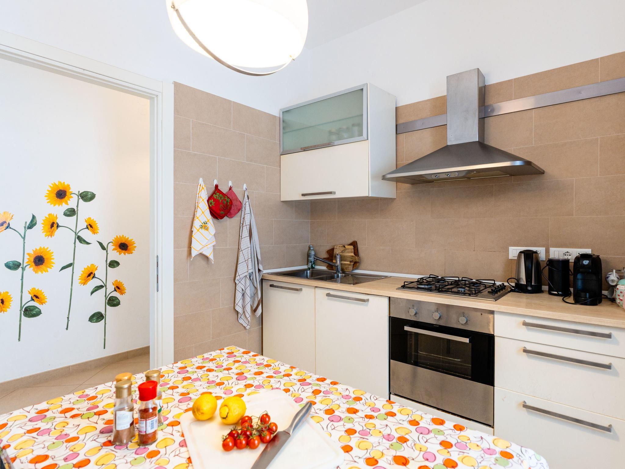 "Villa Girasole", 4-room villa 120 m2, on the ground floor. Practical and cosy furnishings: living/dining room. Exit to the garden. 1 double bedroom with 1 bed (140 cm, length 200 cm). 1 room with 2 beds (80 cm, length 200 cm). 1 double bedroom with 1 double bed (200 cm, length 200 cm). Kitchen (oven, 4 gas rings, toaster, kettle, electric coffee machine). Bath/bidet/WC, shower/bidet/WC. Gas heating. Heating available only from 01.11. to 15.04. Large garden. Terrace furniture, barbecue. View of the resort. Facilities: washing machine, baby cot for up to 2 year olds, hair dryer. Internet (WiFi, free). Parking at the house. Please note: maximum 1 pet/ dog allowed. Smoke alarm, fire extinguisher. IT009001B4SRNDGJU4