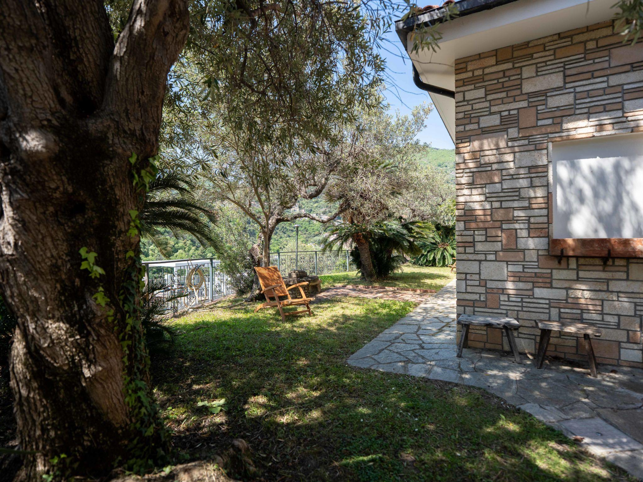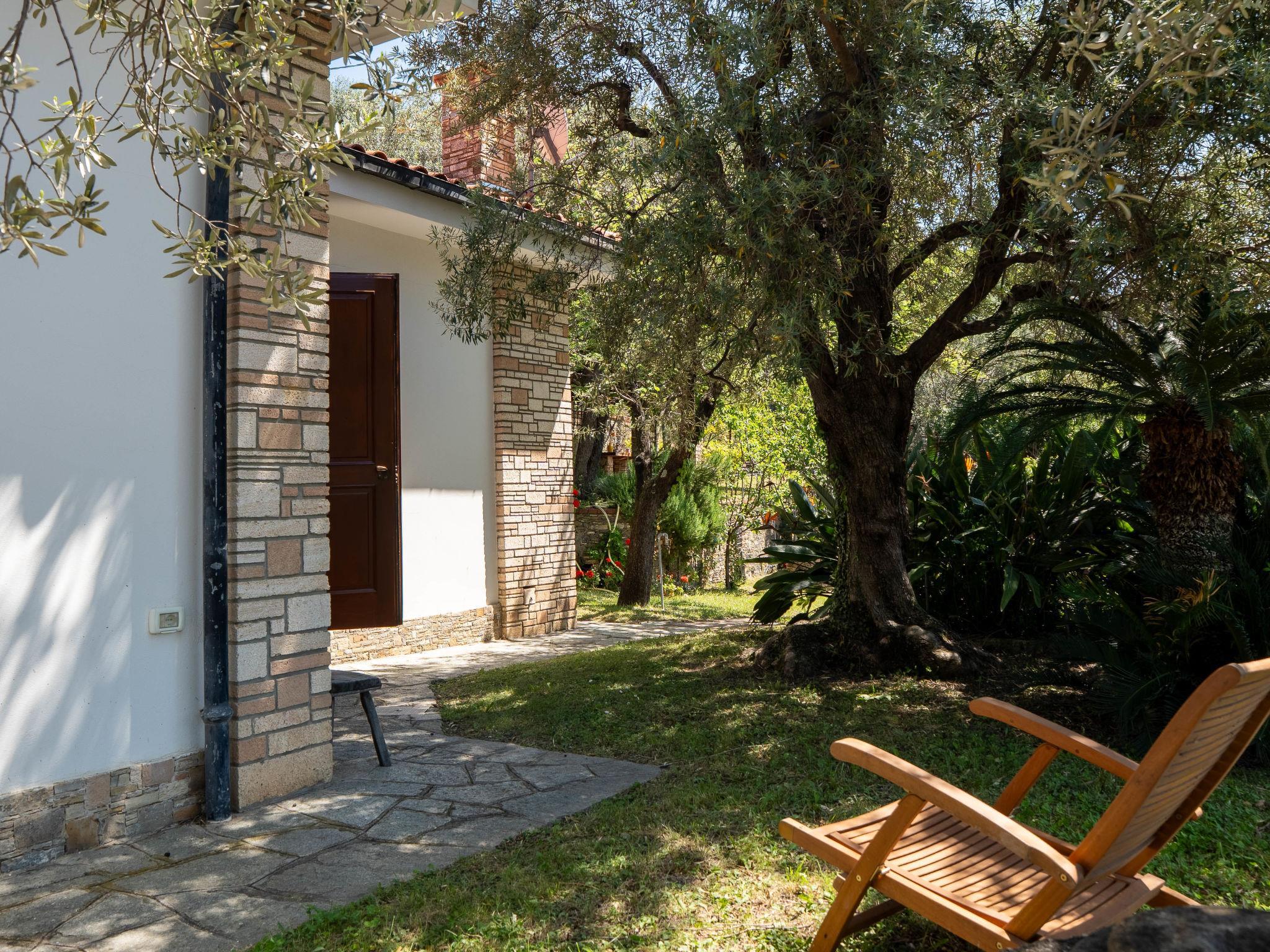 Cosy villa. 1 km from the centre of Alassio, 4 km from the centre of Laigueglia, on a slope, 1 km from the sea. Private: garden with lawn and trees. Supermarket 500 m, shopping centre 1 km, restaurant, bar, bakery 500 m, bus stop 200 m, railway station "Alassio" 1 km, sandy beach 1 km. Marina 3 km. Nearby attractions: Muretto Alassio 1 km, villa Pergola 1.4 km, Acquapark Le Caravelle 13 km.