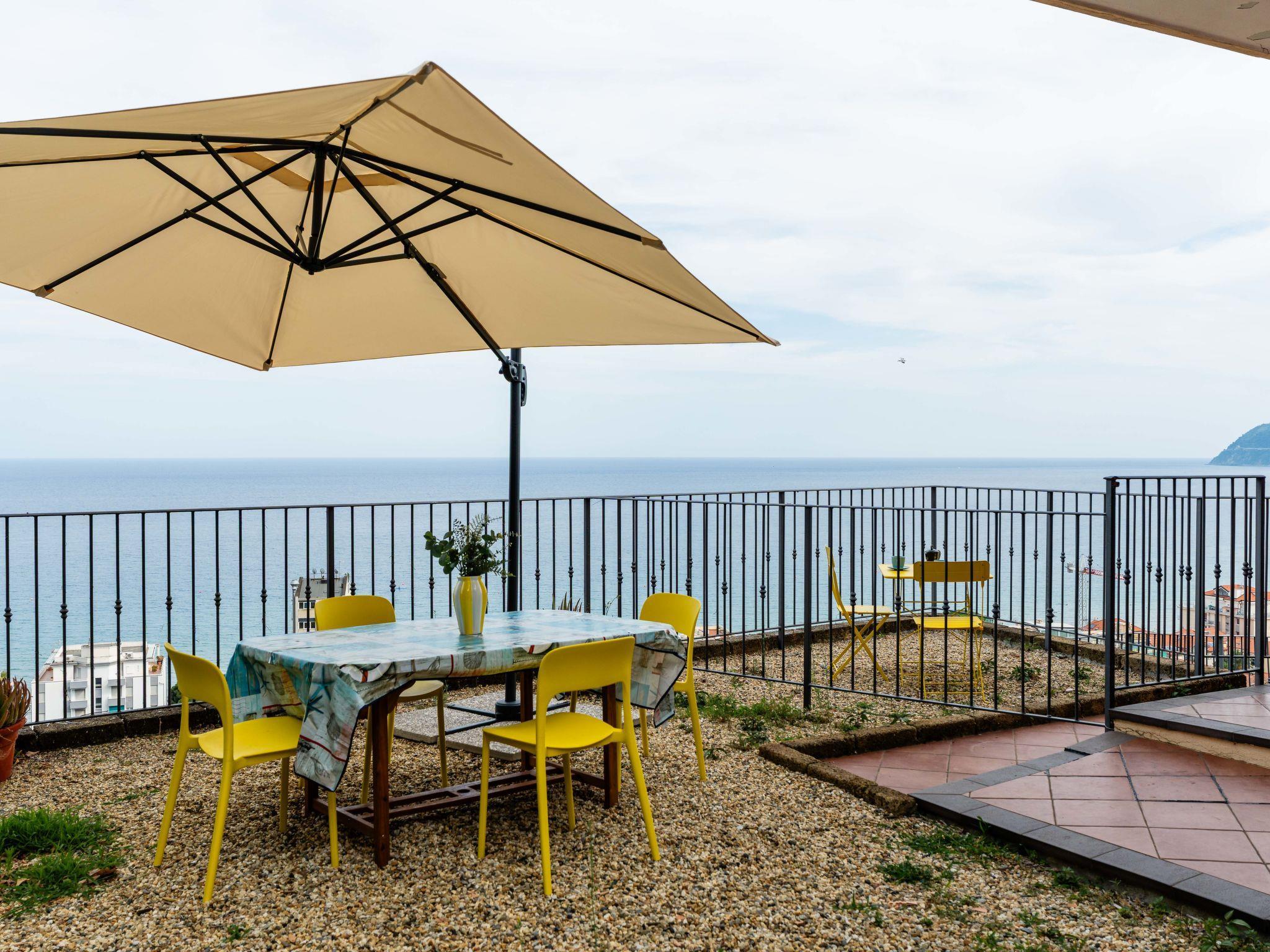 "Ginestra", 3-room apartment 75 m2, on the ground floor. Modern and tasteful furnishings: living/dining room with 1 sofabed (140 cm, length 200 cm), TV. Exit to the balcony. 1 double bedroom. 1 double bedroom. Kitchen-/living room (oven, dishwasher, 4 induction hot plates, toaster, kettle, microwave, electric coffee machine). Exit to the balcony. Shower/bidet/WC. Air-conditioning, forced-air heating. Heating available only from 01.11. to 15.04. Balcony, garden. Terrace furniture, barbecue. Very beautiful panoramic view of the sea and the resort. Facilities: washing machine, iron, baby cot for up to 2 year olds, hair dryer. Internet (WiFi, free). Parking (fenced) at the house. Please note: non-smoking house. Maximum 1 pet/ dog allowed. Private entrance, smoke alarm, fire extinguisher. IT009001C2P8V7I9RM
