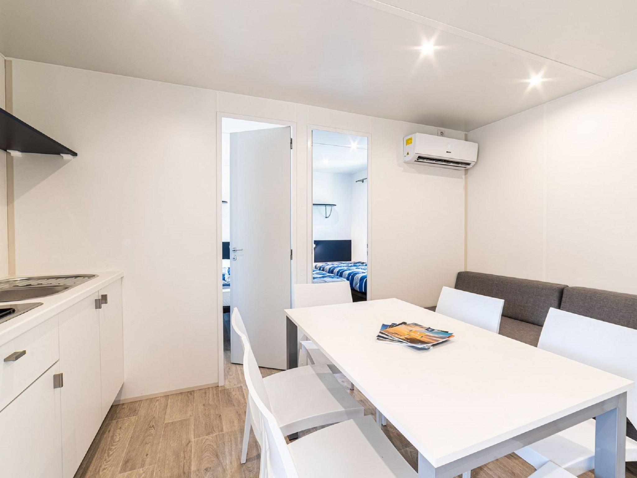 "Baia Sardinia", 4-room mobile home 32 m2. Modern furnishings: living/dining room with satellite TV. Exit to the terrace. 1 room with 1 french bed (140 cm). 2 rooms, each room with 2 beds (70 cm). (4 gas rings, freezer). Shower/WC, sep. WC. Air-conditioning, forced-air heating (extra). Terrace roofed. Terrace furniture. Facilities: hair dryer. Parking (1 car). Please note: non-smokers only. IT090003B1000F2504