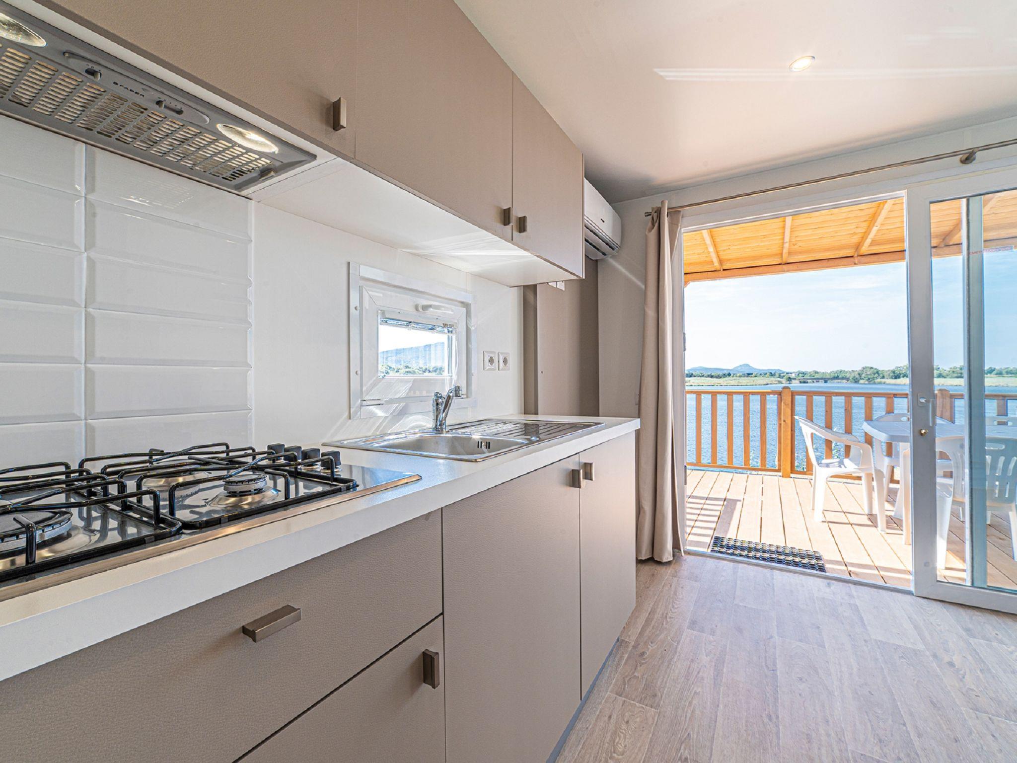 "Baia Revolution", 4-room mobile home 34 m2. Living/dining room with dining table and satellite TV. Exit to the terrace. 1 room with 1 french bed (140 cm), shower/WC. 1 room with 2 beds (70 cm). 1 room with 1 x 2 bunk beds (70 cm). Kitchenette (4 gas rings). Shower/WC. Air-conditioning, forced-air heating (extra). Terrace roofed. Terrace furniture. Facilities: hair dryer. Parking (1 car). Please note: non-smokers only. IT090003B1000F2504