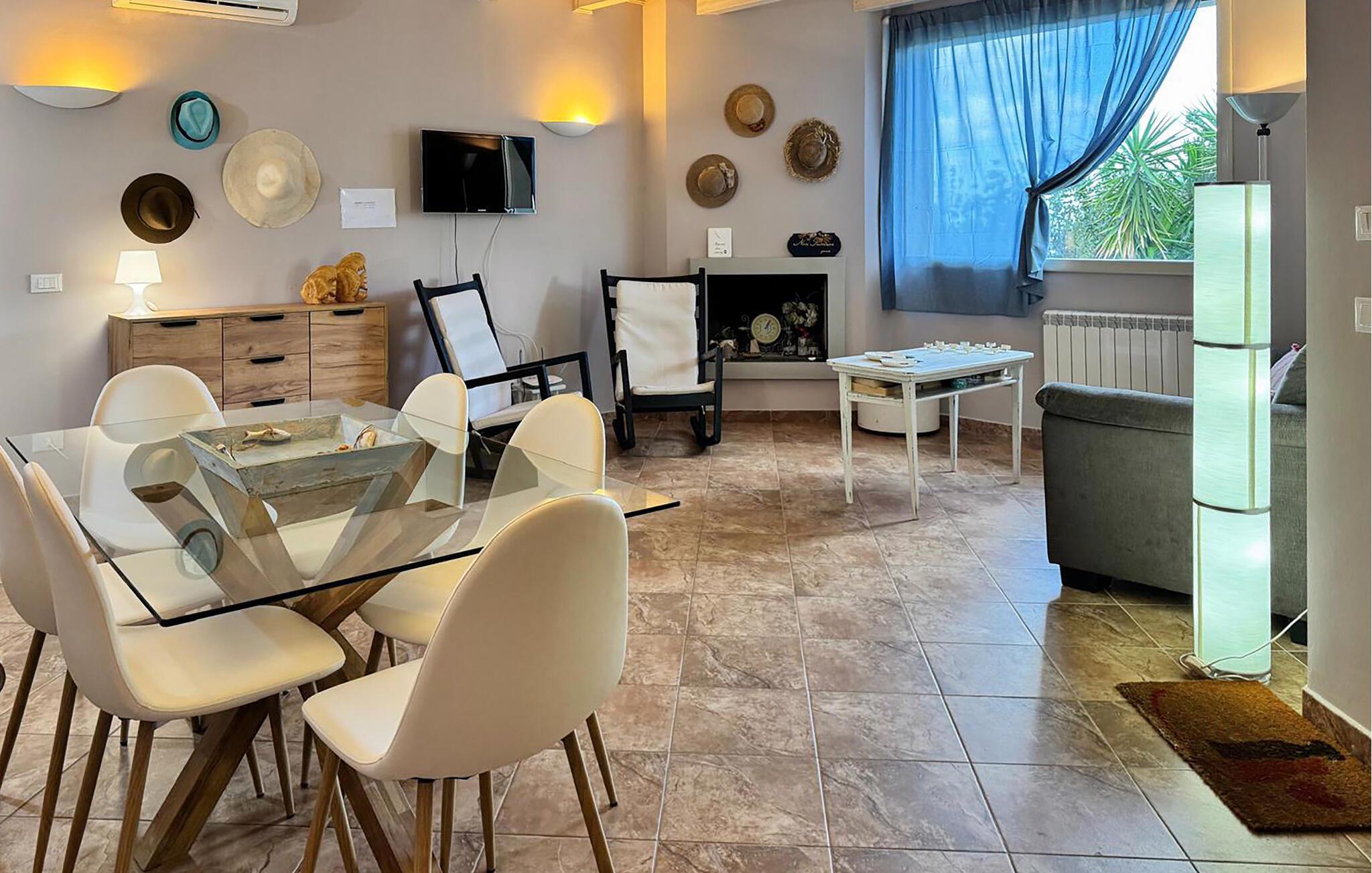 Der er ikke overladt noget til tilfældighederne i dette sicilianske hjem i Altavilla Milicia. Her vil I vil straks bemærke de mange, kærlige detaljer. Det to-etagers feriehus er ideelt til en større gruppe, der ønsker en let adgang til havet og naturen samt en hyggelig og hjemlig bolig med et skønt udeområde. Indvendigt venter jer både lyse og blå farver, der giver en skøn, maritim atmosfære. I skal bare føle jer hjemme her og slappe med madlavning og fællesspisning i en yderst behagelig indretning.