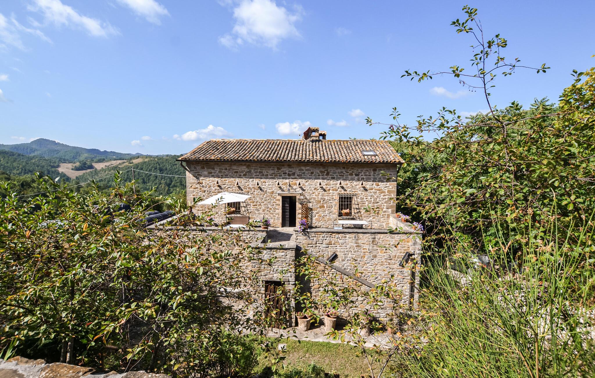 Dette rustikke landhus er bygget i natursten, har egen pool og er fordelt på tre etager. Det ligger i et roligt bakkelandskab bare 5 km fra Apecchio. Det specielle for huset er den store stue med kamin, den skønne terrasse hvor grillen står, den meget store have og poolområdet med panoramaudsigt. Ideelt hus til en afslappet ferie, I kan vandre til Monte Nerone (1.525 moh) og til udflugter til Urbino, Gubbio og Città di Castello (i en omkreds af 30-40 km). Planlæg en badedag i Pesaro eller Fano ved Adriaterhavskysten (ca. 75 km). Sidste del af vejen op til huset er en grusvej.