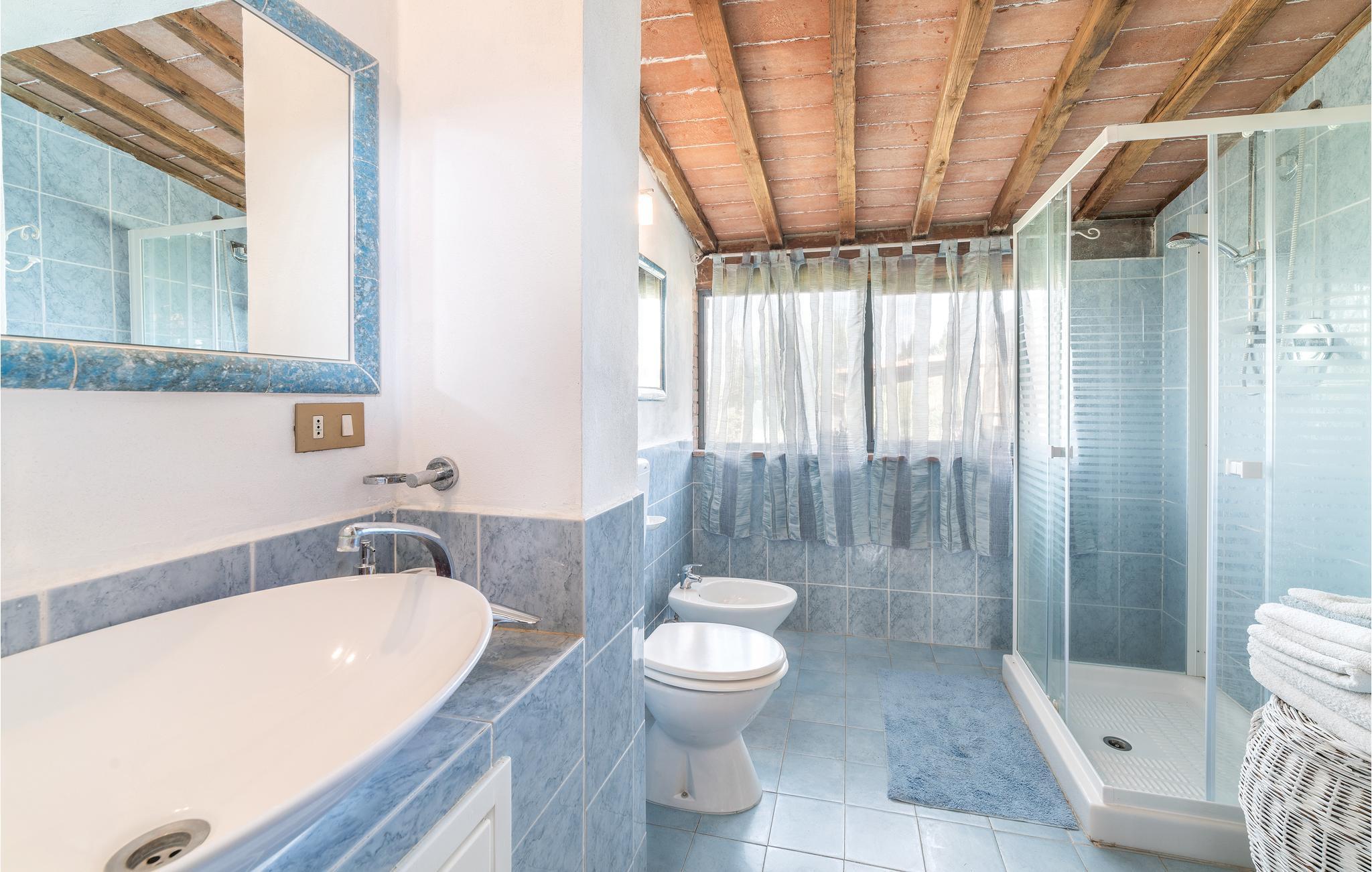 Hyggeligt feriehus på landet 6 km fra Arezzo beliggende op til pisterne i Val di Chiana. Huset er lyst og komfortabelt indrettet med flere overdækkede terrasser på en stor privat grund. Stue med pejs og køkken i stueetagen med udgang til to terrasse-siddepladser. Foran soveværelserne på 1. sal er en altan med en enestående udsigt. På grunden er der også en grill, en solrig græsplæne med liggestole, spil til børn og et springvand. I området kan I dyrke aktiviteter som trekking, cykling langs Chiana-kanalerne, ridning (3 km). I kan tage til Arezzo på ingen tid. Gå ikke til det store antikmarked hver første weekend i måneden! Til søen Trasimeno med sandstrande og små øer er der omkring 30 km. Besøg også den umbriske hovedstad Perugia (70 km). Shopping, mad og drikke og butikker af enhver art i Olmo (3 km). Huset er fordelt over to niveauer.