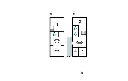 Soveværelse (nr. 2) - 1 Soveplads. (Enkeltseng(e)). 2 Sovepladser. (Dobbeltseng(e)).