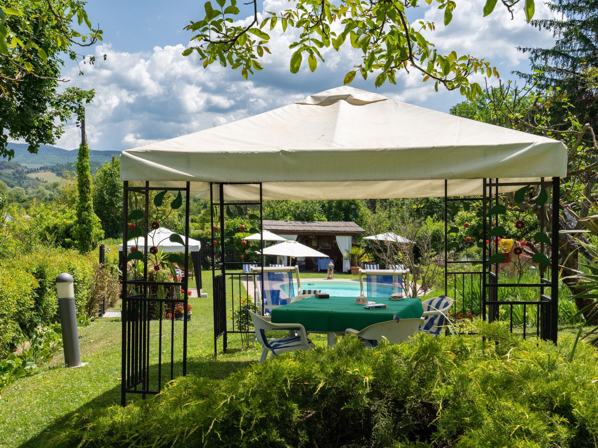 Single-family house "Cadellura". In the district of Santa Firmina 4 km from the centre of Arezzo, in a quiet position. For shared use: property 10'000 m2 (fenced), terraced garden lawn and trees, orchard, swimming pool kidney-shaped (10 x 5 m, depth 90 - 155 cm, seasonal availability: 01.May. - 30.Sep.). Outdoor shower, poolhouse with fridge, patio, garden furniture. In the house: burglar alarm system. Parking on the premises. Shop 500 m, supermarket 2 km, bus stop 500 m, railway station "Arezzo" 4 km. Please note: the owner lives on the same property.
