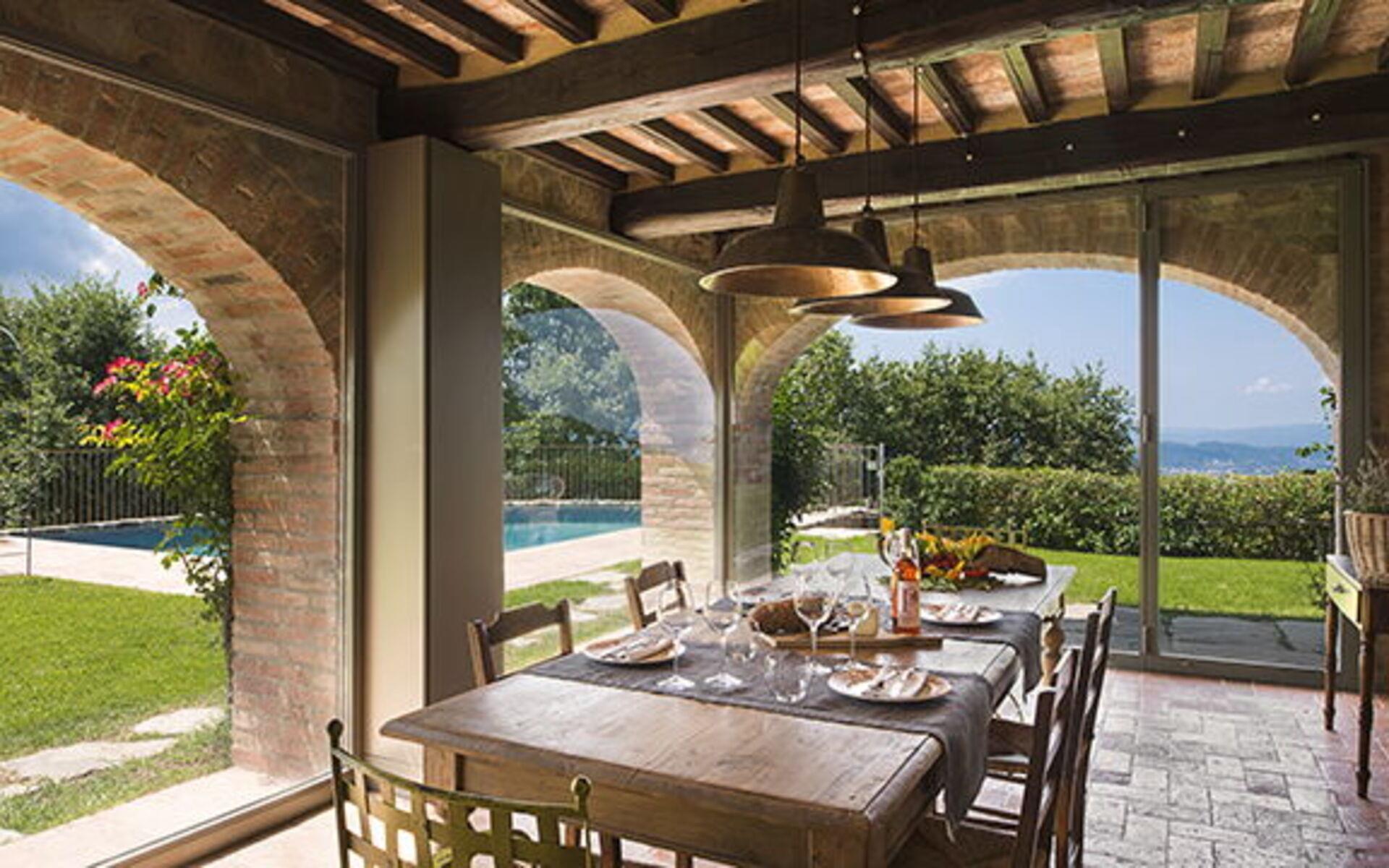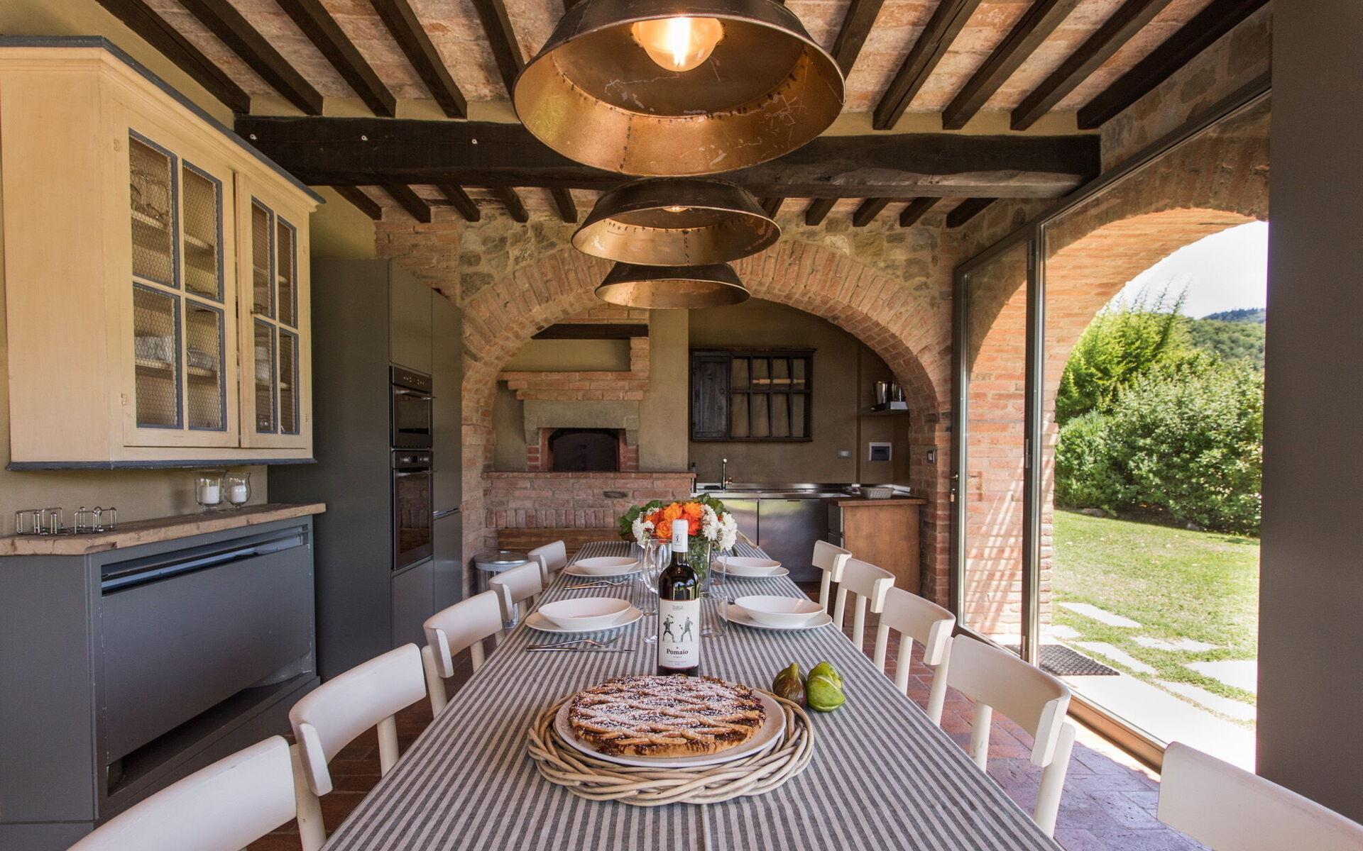Eingebettet in die grünen Hügel von Arezzo ist die Villa degli Archi der ideale Ausgangspunkt für die Entdeckung der schönsten Städte der Toskana und Umbriens. Die Villa wurde vor kurzem sorgfältig und unter Beachtung der grünen Philosophie renoviert und mit modernem Design ausgestattet, wobei die traditionelle Architektur des Ortes respektiert wurde. Der Garten umgibt die Villa auf drei Seiten und ist von Pflanzen und natürlichen Barrieren umgeben, während rund um die Villa die Weinberge des biologischen Weinguts liegen, zu dem die Struktur gehört. Das schöne Schwimmbad befindet sich im Garten vor der Villa, direkt vor dem Esszimmer, einer Umgebung, die in einer geschlossenen Loggia mit einem Esstisch und Blick auf das Tal mit Blick auf die Stadt Arezzo geschaffen wurde. Das Schwimmbad hat Liegestühle und Sonnenschirme, wo Sie Ihre entspannenden Momente an der frischen Luft verbringen können. Eine schöne Pergola, ein Grill und ein Privatparkplatz vervollständigen den Außenbereich. Im Inneren des Anwesens gibt es Fitness-Pfade für Spaziergänge in der Natur. Eingebettet in die grünen Hügel von Arezzo ist die Villa degli Archi der ideale Ausgangspunkt für die Entdeckung der schönsten Städte der Toskana und Umbriens. Die Villa wurde vor kurzem sorgfältig und unter Beachtung der grünen Philosophie renoviert und mit modernem Design ausgestattet, wobei die traditionelle Architektur des Ortes respektiert wurde.