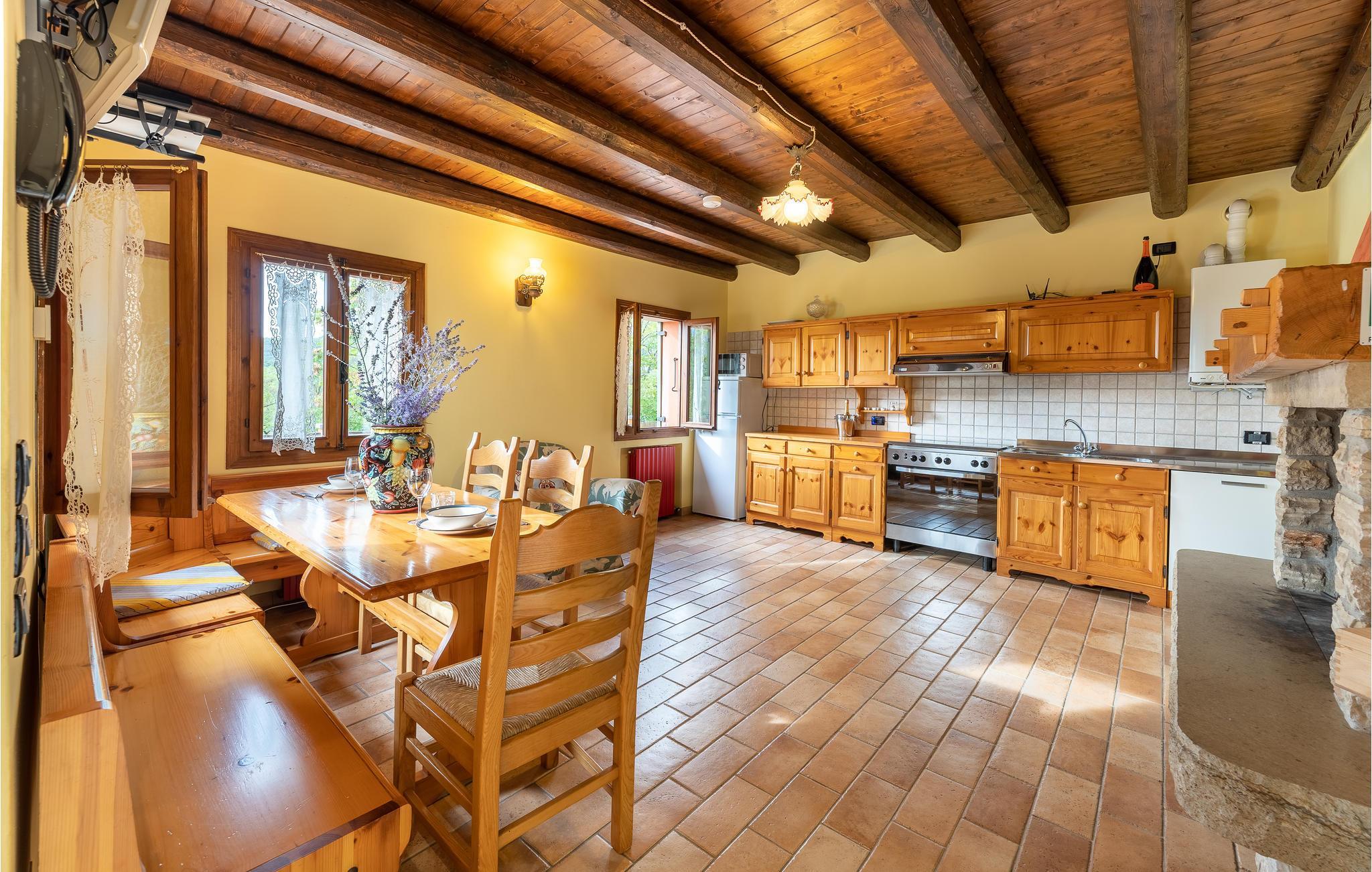 Et område, hvor I kan besøge talrige venezianske villaer. I nærheden af huset er der kurbade, cykelstier og golfbaner. Mellem oplevelserne kan I slappe af i haven og nyde privatlivet i fulde drag, blandt blomster og urtebuske. En lille swimmingpool (1,30 x 1,30; højde: 30 cm) er tilgængelig for børn. Grunden er indhegnet af elhegn for at holde vilde dyr ude. Selve huset består af to etager, som er forbundet af trætrapper.