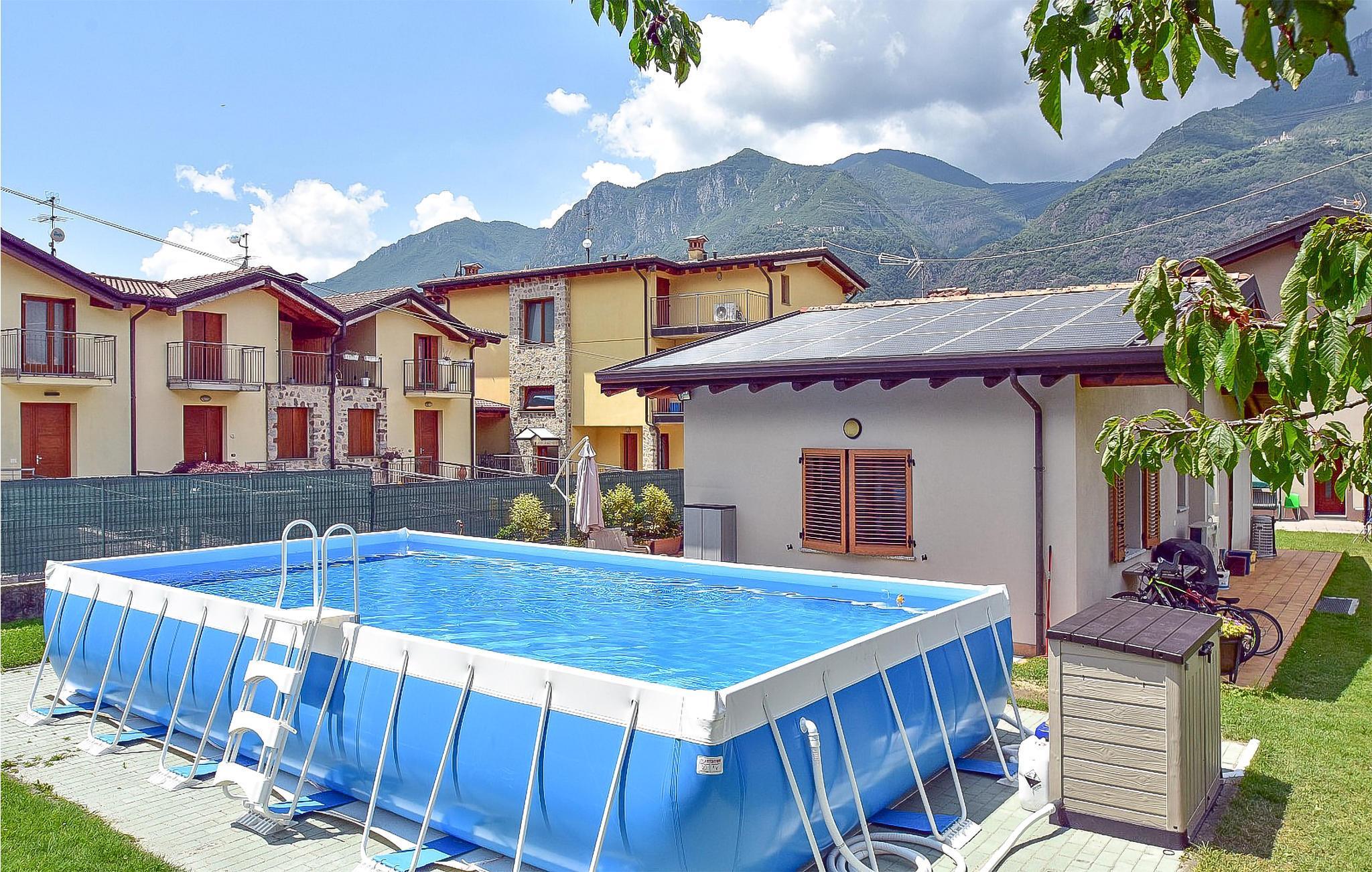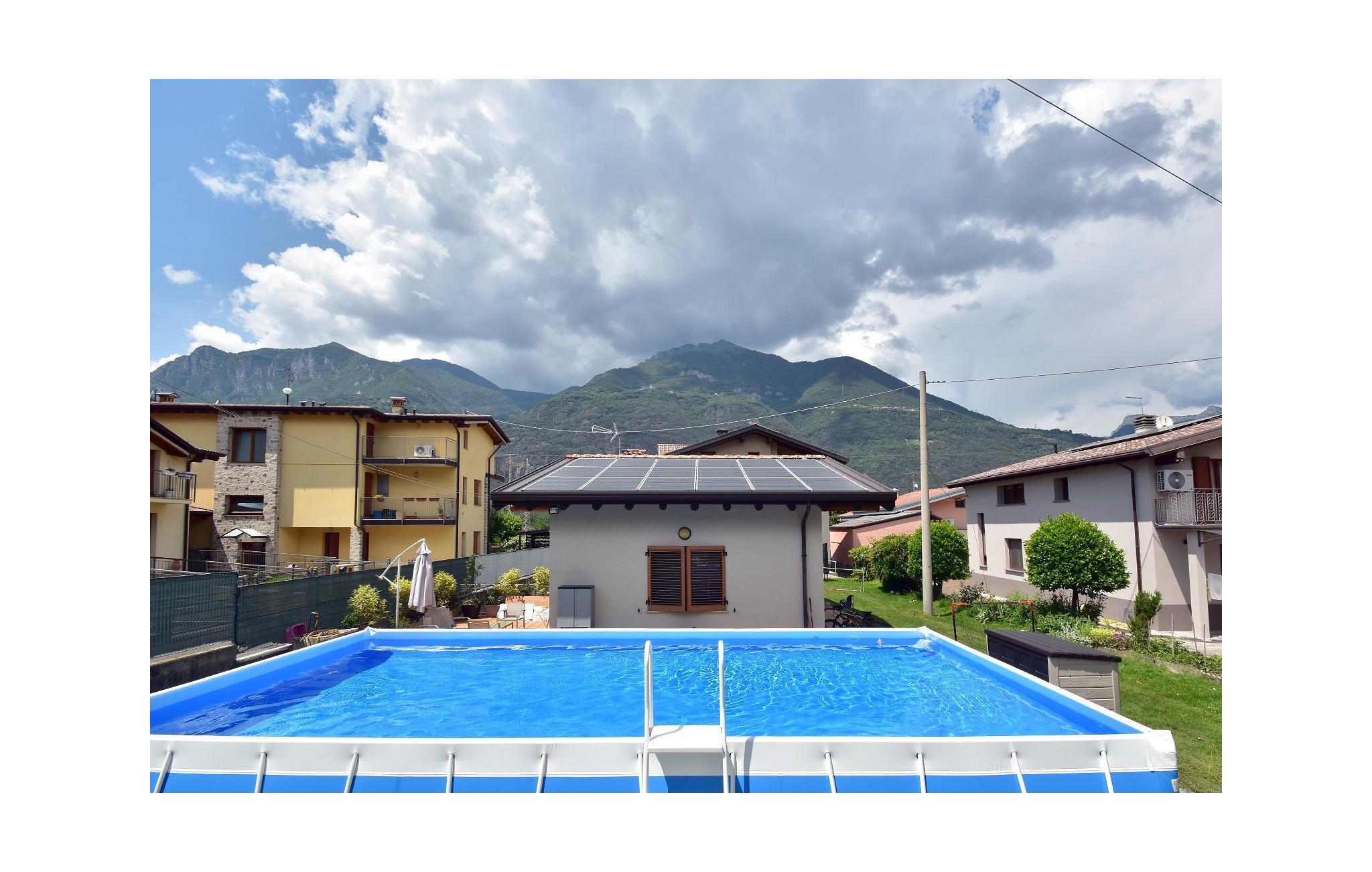Huset ligger i Artogne, en lille by i hjertet af Val Camonica, ca. 8 km fra Iseosøen. Indkvarteringen består af et køkken, badeværelse med bruser, soveværelse i to niveauer med en dobbeltseng og en enkeltseng i det øverste område samt en dobbelt sovesofa i det nederste område. Fra fronten af ??huset er der et smukt overdækket udekøkken med træmøbler og en pejs. For børn er der et legeområde med et legehus, trampolin og bordfodbold. På den anden side af huset er svømmebassinet, der står på jorden, hvor I kan svømme eller bare ligge på en måtte og sole jer. Herfra kan I nyde den vidunderlige panoramaudsigt over Sebino-parken, der med sine 7768 ha skov er det ideelle sted at vandre.
