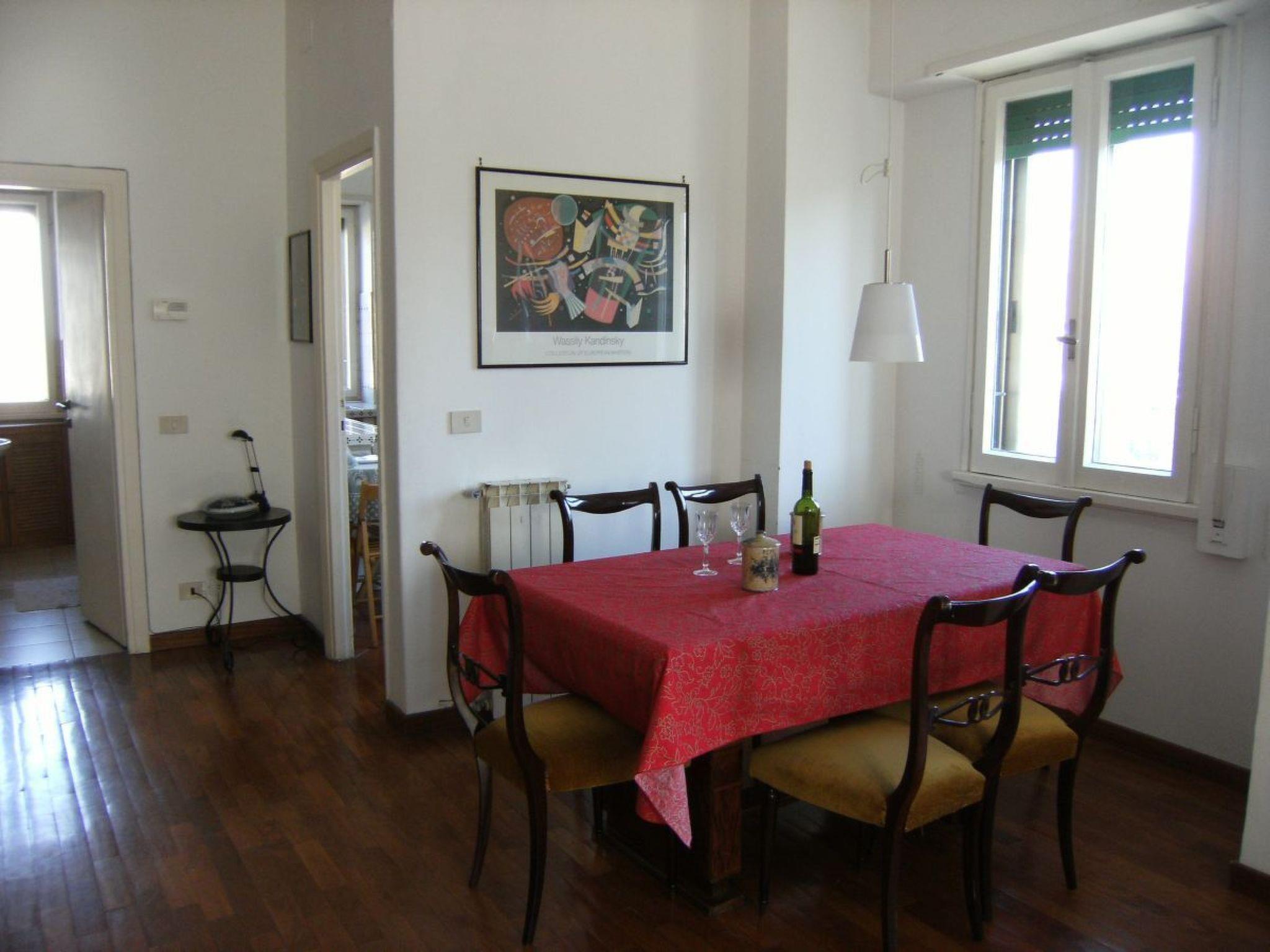 The quiet and light-flooded flat (approx. 75 sqm) with windows on 3 sides is located on the 4th floor (a new lift has been available since 2011!) of a small apartment building and is attractively furnished: large living/dining room with access to the terrace, large satelliteTV, dvd player, ceiling fan, new double sofa bed, another 3-seater couch and 2 armchairs, large bedroom with ceiling fan, kitchen (***) with dishwasher and washing machine, view of S. Pietro and exit to terrace, bathroom (with bathtub, hairdryer). The furnishings are good and very well maintained, beautiful parquet floors, central heating (gas).