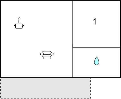 Opholdsstue/køkken - 2 Sovepladser. (Sofa, madras eller lignende).