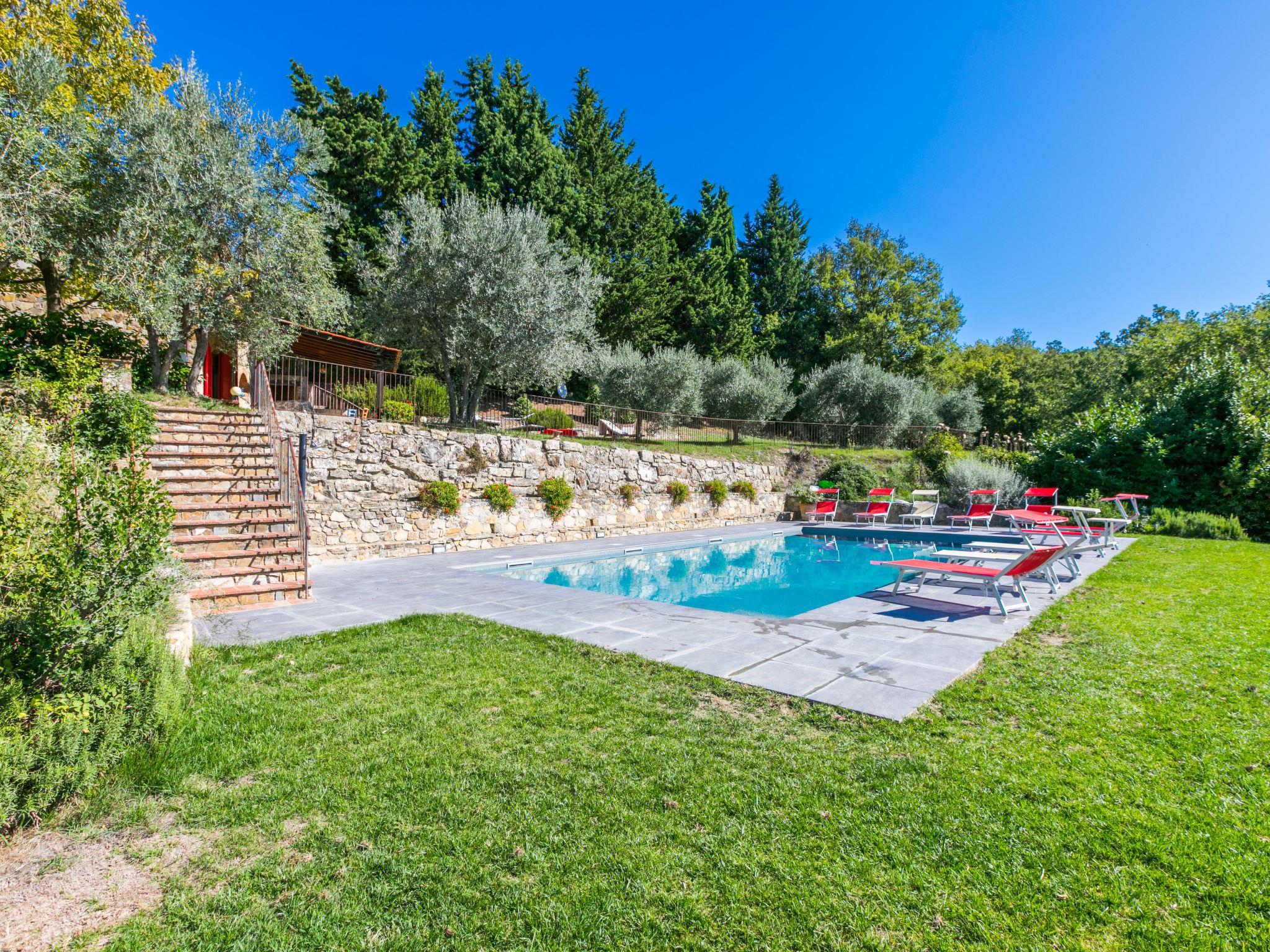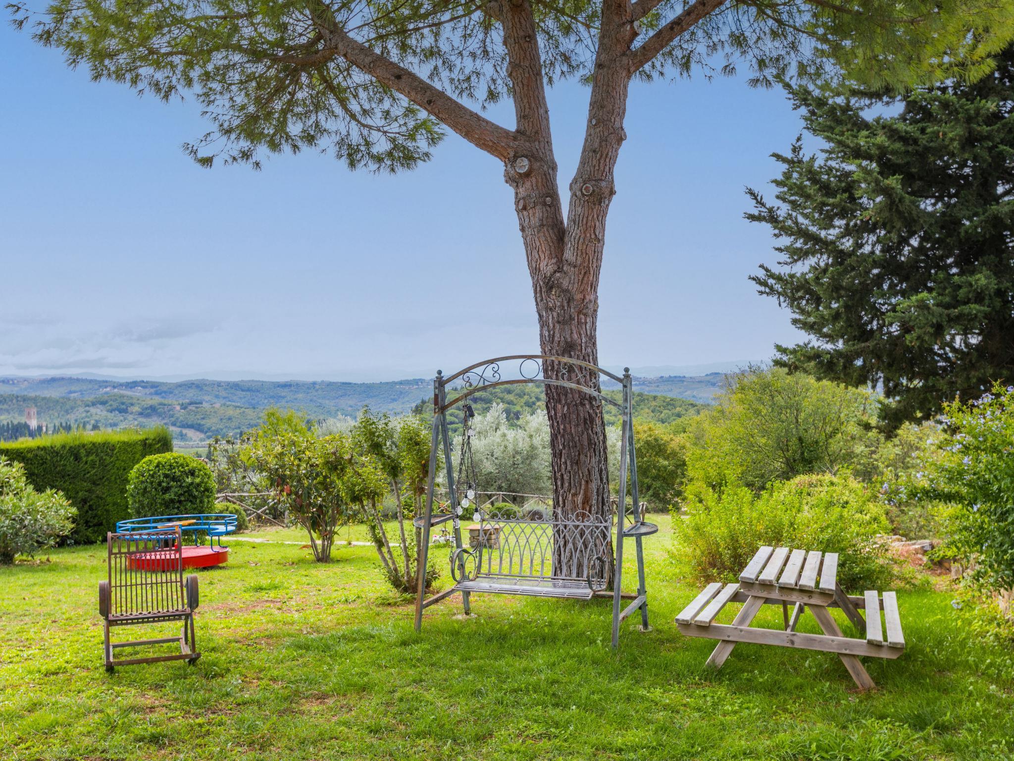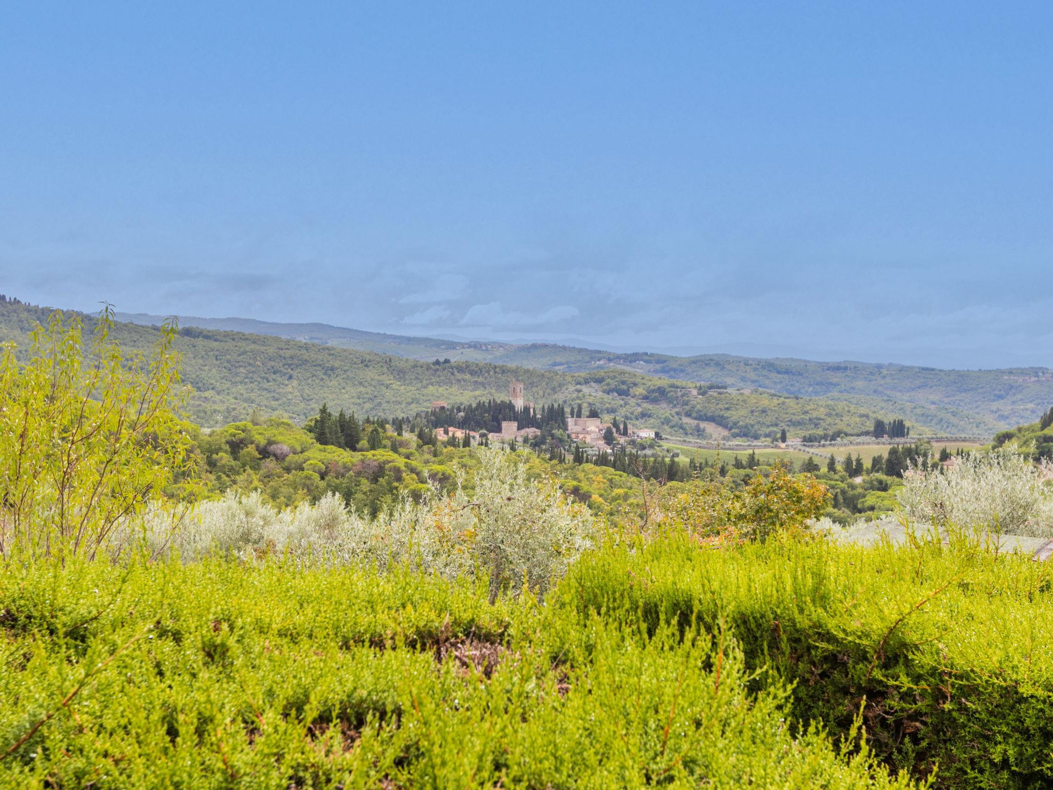 The structure presented by us is located in a strategic position, with a wonderful view of the Abbey of Badia a Passignano and the Chianti hills. Ideal place to discover the typical villages of Chianti and their cities of art. Beautiful, cosy country house "Badia a Passignano", surrounded by vineyards. Above Badia a Passignano 10 km from the centre of San Donato in Poggio, 30 km from the centre of Firenze, 40 km from the centre of Siena, in a quiet, sunny position on top of a hill, in the countryside. For shared use: garden with plants and trees, swimming pool (6 x 12 m, seasonal availability: 12.Apr. - 25.Oct. pool opening hours: 08:00-21:00) with salt-electrolysis pool-cleaning system. Outdoor shower, garden furniture, barbecue, children's playground. In the house: internet access, central heating system, washing machine, heating available only from 01.Nov. - 15.Apr.. Cook on request. 1 km long motor access (via unmade road). Parking on the premises. E-charging station. Shop 2 km, grocery 2 km, supermarket 4 km, restaurant 2 km, bar 2 km, bus stop 2 km. Golf course (18 hole) 15 km, riding stable 2 km. Nearby attractions: Tavarnelle Val di Pesa 10 km, Barberino Val D'Elsa 12 km, Greve in Chianti 16 km, Castellina in Chianti 20 km, Radda in Chianti 21 km, San Gimingnano 32 km. Please note: the owner lives on the same property. Additional accommodations can be booked.