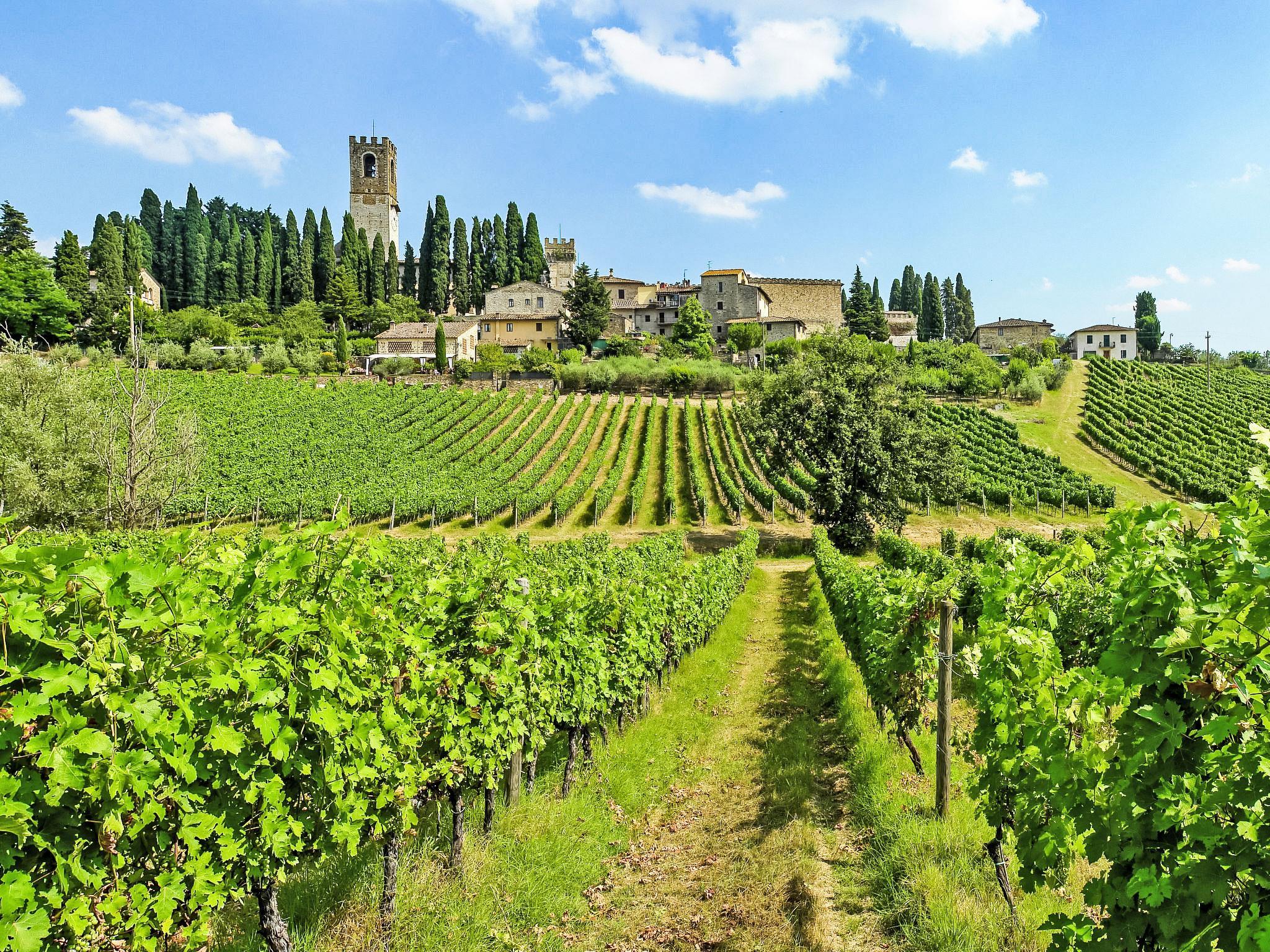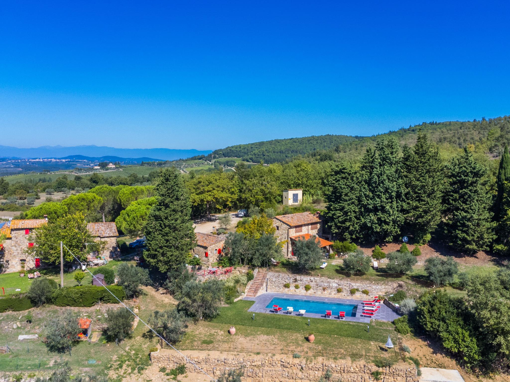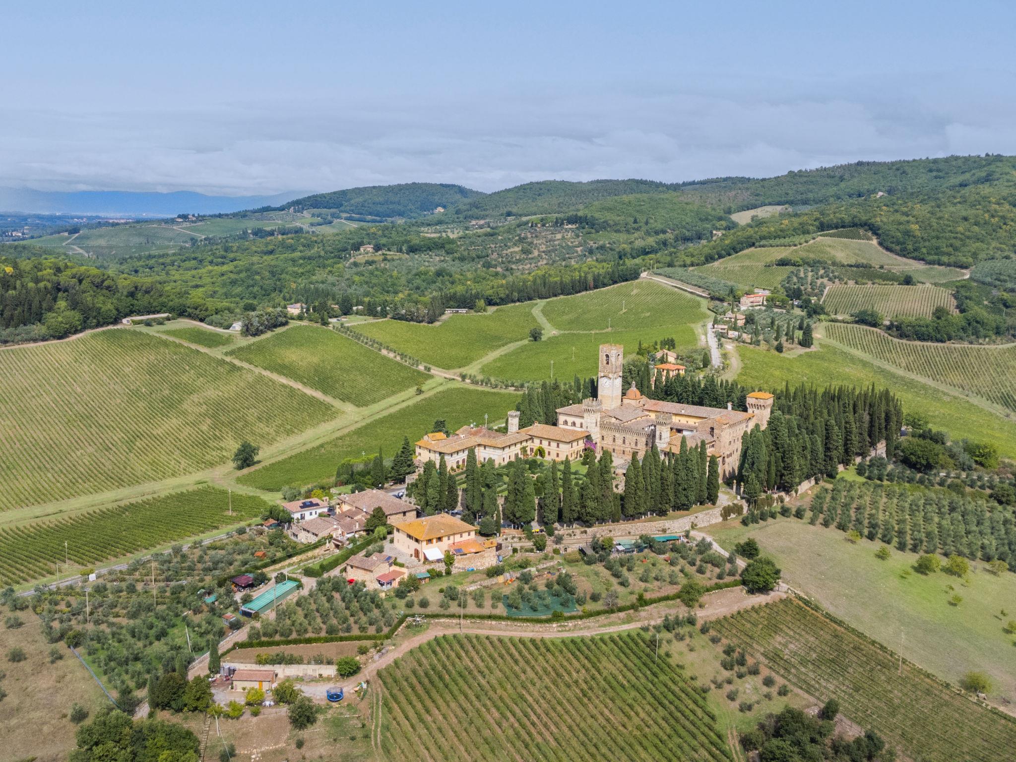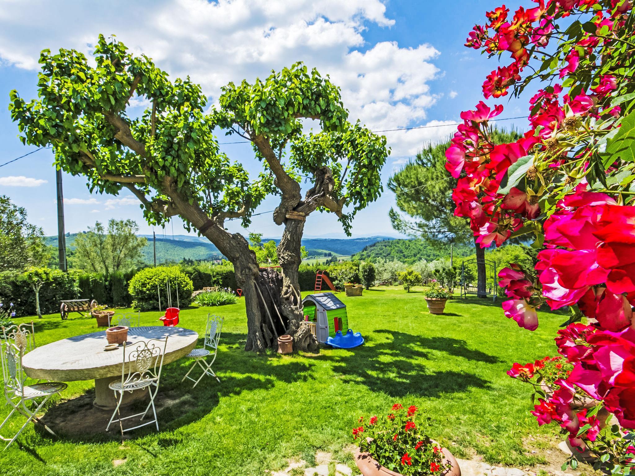 The structure presented by us is located in a strategic position, with a wonderful view of the Abbey of Badia a Passignano and the Chianti hills. Ideal place to discover the typical villages of Chianti and their cities of art. Beautiful, cosy country house "Badia a Passignano", surrounded by vineyards. Above Badia a Passignano 10 km from the centre of San Donato in Poggio, 30 km from the centre of Firenze, 40 km from the centre of Siena, in a quiet, sunny position on top of a hill, in the countryside. For shared use: garden with plants and trees, swimming pool (6 x 12 m, seasonal availability: 12.Apr. - 25.Oct. pool opening hours: 08:00-21:00) with salt-electrolysis pool-cleaning system. Outdoor shower, garden furniture, barbecue, children's playground. In the house: internet access, central heating system, washing machine, heating available only from 01.Nov. - 15.Apr.. Cook on request. 1 km long motor access (via unmade road). Parking on the premises. E-charging station. Shop 2 km, grocery 2 km, supermarket 4 km, restaurant 2 km, bar 2 km, bus stop 2 km. Golf course (18 hole) 15 km, riding stable 2 km. Nearby attractions: Tavarnelle Val di Pesa 10 km, Barberino Val D'Elsa 12 km, Greve in Chianti 16 km, Castellina in Chianti 20 km, Radda in Chianti 21 km, San Gimingnano 32 km. Please note: the owner lives on the same property. Additional accommodations can be booked.