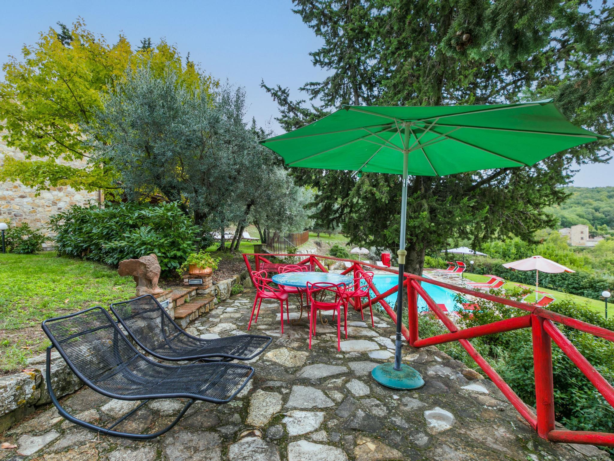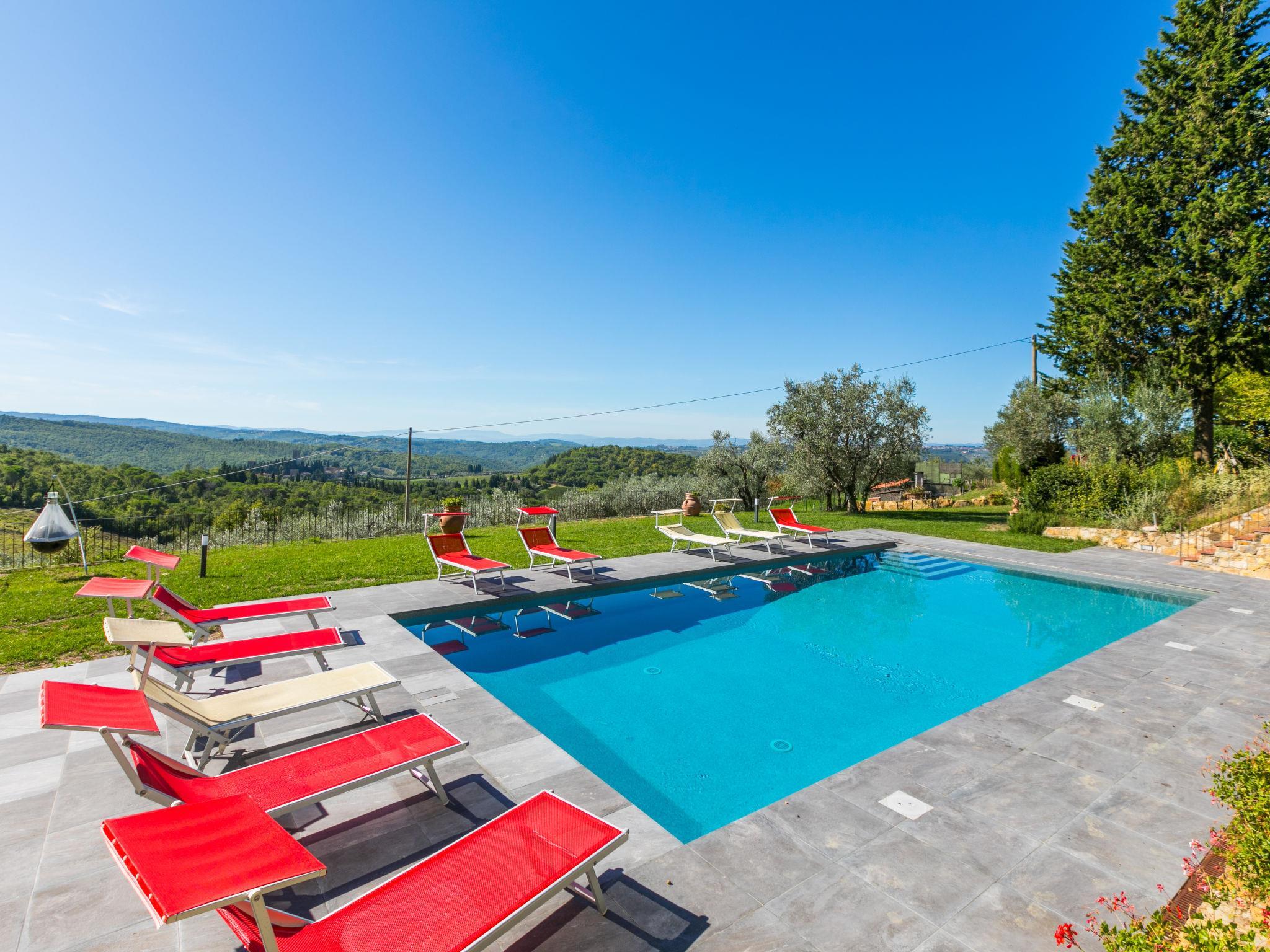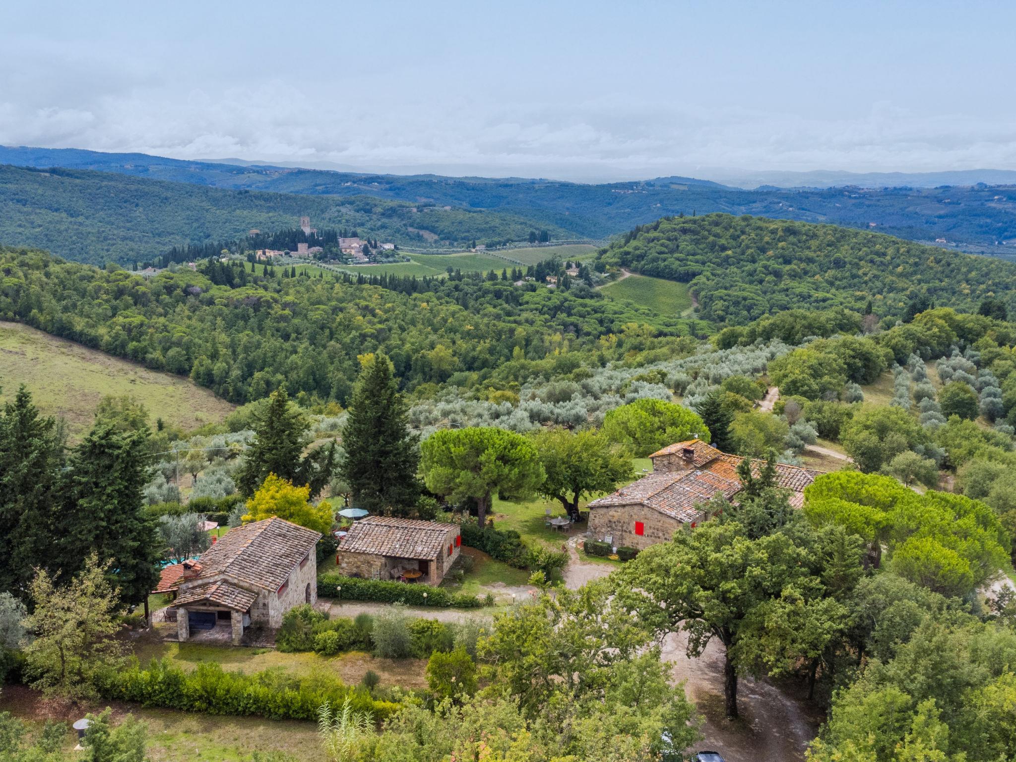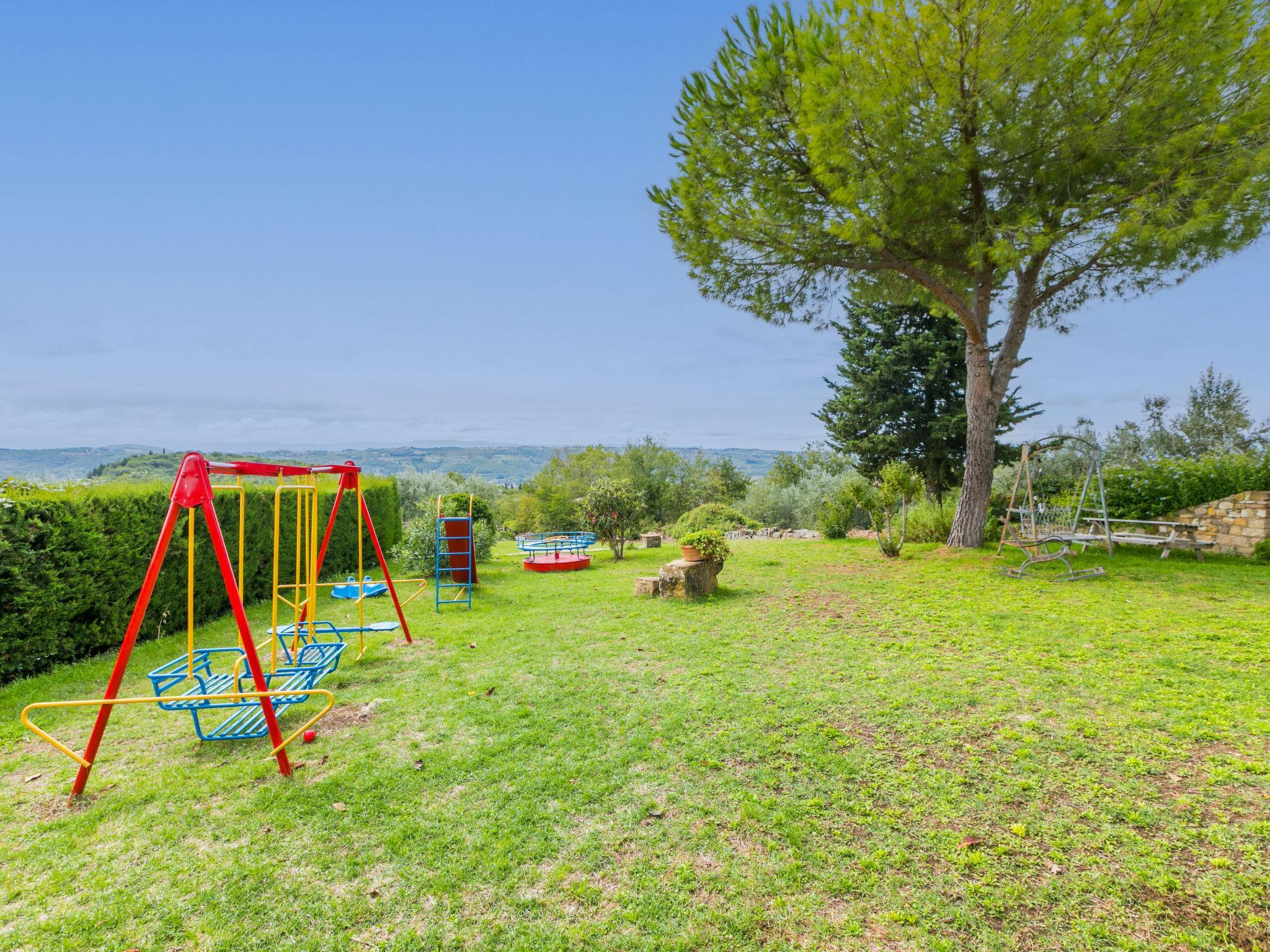 The structure presented by us is located in a strategic position, with a wonderful view of the Abbey of Badia a Passignano and the Chianti hills. Ideal place to discover the typical villages of Chianti and their cities of art. Beautiful, cosy country house "Badia a Passignano", surrounded by vineyards. Above Badia a Passignano 10 km from the centre of San Donato in Poggio, 30 km from the centre of Firenze, 40 km from the centre of Siena, in a quiet, sunny position on top of a hill, in the countryside. For shared use: garden with plants and trees, swimming pool (6 x 12 m, seasonal availability: 12.Apr. - 25.Oct. pool opening hours: 08:00-21:00) with salt-electrolysis pool-cleaning system. Outdoor shower, garden furniture, barbecue, children's playground. In the house: internet access, central heating system, washing machine, heating available only from 01.Nov. - 15.Apr.. Cook on request. 1 km long motor access (via unmade road). Parking on the premises. E-charging station. Shop 2 km, grocery 2 km, supermarket 4 km, restaurant 2 km, bar 2 km, bus stop 2 km. Golf course (18 hole) 15 km, riding stable 2 km. Nearby attractions: Tavarnelle Val di Pesa 10 km, Barberino Val D'Elsa 12 km, Greve in Chianti 16 km, Castellina in Chianti 20 km, Radda in Chianti 21 km, San Gimingnano 32 km. Please note: the owner lives on the same property. Additional accommodations can be booked.
