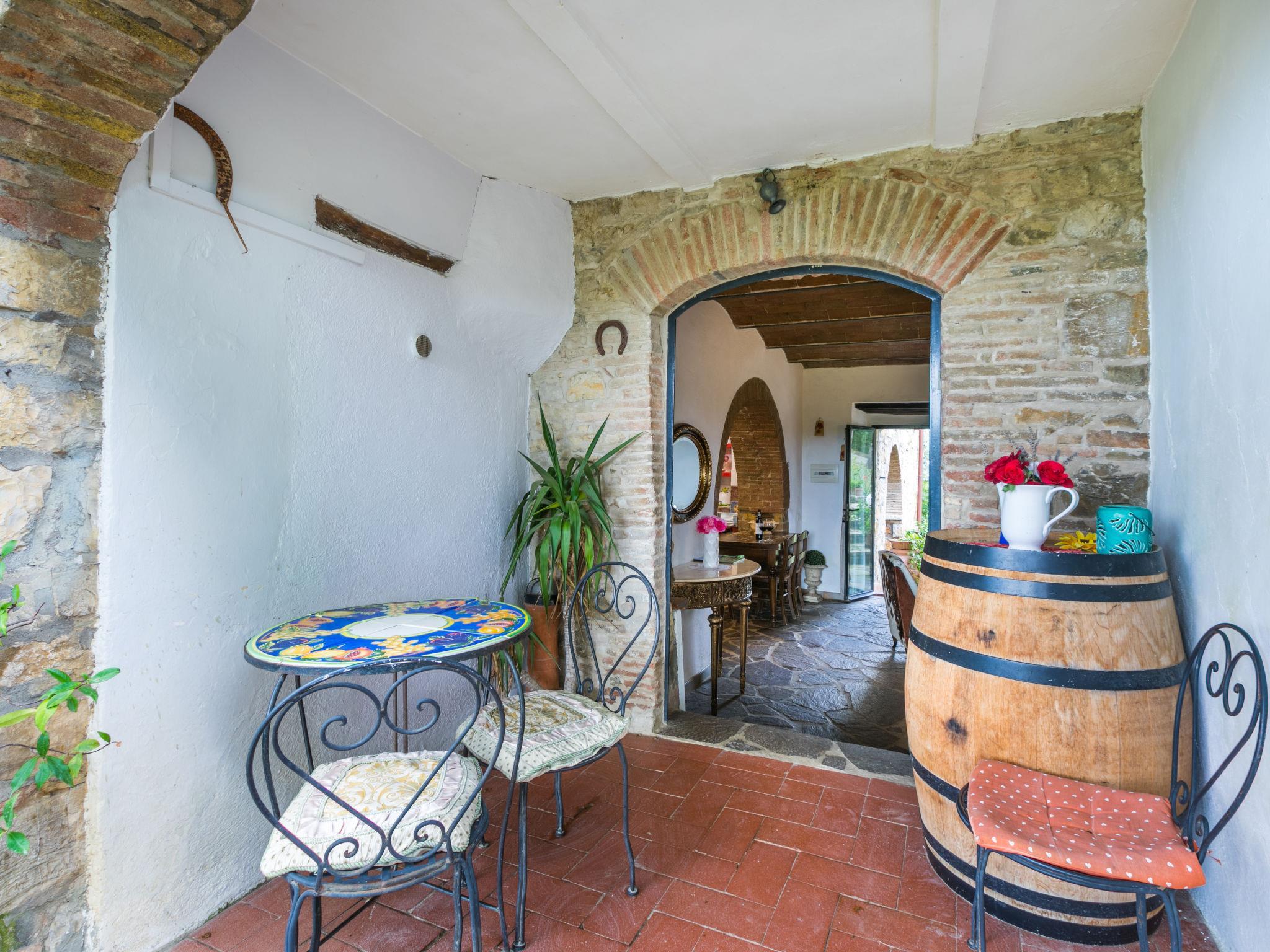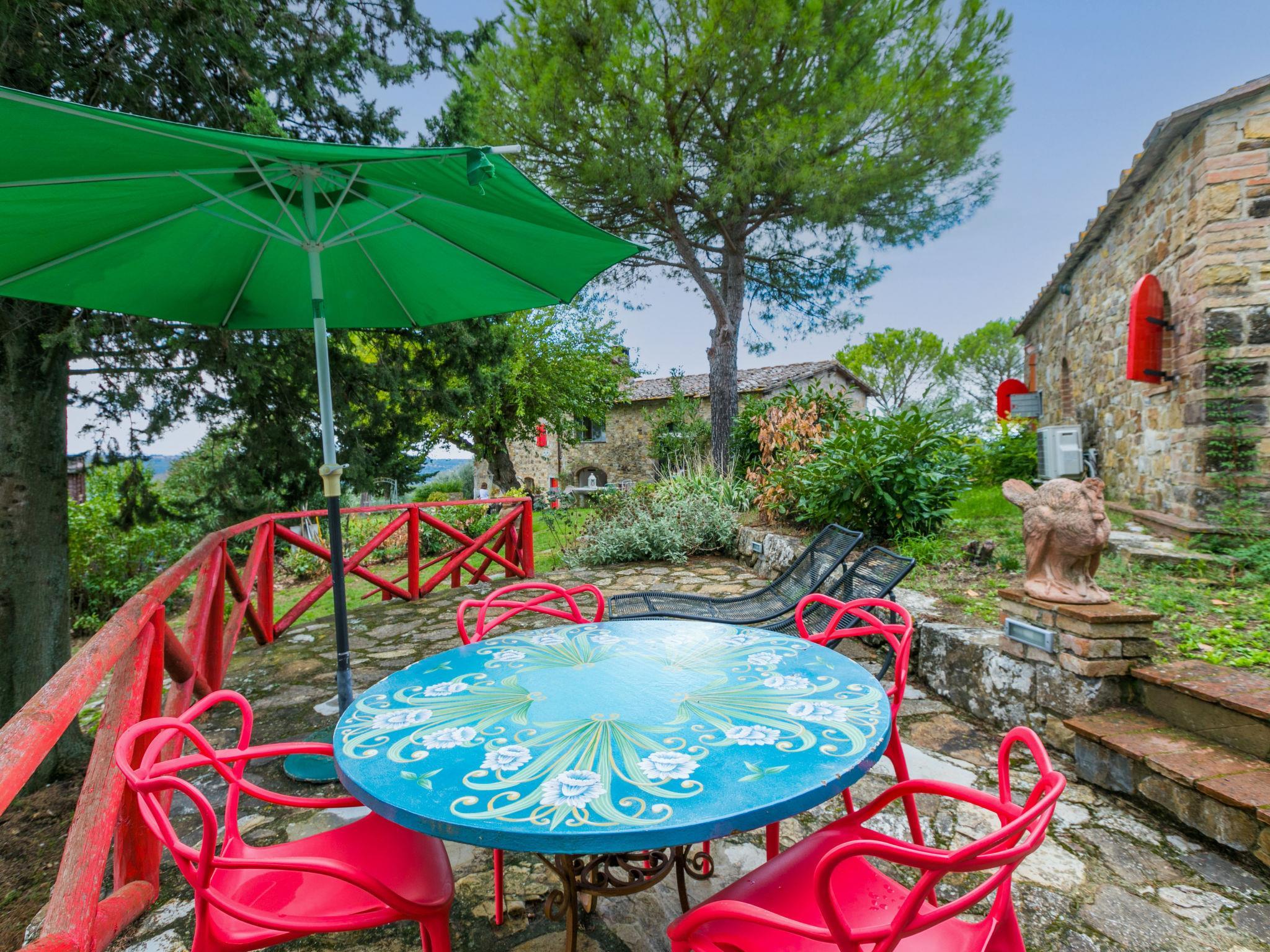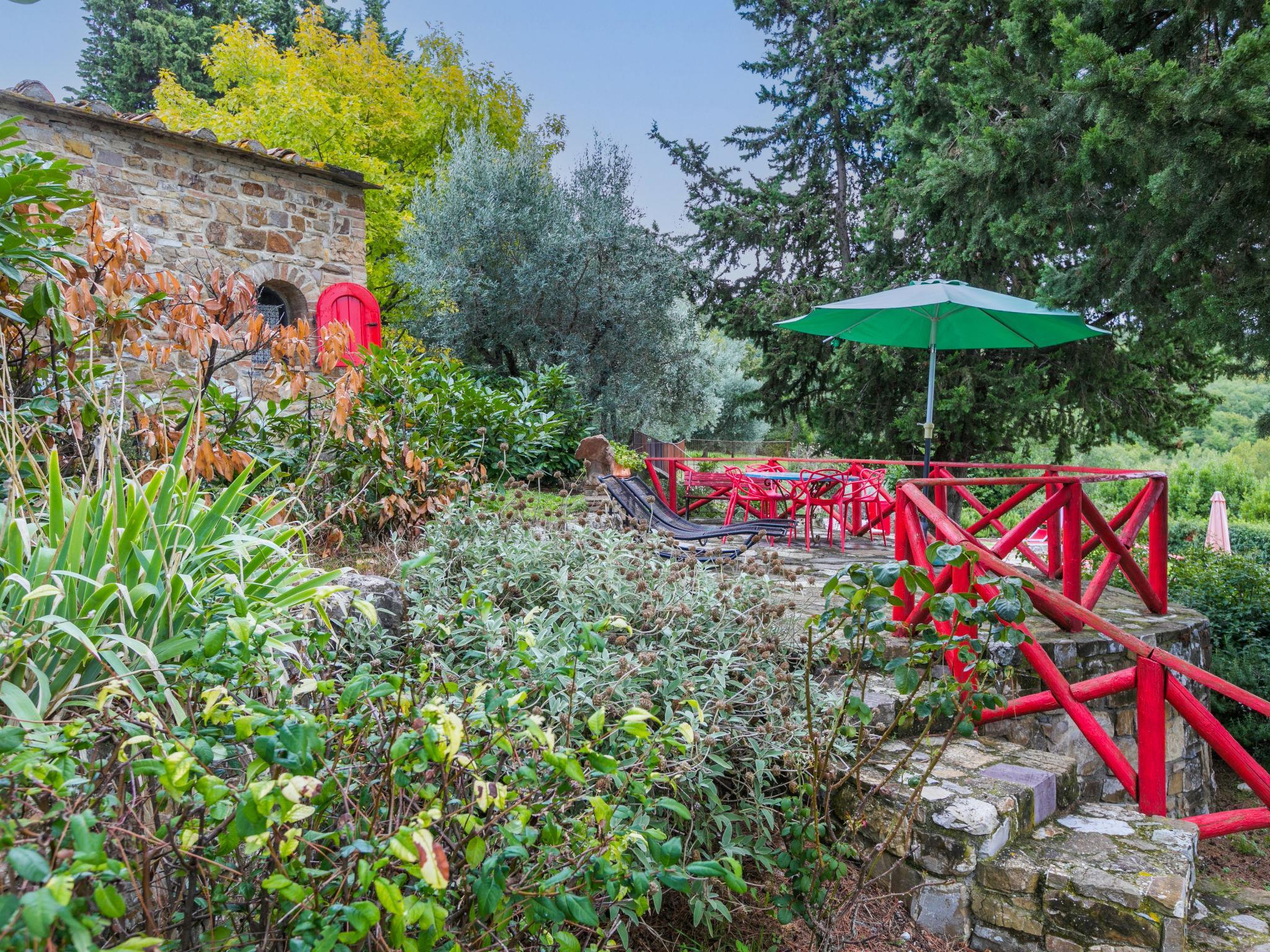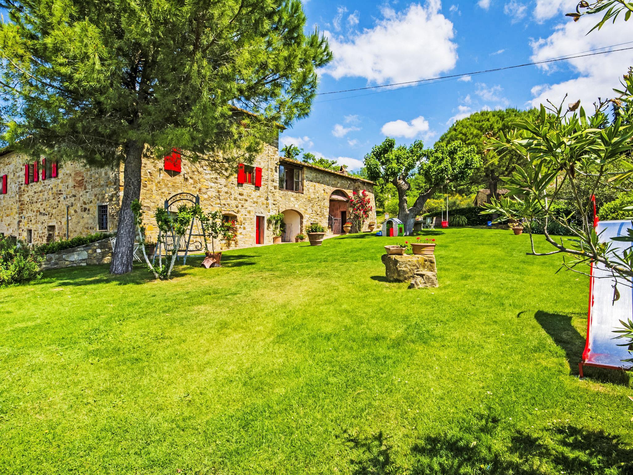 The structure presented by us is located in a strategic position, with a wonderful view of the Abbey of Badia a Passignano and the Chianti hills. Ideal place to discover the typical villages of Chianti and their cities of art. Beautiful, cosy country house "Badia a Passignano", surrounded by vineyards. Above Badia a Passignano 10 km from the centre of San Donato in Poggio, 30 km from the centre of Firenze, 40 km from the centre of Siena, in a quiet, sunny position on top of a hill, in the countryside. For shared use: garden with plants and trees, swimming pool (6 x 12 m, seasonal availability: 12.Apr. - 25.Oct. pool opening hours: 08:00-21:00) with salt-electrolysis pool-cleaning system. Outdoor shower, garden furniture, barbecue, children's playground. In the house: internet access, central heating system, washing machine, heating available only from 01.Nov. - 15.Apr.. Cook on request. 1 km long motor access (via unmade road). Parking on the premises. E-charging station. Shop 2 km, grocery 2 km, supermarket 4 km, restaurant 2 km, bar 2 km, bus stop 2 km. Golf course (18 hole) 15 km, riding stable 2 km. Nearby attractions: Tavarnelle Val di Pesa 10 km, Barberino Val D'Elsa 12 km, Greve in Chianti 16 km, Castellina in Chianti 20 km, Radda in Chianti 21 km, San Gimingnano 32 km. Please note: the owner lives on the same property. Additional accommodations can be booked.