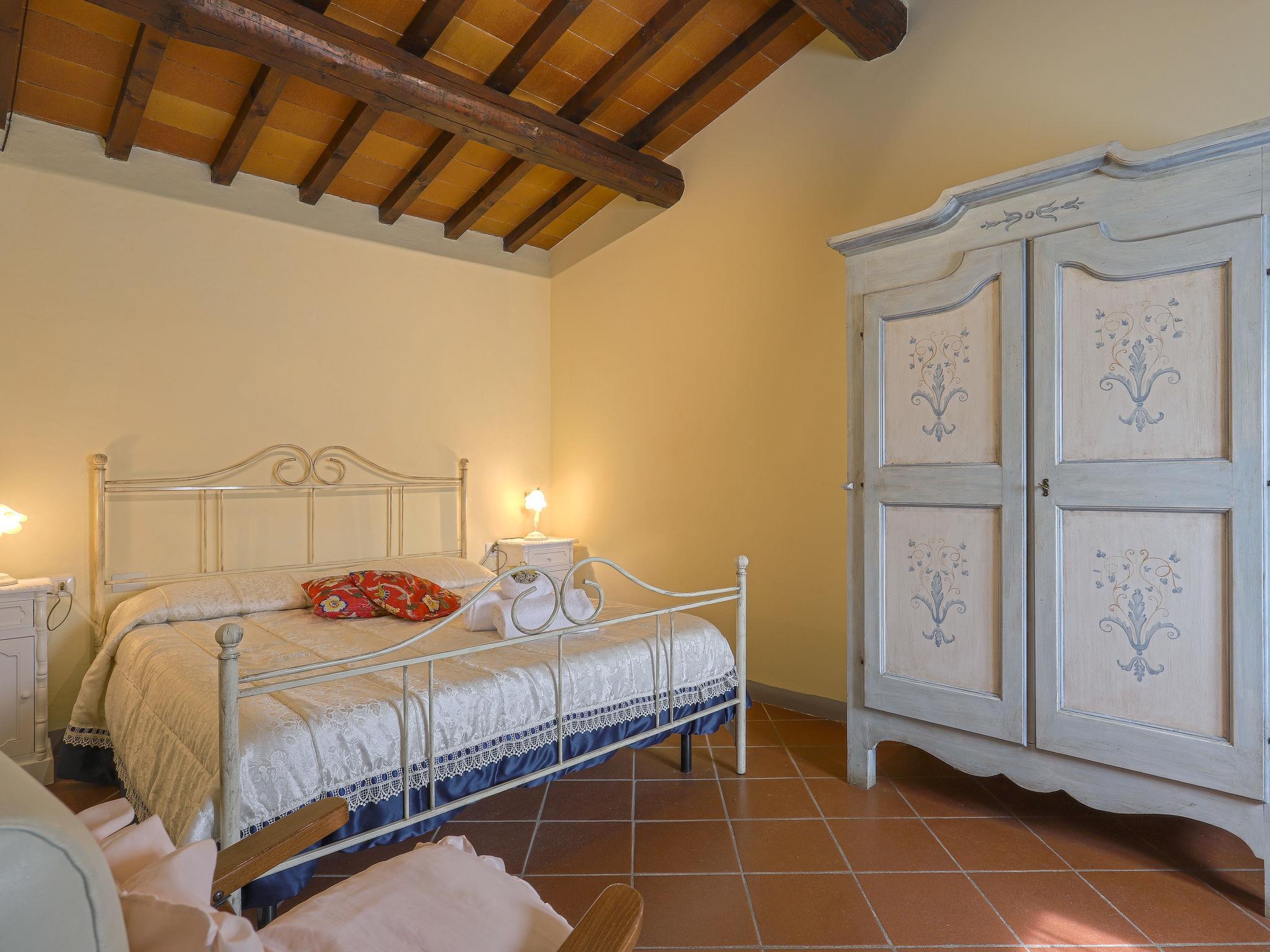 "Il Casale", 4-room cottage 120 m2, on the upper floor. Spacious, rustic and cosy furnishings: upper floor: (exterior staircase) large living/dining room with open-hearth fireplace, dining table and satellite TV. Walk-through room with 1 french bed (160 cm). 1 small room with 2 beds (80 cm). Interconnecting room with 1 french bed (160 cm), separate WC. Kitchen (oven, dishwasher, 4 gas rings, toaster, microwave, electric coffee machine). Shower/WC. Gas heating. Natural stone floors. Comfortable furnishings in the country house style. Patio, porch. Terrace furniture, barbecue, deck chairs. Very beautiful panoramic view of the countryside. Facilities: washing machine, children's high chair, baby cot for up to 2 year olds, hair dryer, logs (extra). Internet (WiFi, free). Parking at the house. Please note: non-smokers only. Maximum 1 pet/ dog allowed. The pool mentioned in the description is for private use. IT048038C2XFJB6OSG