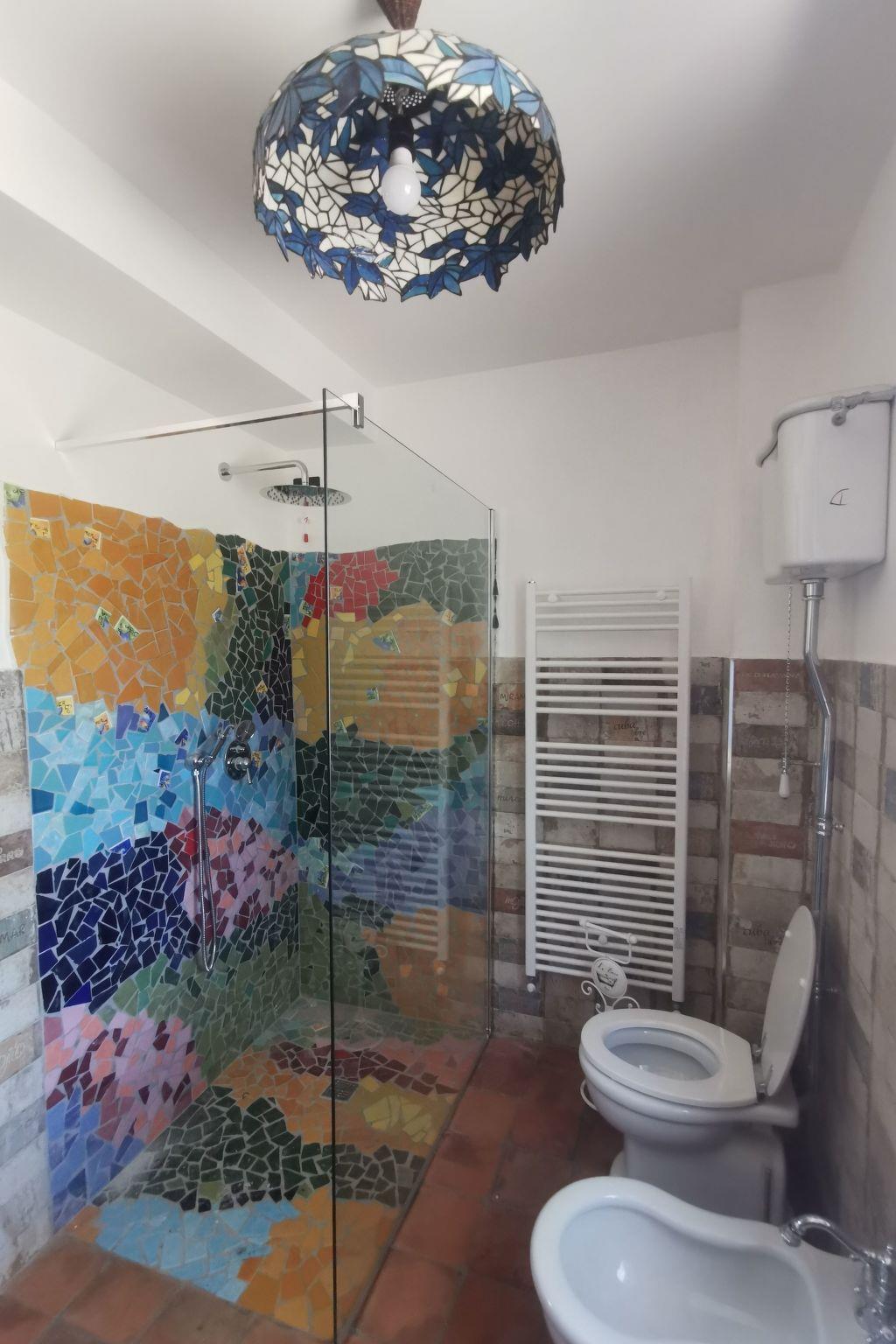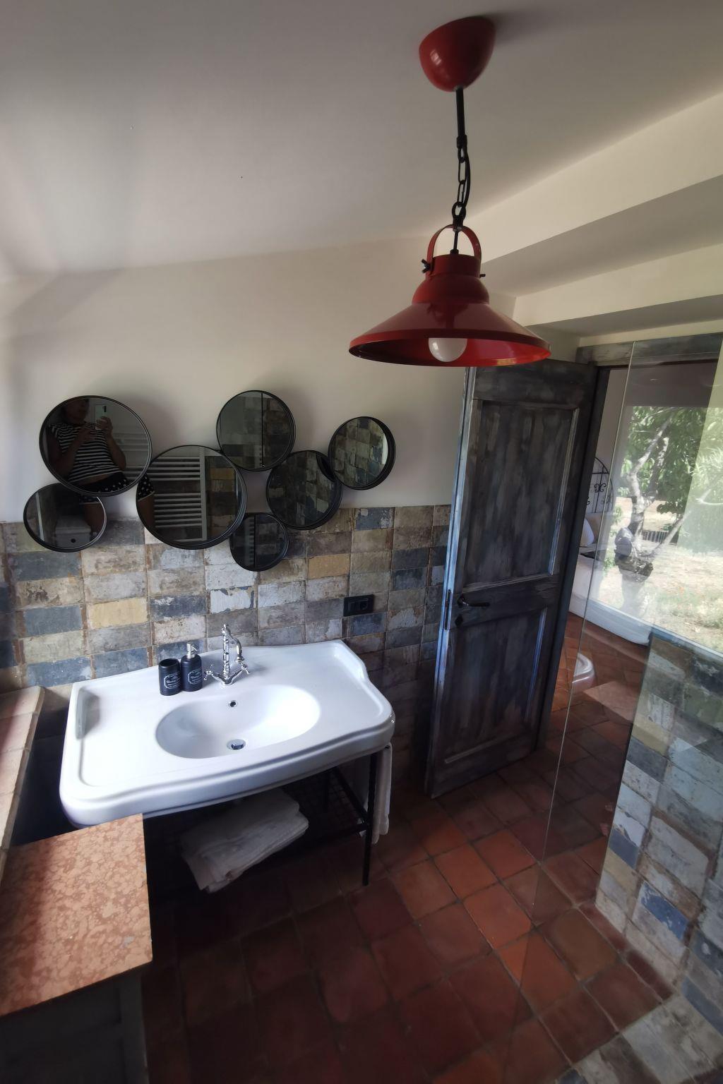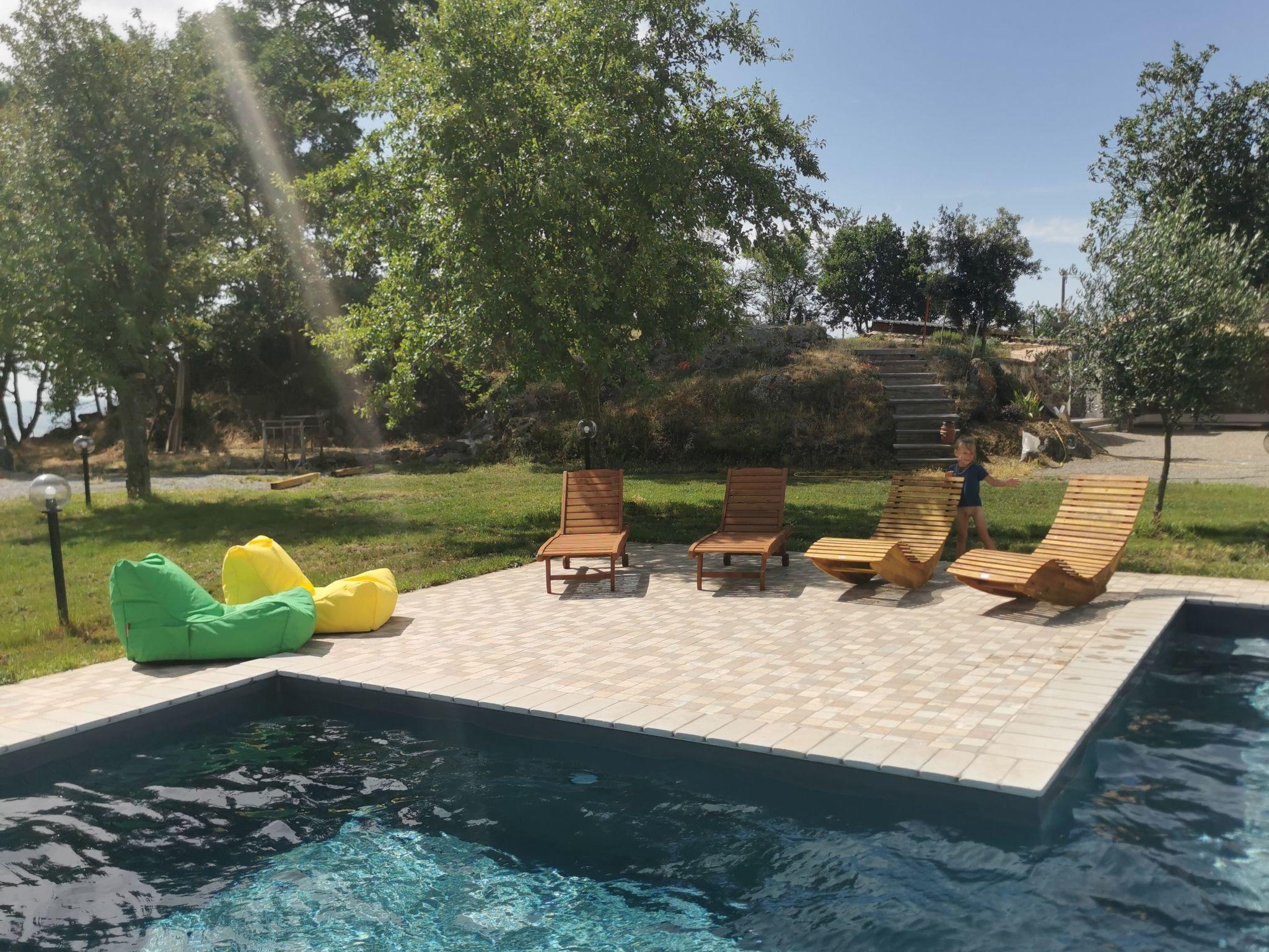 Independent villa, surrounded by fields. 5 km from the centre of Civita Di Bagnoregio, in an isolated position, 60 km from the sea, 12 km from the lake, in a cul-de-sac. For shared use: grounds 4 ha (fenced). Private: grounds 2 ha (fenced), swimming pool (16 x 7 m, depth 80 - 130 cm, seasonal availability: 01.Mag.-30.Oct.). Outdoor shower, table tennis, patio (10 m2), pergola (60 m2), garden furniture, barbecue. In the house: steam bath. Access (1 km unpaved road). Parking on the property.