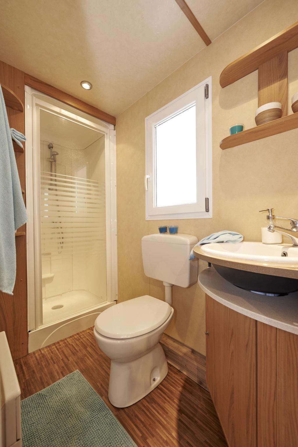 "Comfort", 4-room mobile home 34 m2. Practical furnishings: living/dining room with kitchen corner, satellite TV and air conditioning. Exit to the terrace. 1 room with 1 french bed (140 cm). 2 rooms, each room with 2 beds (70 cm). Open kitchen (4 gas rings). Shower/WC, sep. WC. Air-conditioning (extra). No heating option. Terrace roofed. Terrace furniture, deck chairs (1). Parking (1 car). Please note: non-smokers only. IT061088B3LUIBMCPY