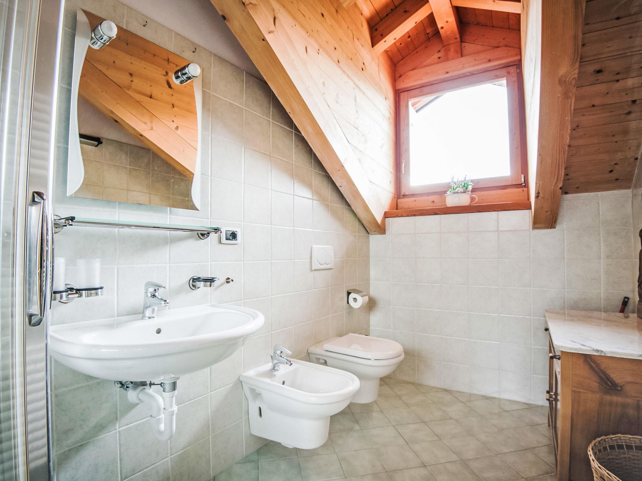 3-room apartment 76 m2 on 2 levels on 2nd floor. Spacious and bright, partly with sloping ceilings, beautiful and wooden furniture furnishings: open living/sleeping room with 1 sofabed and satellite TV (flat screen), DVD. Open kitchen (oven, dishwasher, 4 ceramic glass hob hotplates, kettle) with dining table. Shower/bidet/WC. Heating. Upper floor: 1 room with sloping ceilings with 1 french bed and TV (flat screen). 1 room with sloping ceilings with 2 beds. Wooden floors. Beautiful view of the lake, the mountains and the valley. Facilities: Internet (WiFi, free). Please note: non-smokers only. IT093006A1ANKRC388