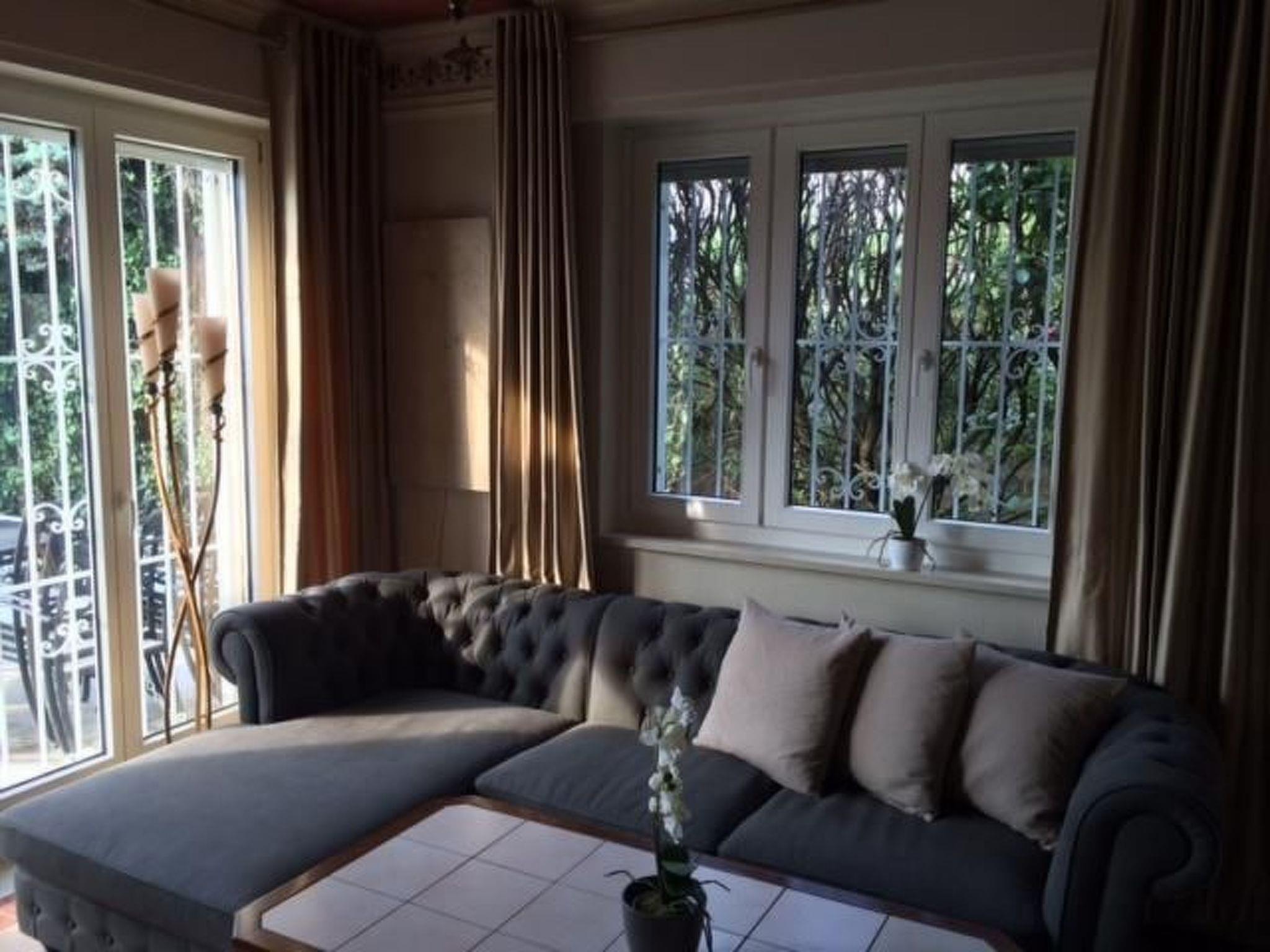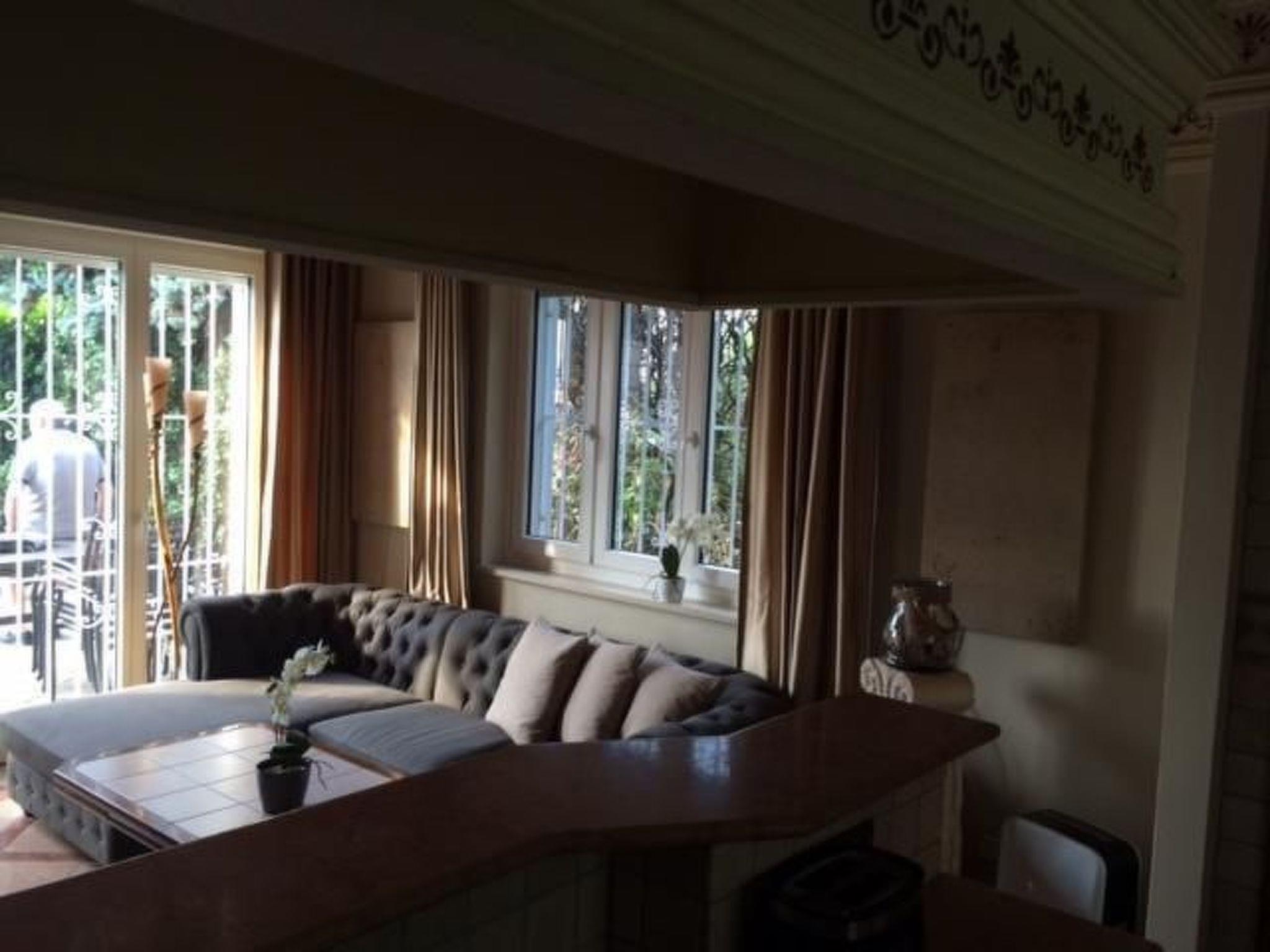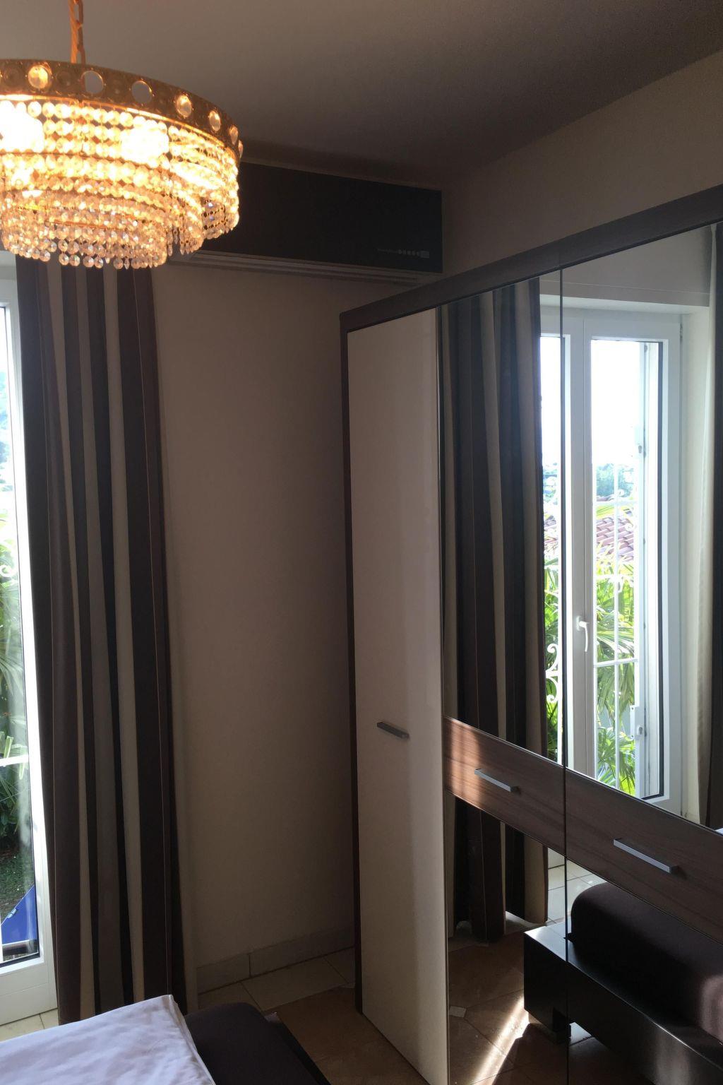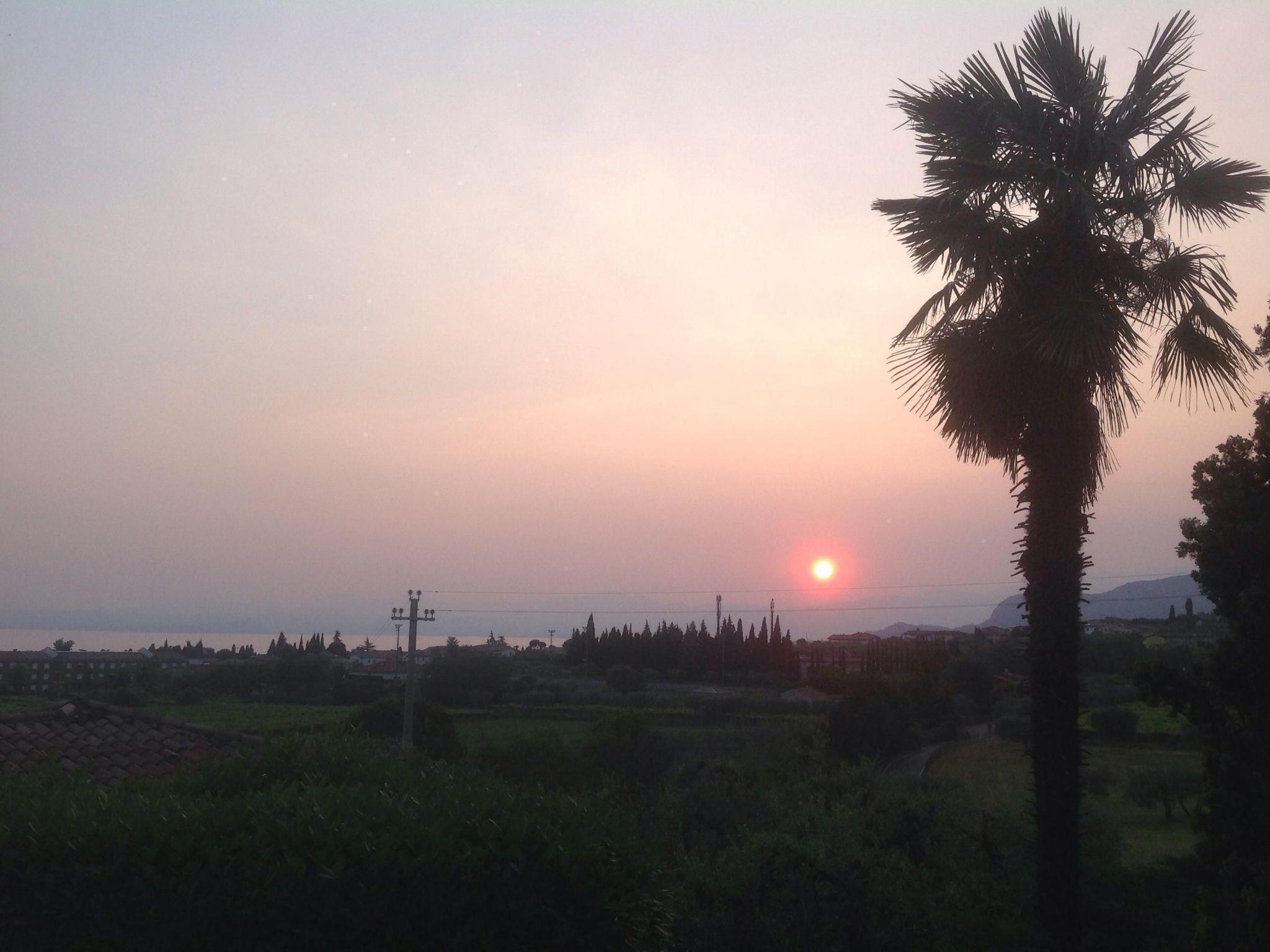 The panoramic terrace affords a grandiose view of Lake Garda. The terrace has a brick-built, open grill fireplace, lovely seating with cushions, a big table and a parasol shading the whole table. The house has window grids for your safety, also during your absence. The completely fenced garden of 600m² with a big palm tree is right in front of the terrace. Steps lead conveniently to the big shared pool, used by nine apartments and not crowded. The pool area is very well-maintained and is taken care of several times a week by a specialist company. It is open from around mid-May to the end of September. Cars can be parked conveniently and securely in the big double garage for two cars, with an electronic garage door.