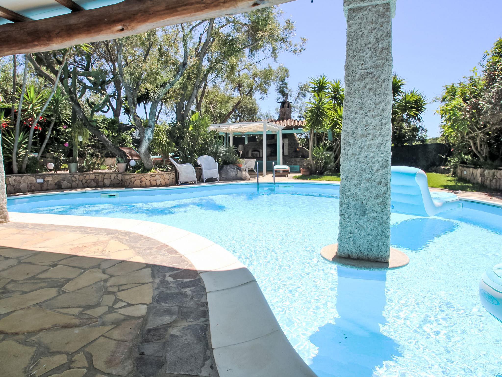 Very cosy, comfortable villa "Surphinia", 2 storeys, detached, surrounded by trees and meadows. 5 km from the centre of Bari Sardo, in a quiet, sunny position residential area (villas), 200 m from the sea. Private: garden 500 m2 (fenced), swimming pool with privacy (60 m2, depth 140 - 200 cm, seasonal availability: 01.Apr. - 30.Oct.). Outdoor shower, patio, pergola, garden furniture, barbecue, fireplace, barbecue house. Motor access to the house. Parking (for 4 cars) at the house. Grocery 1 km, supermarket 4 km, restaurant 1 km, bar 1 km, bus stop 4 km, sandy beach 200 m, rocky beach 1 km. Tennis 1 km. Nearby attractions: Arbatax 20 km, Villasimius 100 km, Cagliari 130 km. Please note: car recommended.