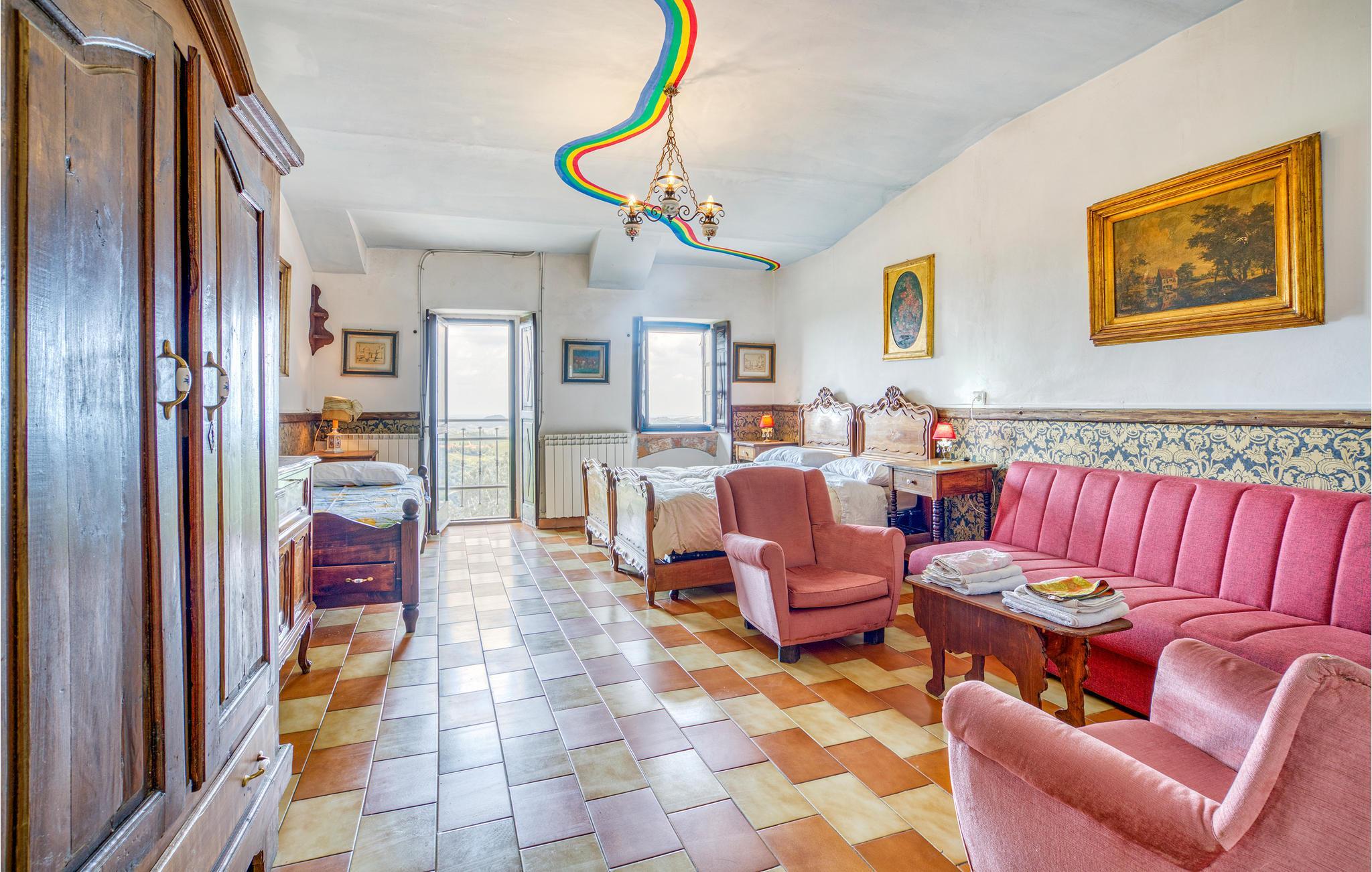Denne feriebolig er den ene del af et tofamiliehus i en historisk bygning i en lille landsby på en bakke, der sørger for at I har en fantastisk panoramaudsigt.