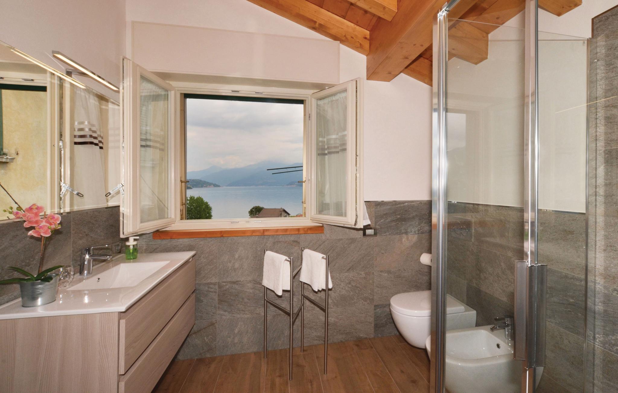 Ferielejlighed i den lille by Lezzeno, kun 50 meter fra bredden af Comosøen. Lejligheden er fordelt på 2 etager. I stueetagen: Stue med satellit-tv og tekøkken, terrasse med søudsigt, et soveværelse med dobbeltseng og badeværelse med bruser. På 1. sal: Dobbeltværelse med lille altan med panoramaudsigt over søen, stort værelse med 2 sovesofaer og et badeværelse med bruser. Fra boligen fører et vej gennem skoven ned til søen. Beliggenheden giver mulighed for at tage ture på utallige vandrestier i de omkringliggende bjerge. Reserveret parkering. Wi-Fi-forbindelse. Afstande: Købmand, apotek og restaurant, busstoppested til Como og Bellagio 50 m. Fra Lezzeno (1 km) kan I tage færgen til de forskellige landsbyer ved søen. Bellagio 8 km, Como 20 km, Lecco 28 km, Milano 69 km.